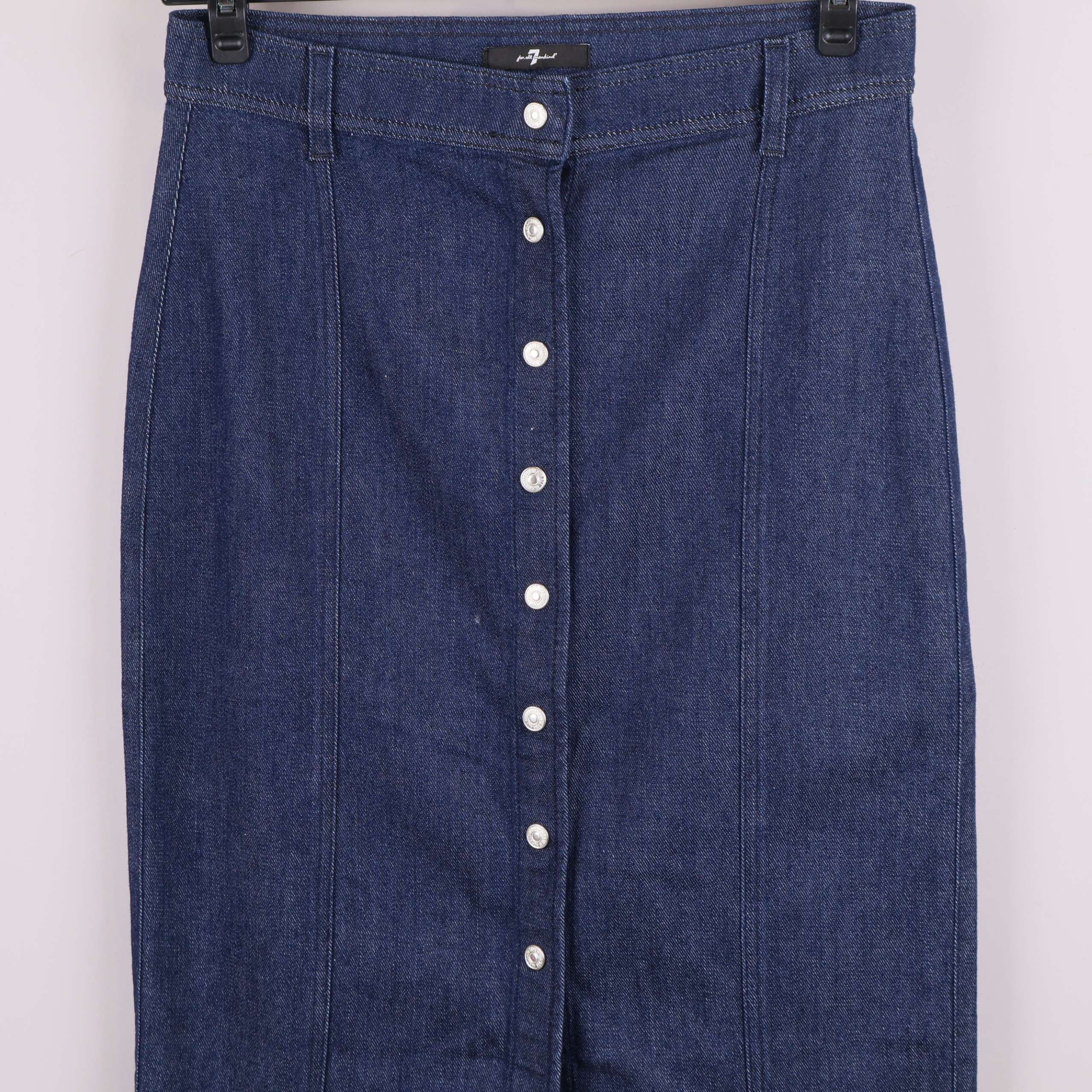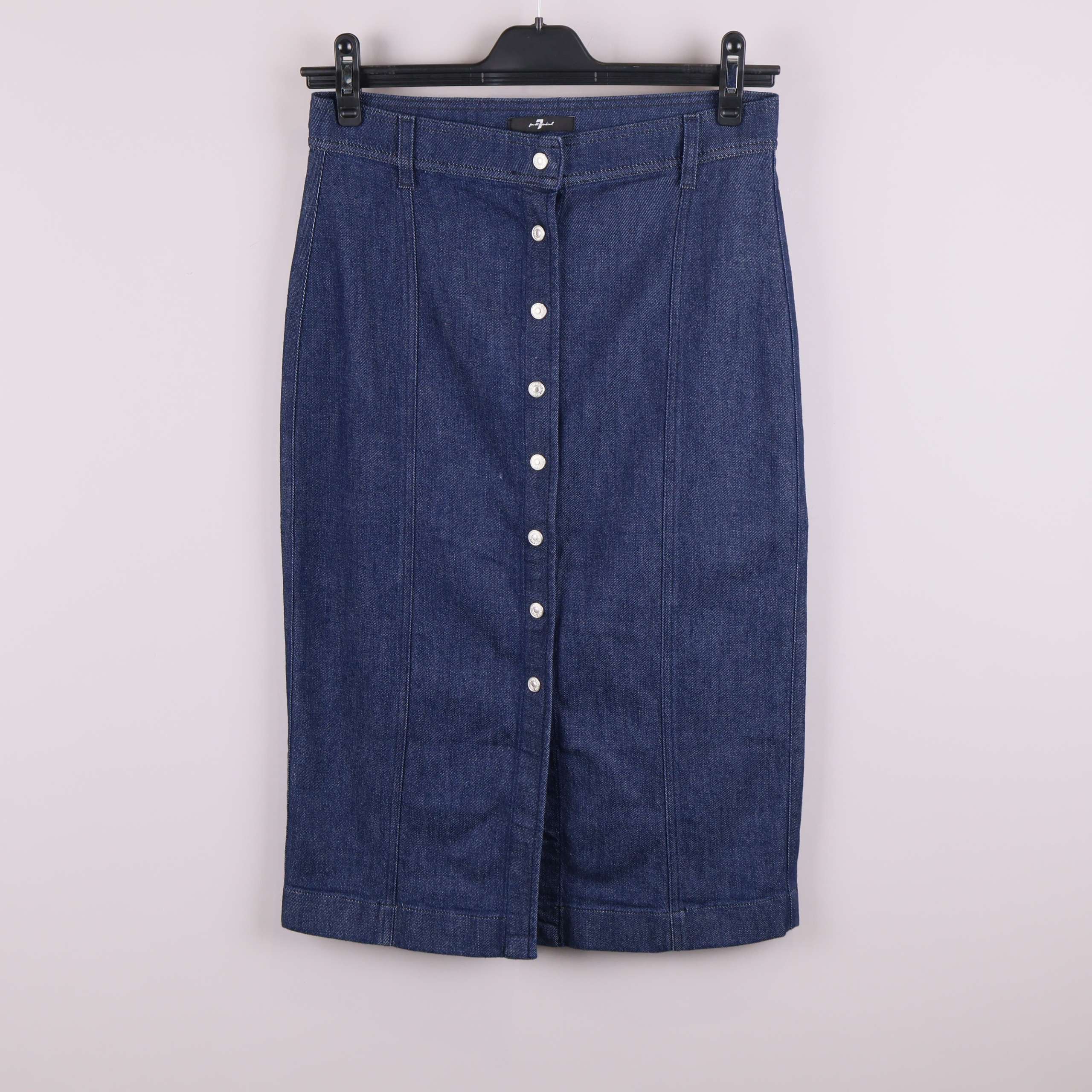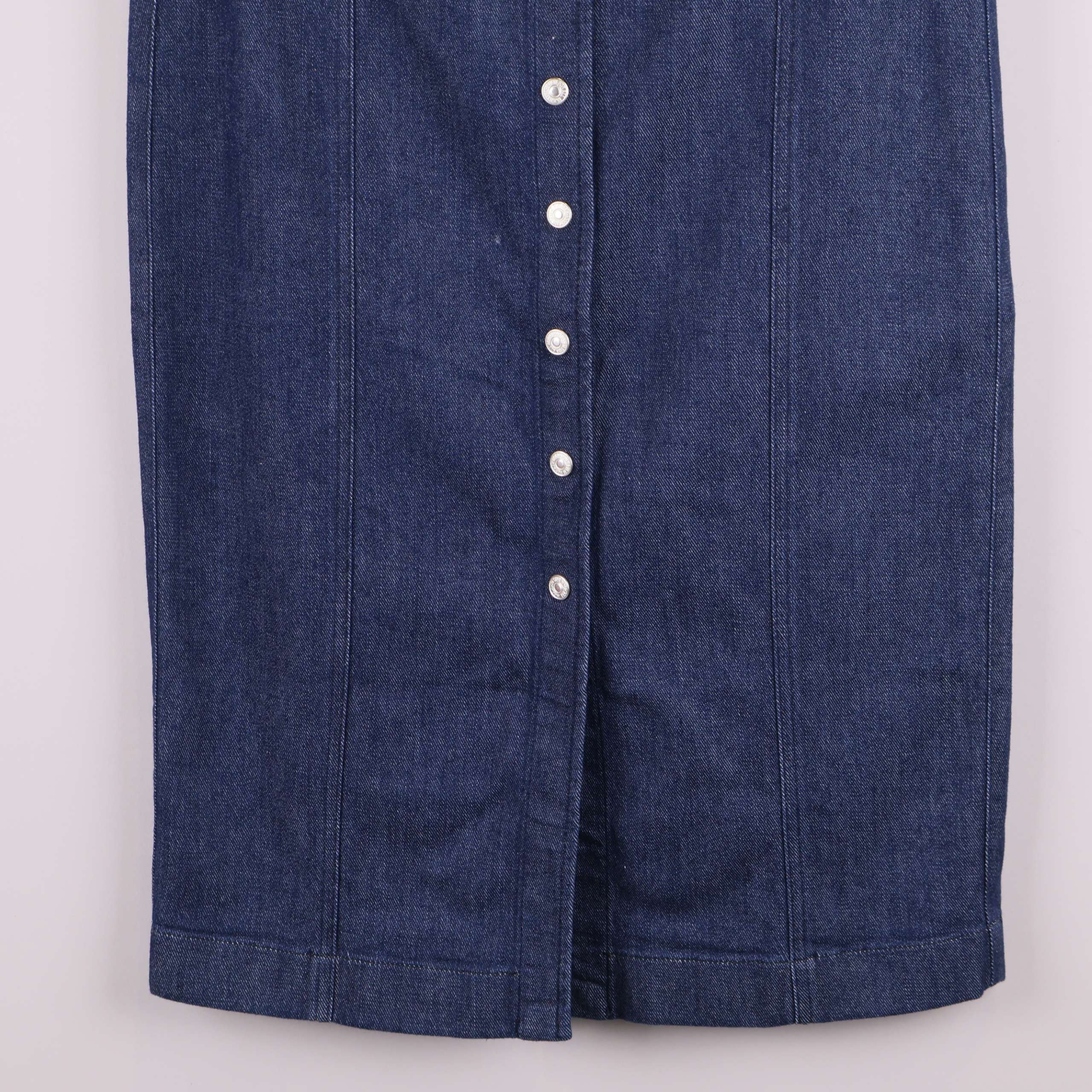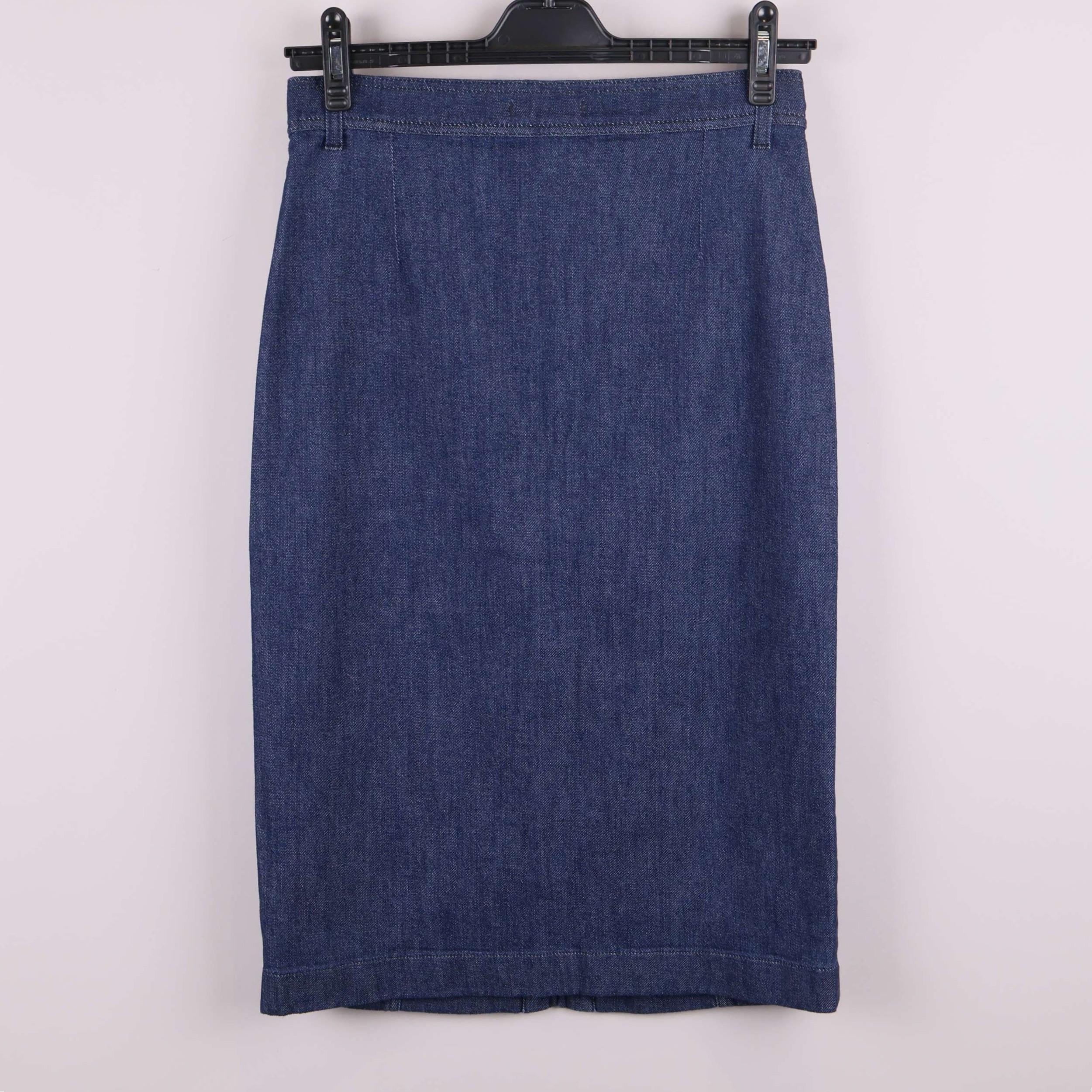 Rak midi-jeanskjol i klassisk denim med enkel, tidlös look och knäppning hela vägen framtill. Mörkblå tvätt ger en clean och modern känsla.
