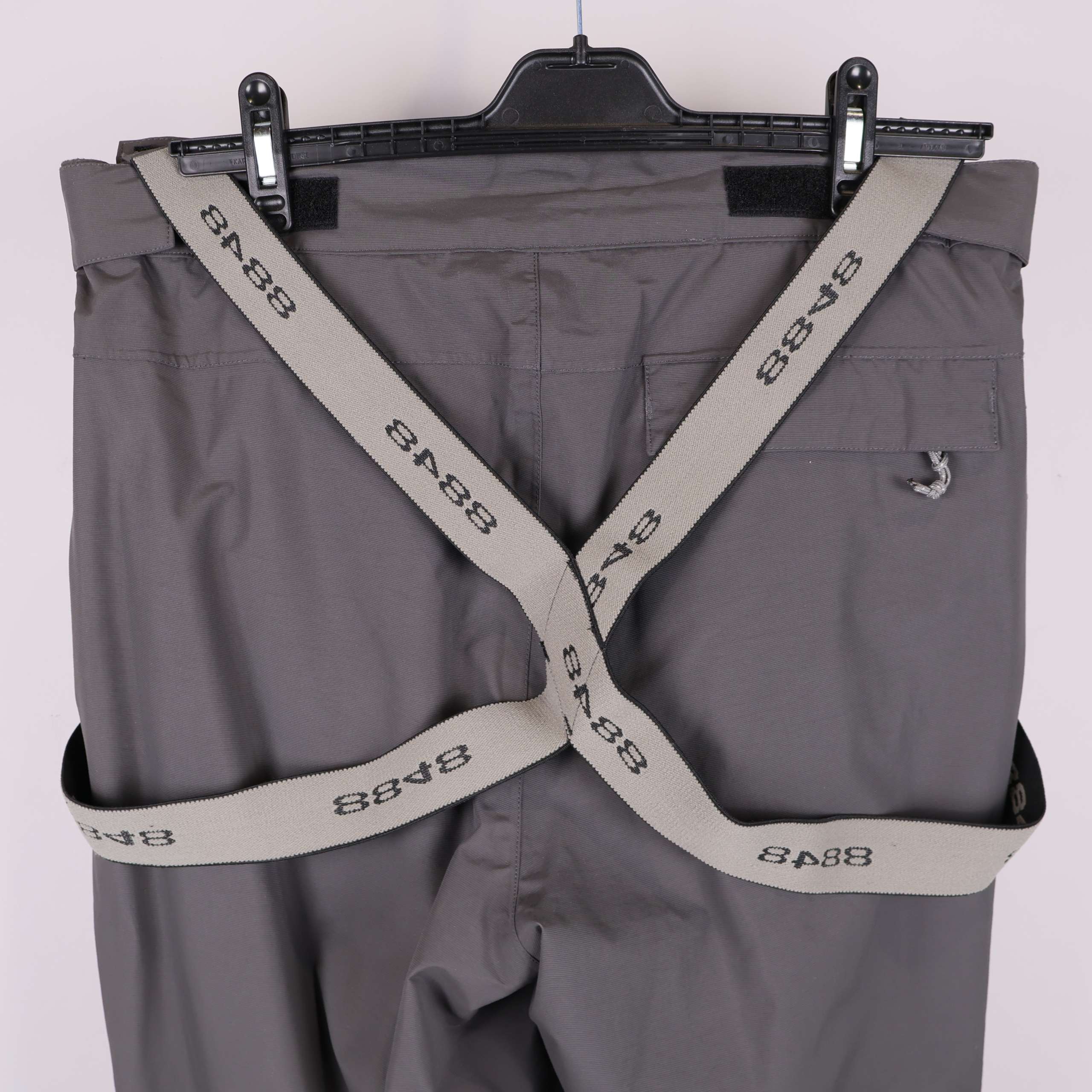 Tekniska skalbyxor i grått med justerbara och avtagbara hängslen för extra stöd. Byxorna har flera dragkedjeförsedda fickor och förstärkt nederkant för slitstyrka. Resårlinning och förstärkningar ger en flexibel och bekväm känsla, perfekt för dig som vill ha funktion och stil med en modern look.