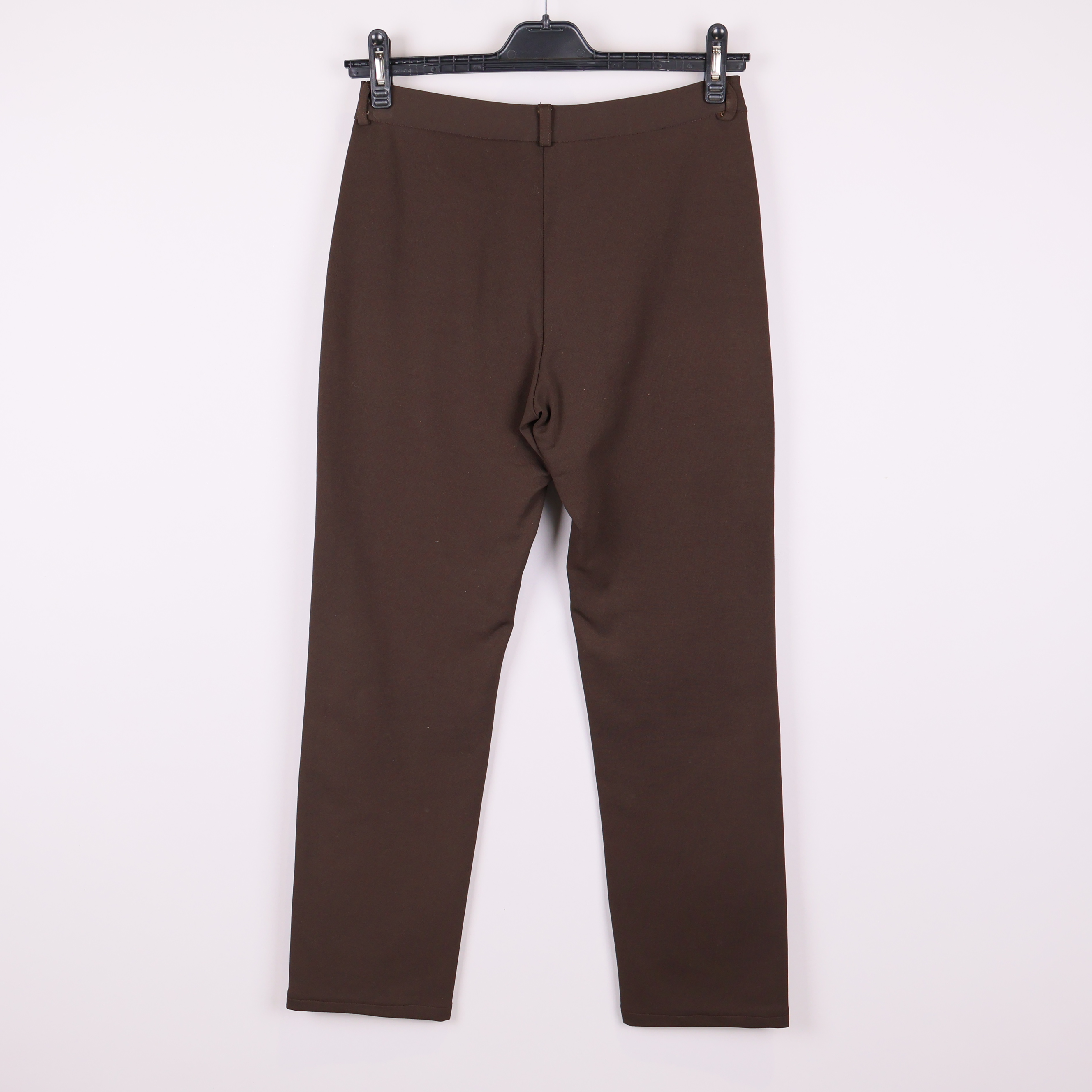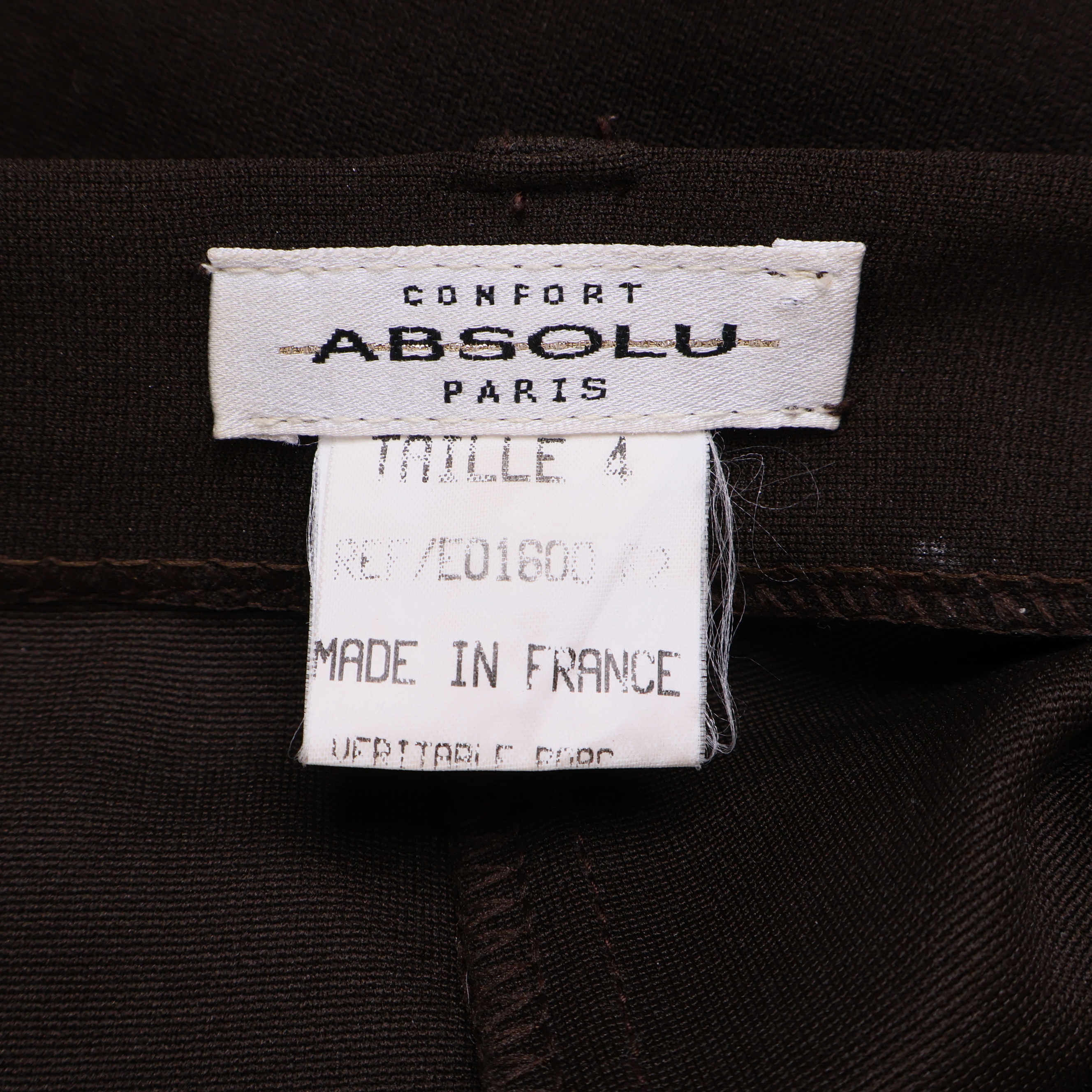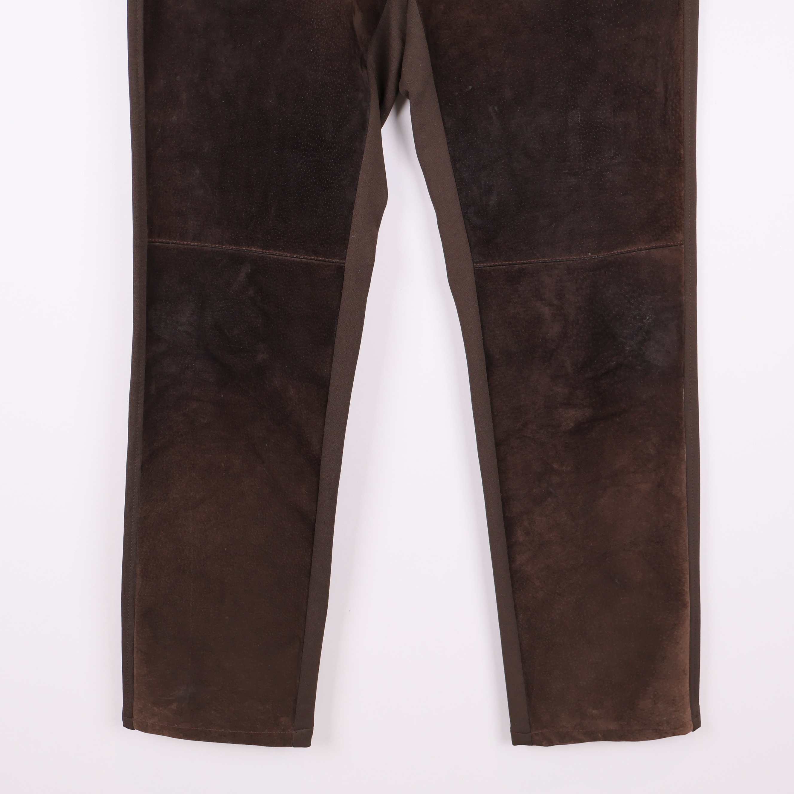 Dessa byxor från Absolu Paris har en lyxig, mjuk mocka yta frampå i övrigt velour, djup brun färg som känns både klassisk och modern. De raka benen och de synliga sömmarna ger en stilren look, medan den stretchiga kvaliteten bidrar till bekväm komfort.