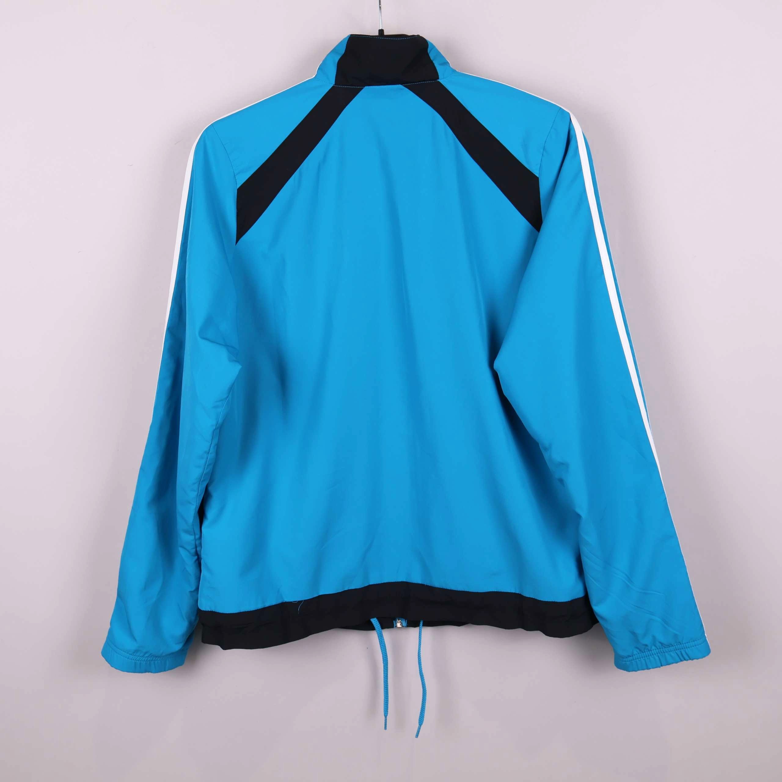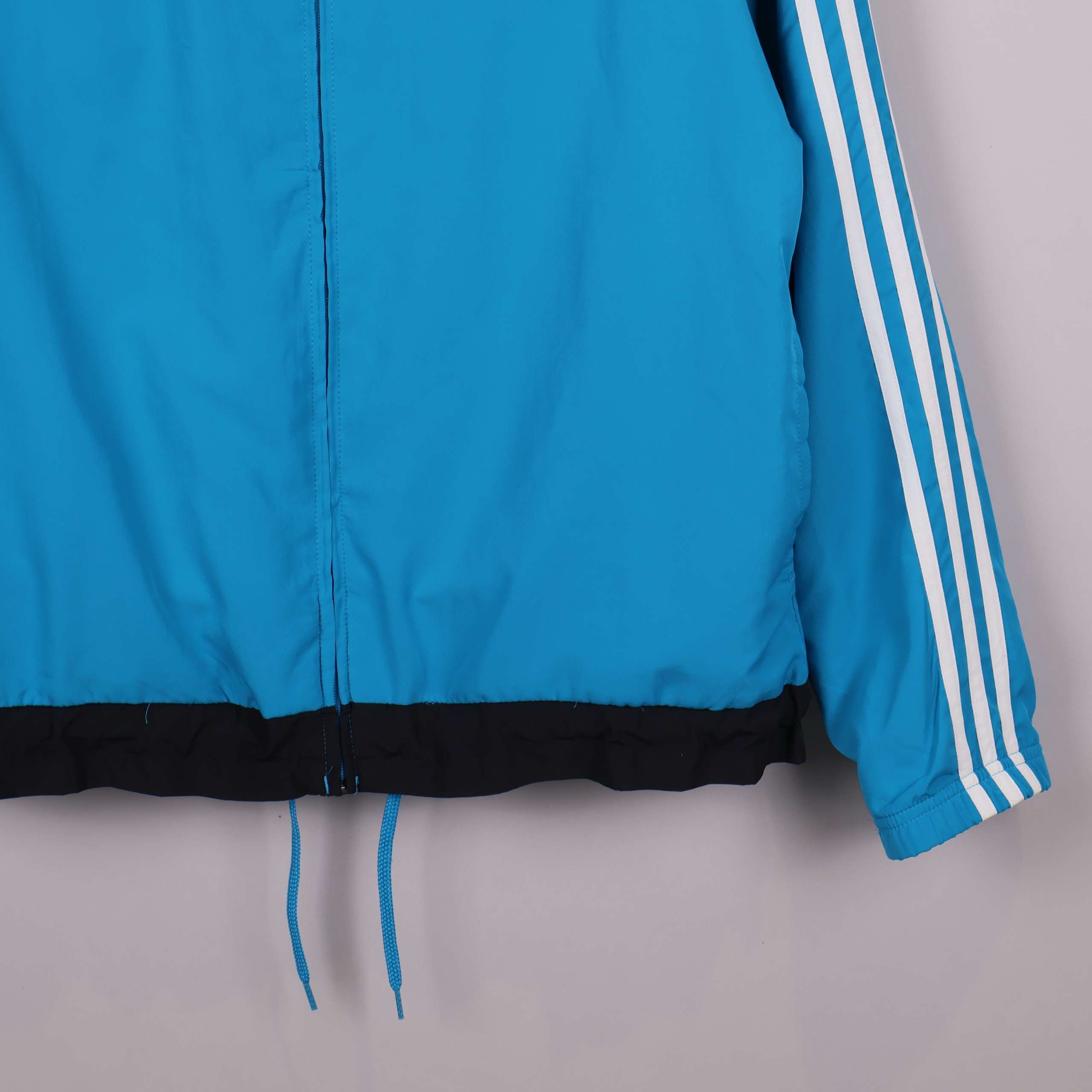 Sportig jacka med klassisk Adidas-design och tre vita ränder längs ärmarna. Den blå jackan har svarta detaljer på axlarna och muddar samt dragsko i nederkant för flexibel passform. Framdragkedja och broderad Adidas-logga på bröstet ger en tydlig retro vibe. Mesh på insidan och lätt material, perfekt för dig som gillar sportig stil med ikoniska detaljer.