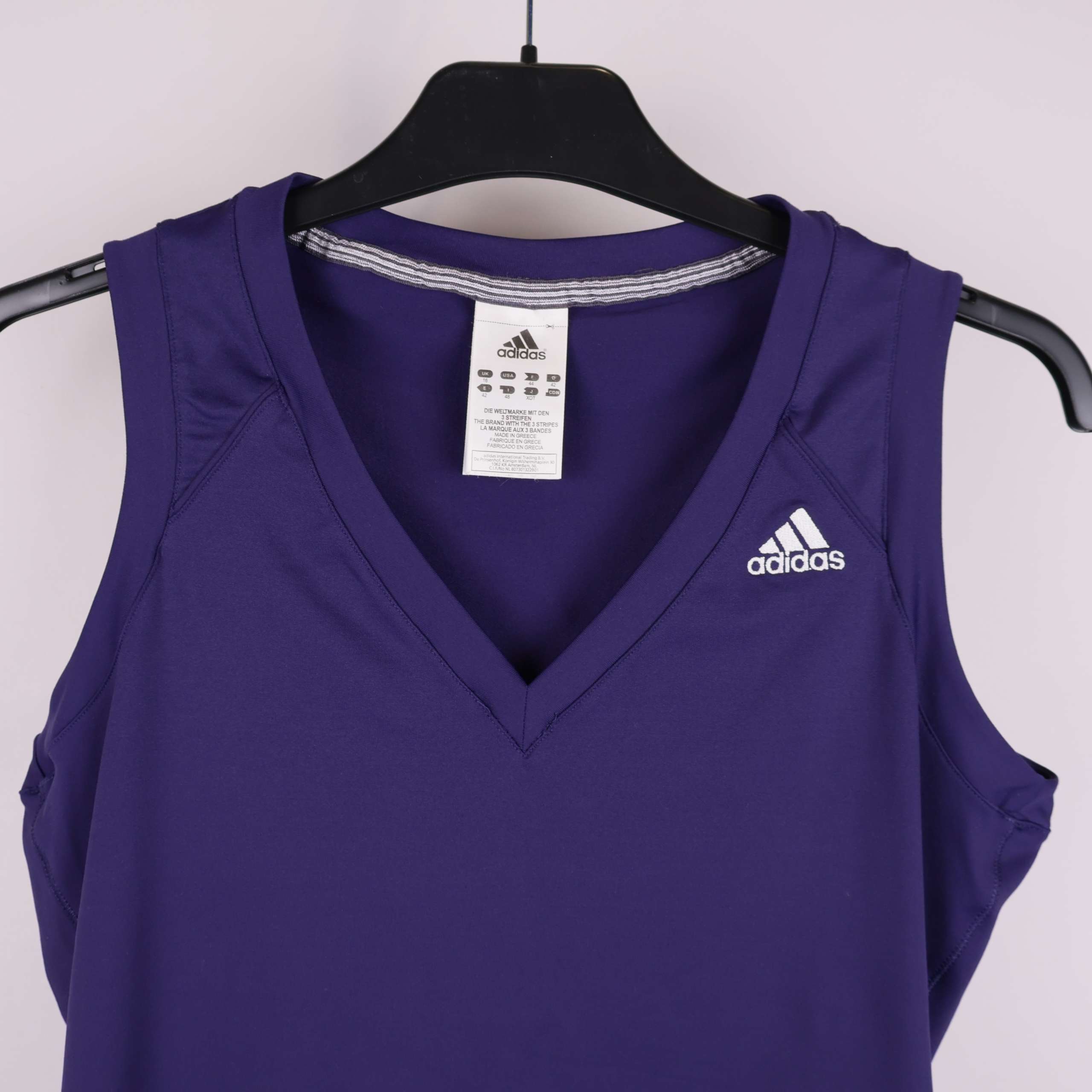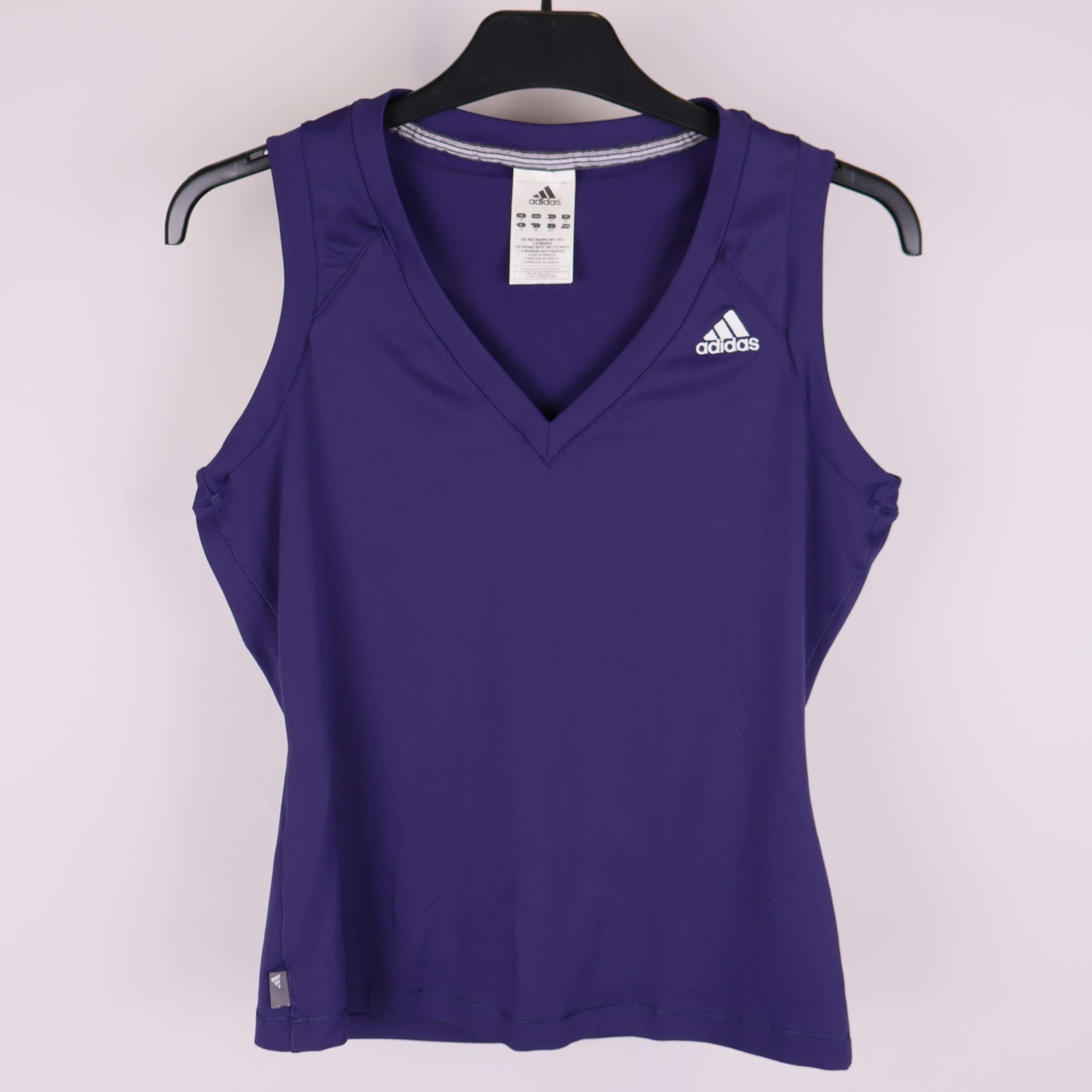 Sportigt linne från Adidas i en härlig lila nyans med v-ringad hals. Tillverkat i stretchigt Climalite-material som känns lätt och smidigt mot huden. Broderad logotyp framtill och mjuka sömmar ger en bekväm känsla hela dagen. Perfekt för dig som gillar funktion möter stil utan krångel.