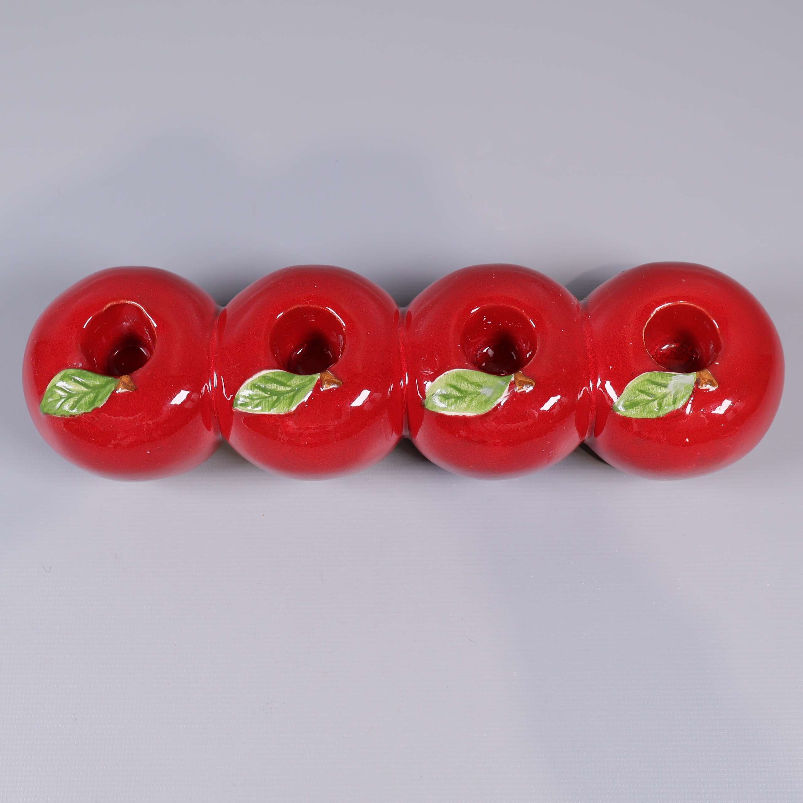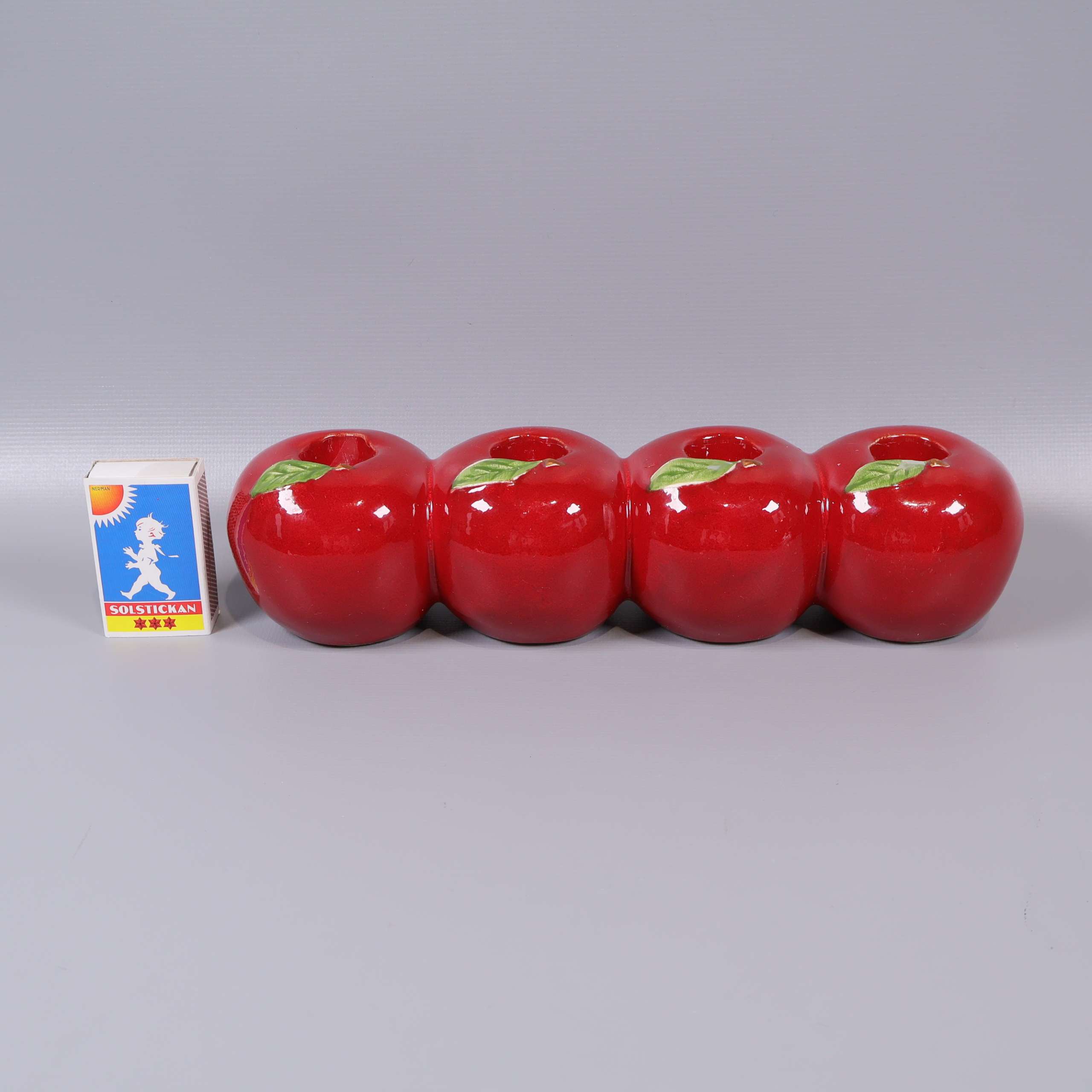 Adventsljusstake med äppelform 129 kr Product variation Antal st Beskrivning Charmig adventsljusstake i glansig röd finish formad som fyra äpplen på rad, med gröna blad i toppen för en lekfull och färgstark look. Ger en modern och lekfull känsla till din inredning, perfekt som färgklick utan att bli för mycket. Visa all beskrivning Detaljer Höjd: 6 cmLängd: 25 cm Skick Gott skick Produkten har använts men är av fin kvalitet, det kan förekomma mindre förslitningar. Läs mer om hur vi bedömer Dimensions Höjd: 6 cm Längd: 25 cm Färg Röd Produkten är unik och finns enbart som 1 st i lager. Fri frakt på alla köp över 990 kr. 14 dagars ångerrät.