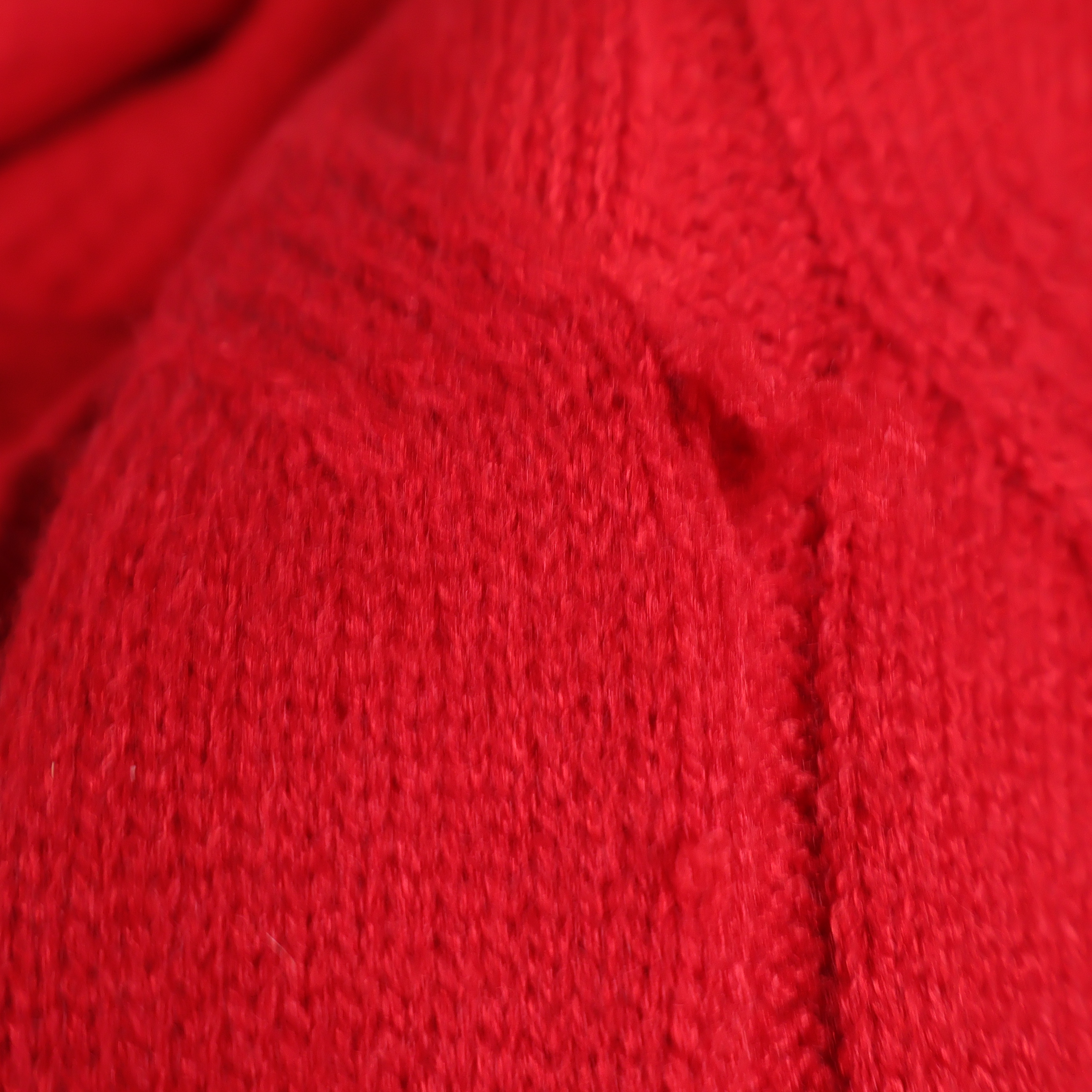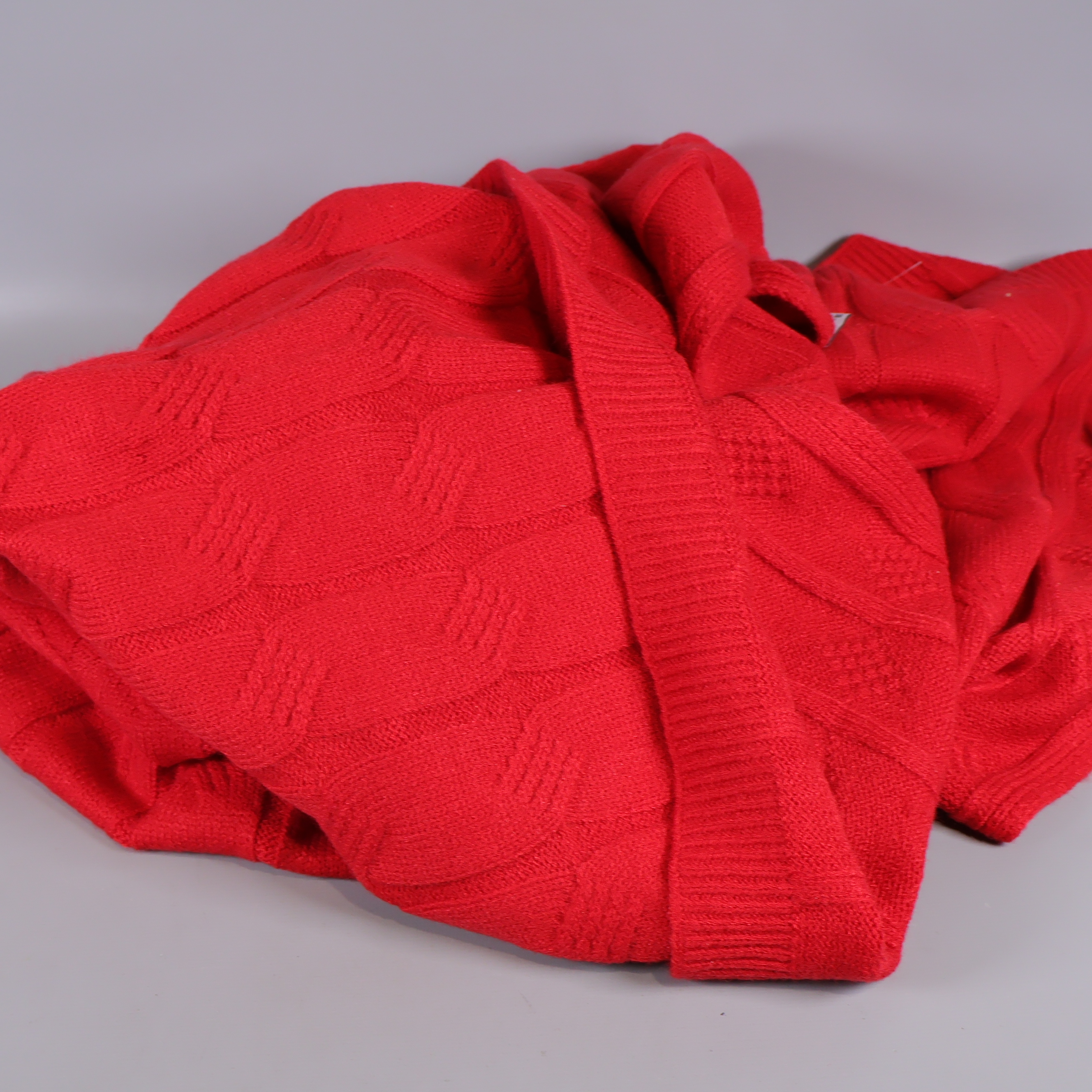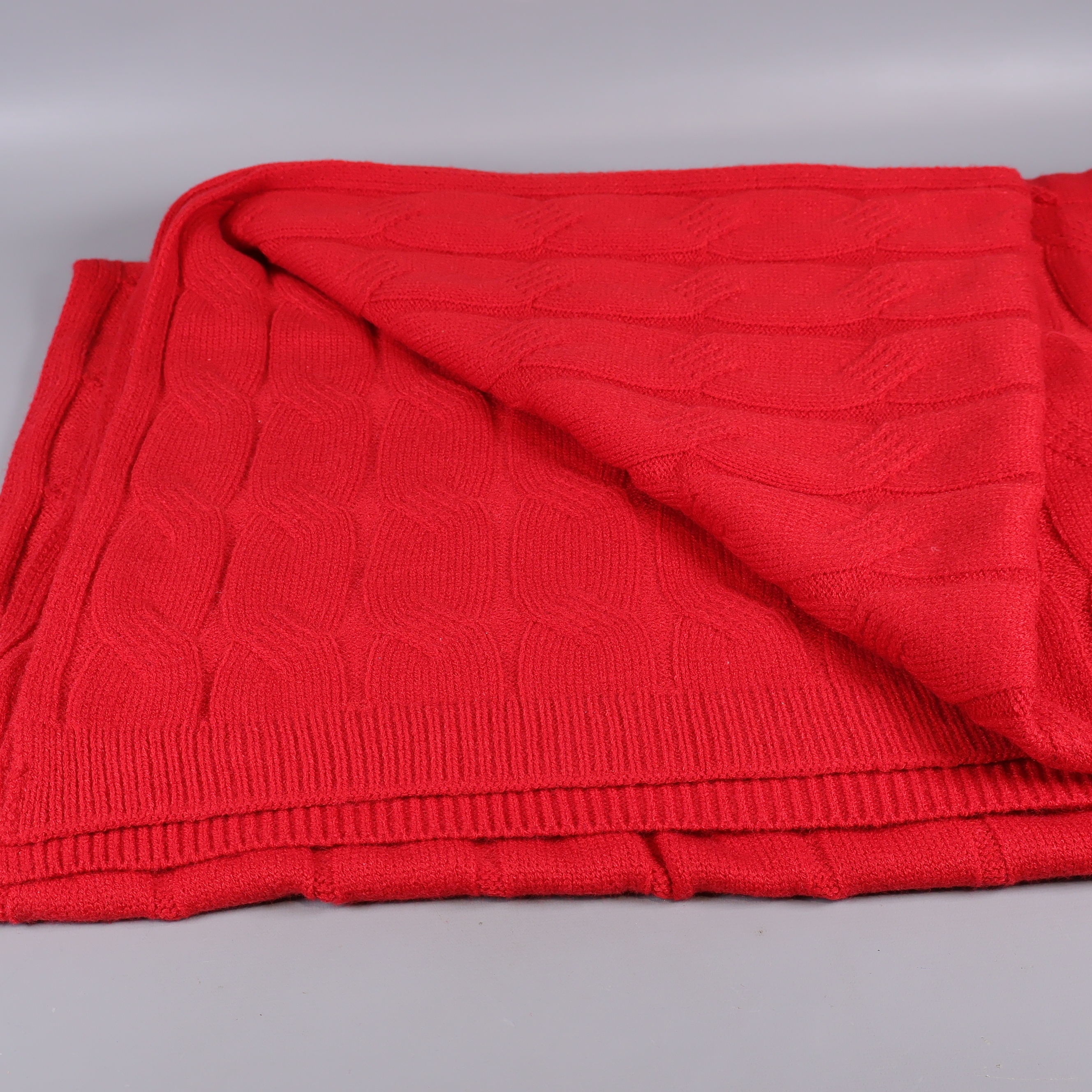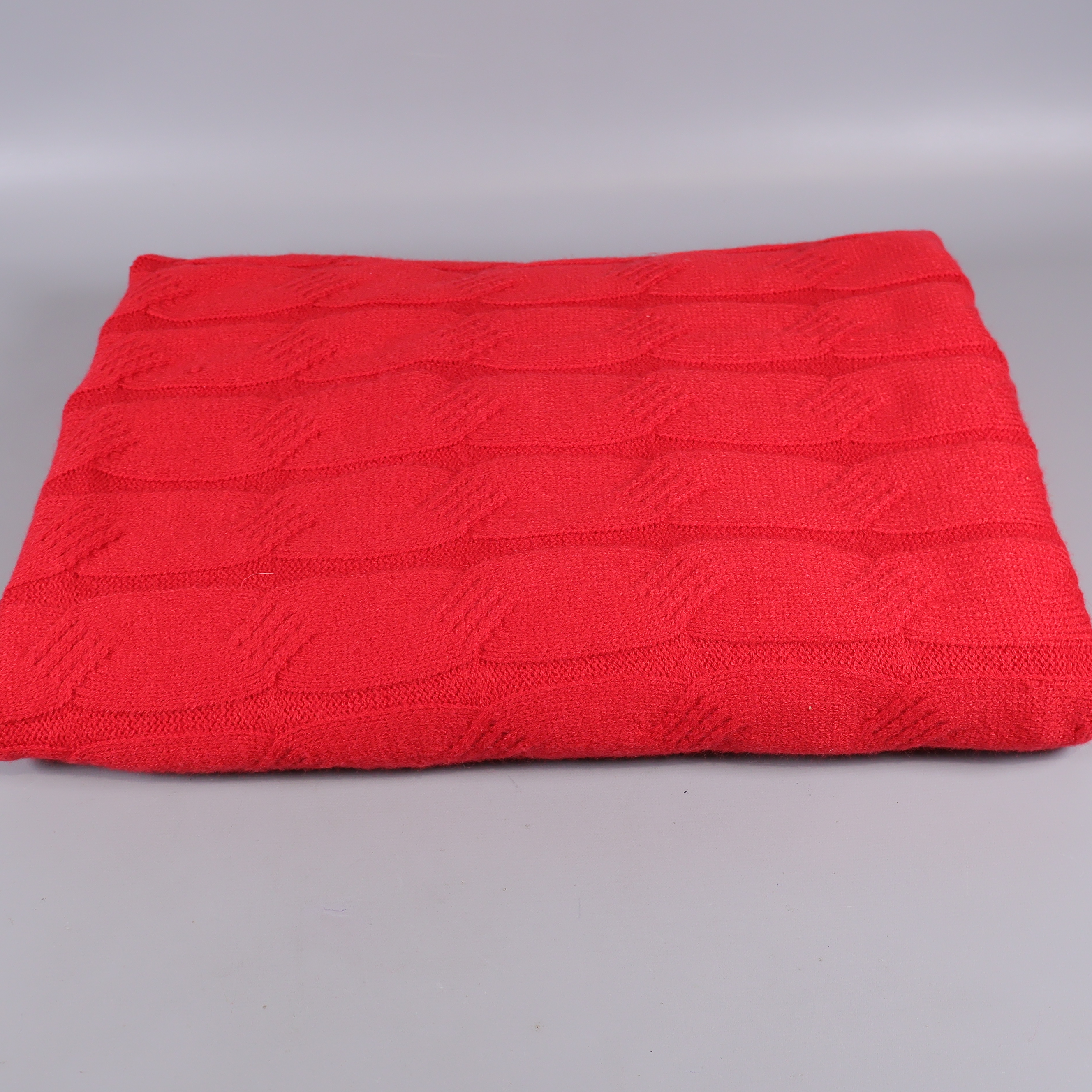 Pläd med strukturerat stickat mönster i kraftigt röd nyans, tillverkad i en mjuk blandning av akryl, polyester och bomull. Dekorativ och modern, med ribbad kant och tydliga ytdetaljer som ger en varm känsla till ditt hem.