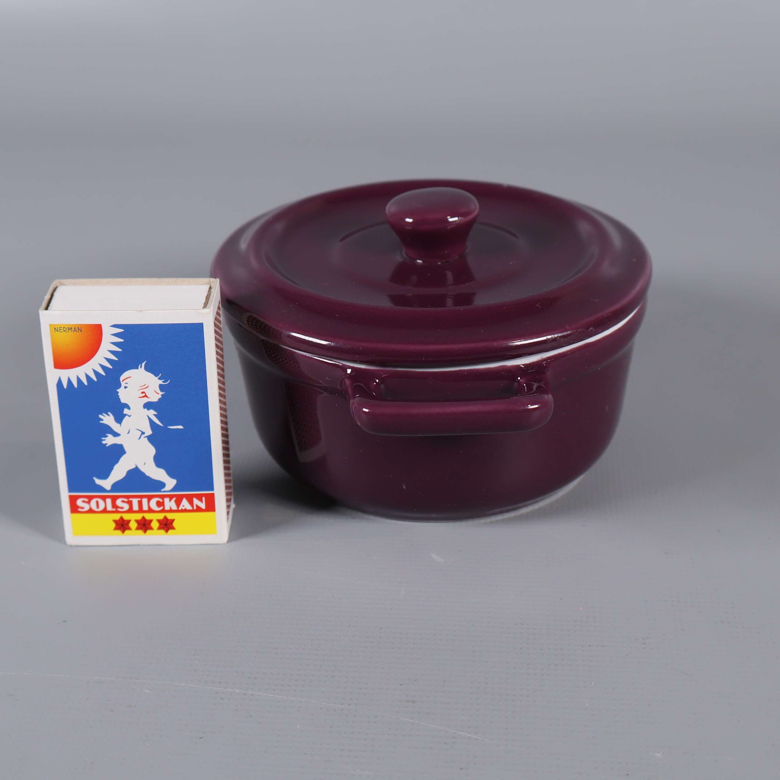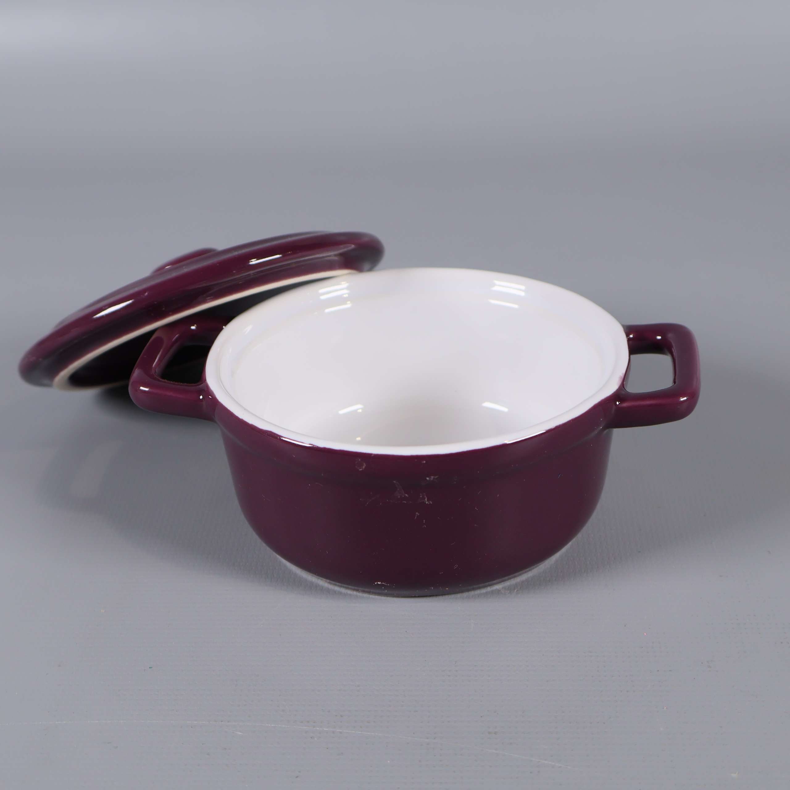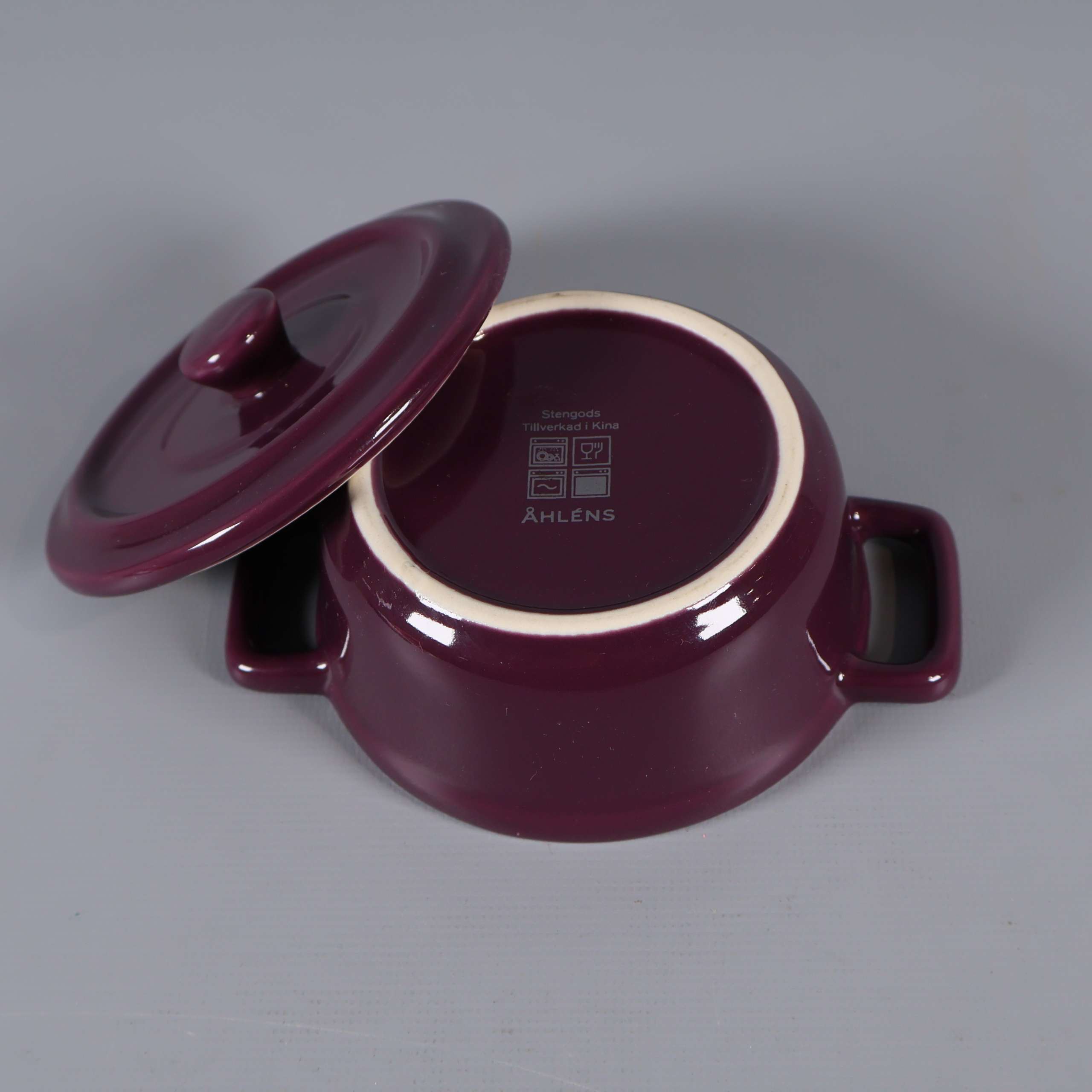 Åhléns Åhlens - Tempo - Lila minigryta med lock 69 kr Product variation Antal st Beskrivning Praktisk liten gryta i stengods med glansig plommonlila utsida och vit insida, komplett med lock och breda handtag för enkel hantering. Passar både som serveringskärl eller dekorativ detalj, och har en stilren, modern känsla. Visa all beskrivning Detaljer Höjd: 4.5 cm Skick Gott skick Produkten har använts men är av fin kvalitet, det kan förekomma mindre förslitningar. Läs mer om hur vi bedömer Dimensions Höjd: ca 4.5cm, Bredd: ca 13.5cm, Diameter: ca 10cm Färg Lila Material Stengods Varumärke Åhléns Produkten är unik och finns enbart som 1 st i lager. Fri frakt på alla köp över 990 kr. 14 dagars ångerrät.