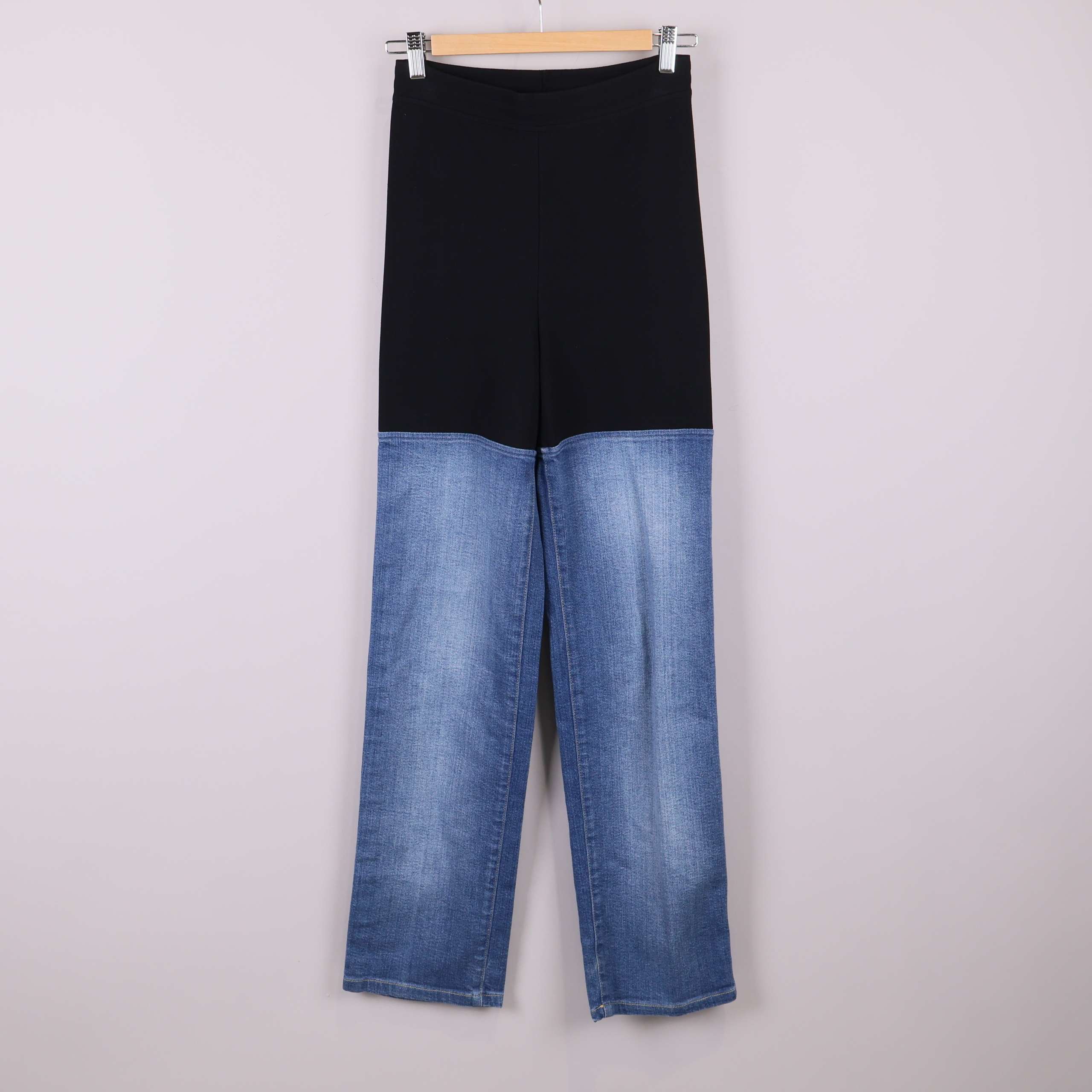 Material: Svart tyg: 72% Viskos, 15% Polyester, 12% Polyamid, 1% Polyuratan, Denimtyg: 98% Bomull 2% Elastan