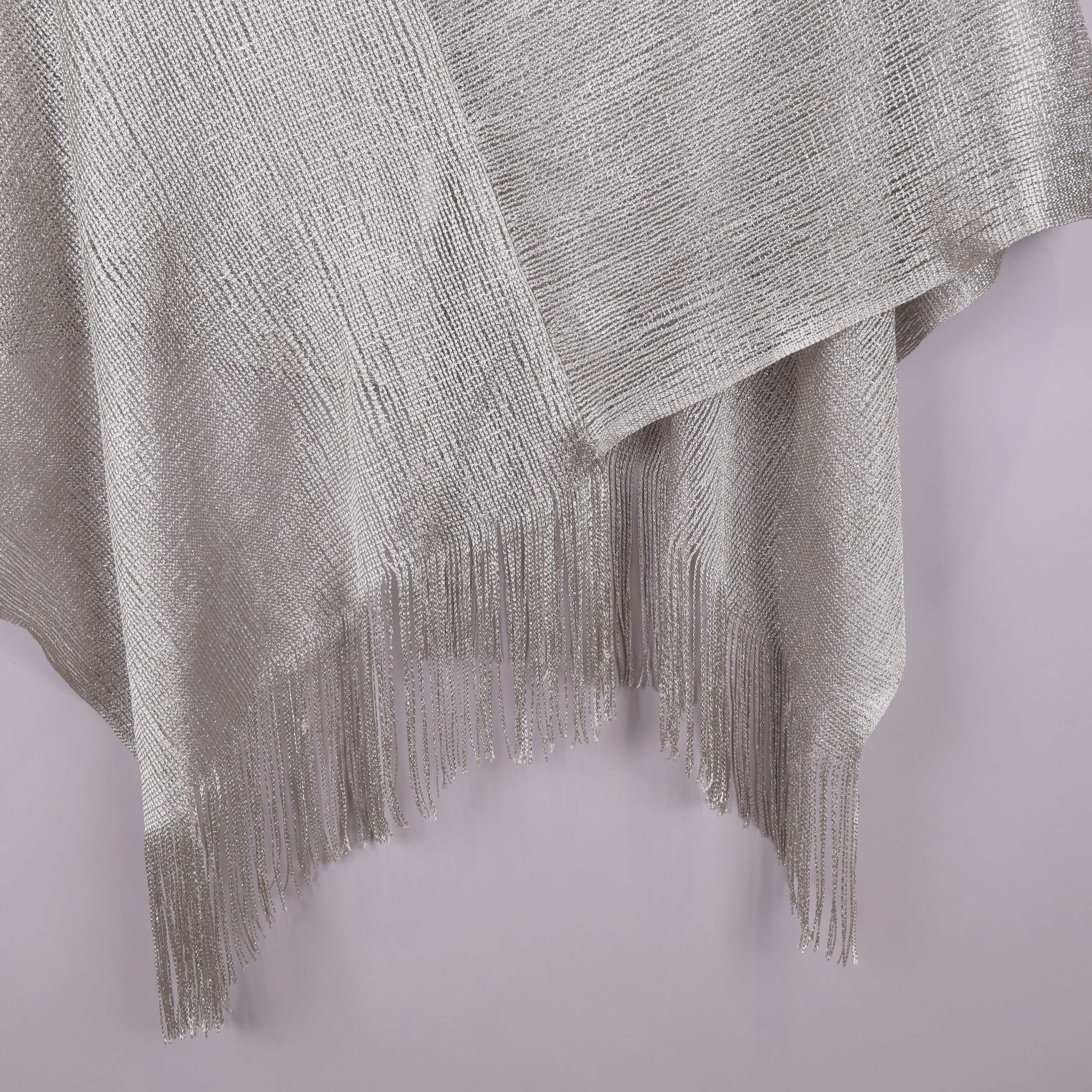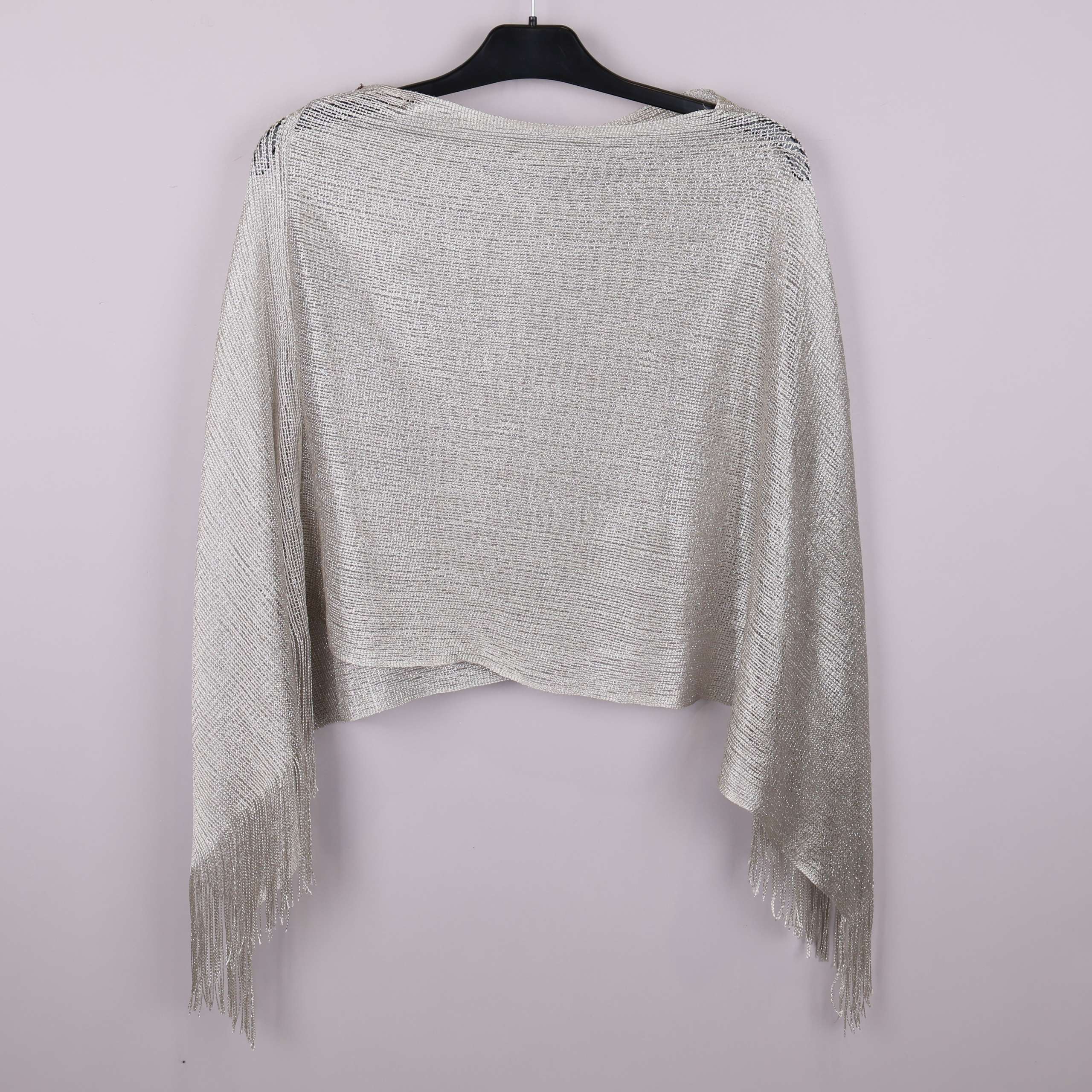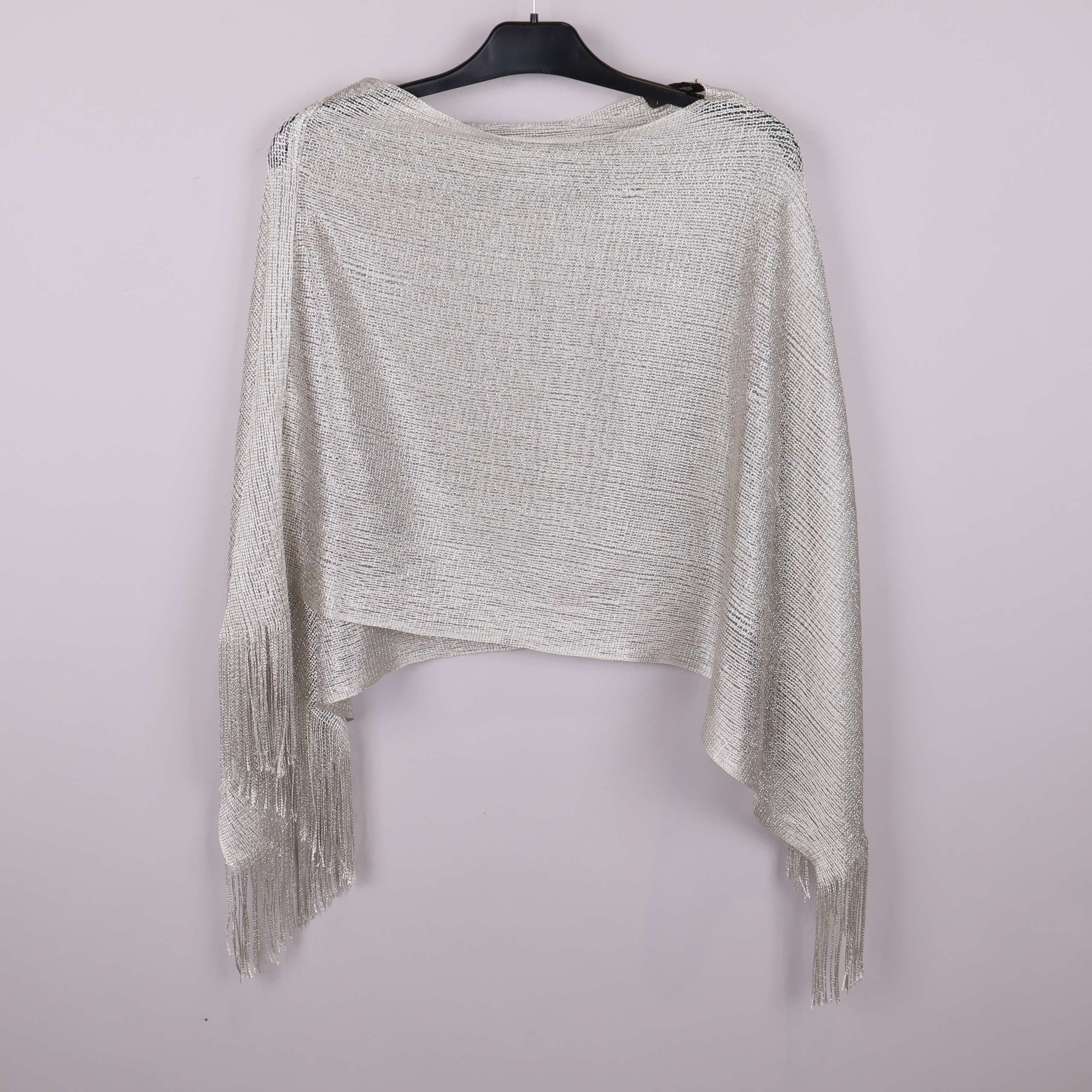 Stilren poncho med glansig struktur och mjukt fall. Modellen har fransdetaljer längs nederkanten som ger en modern och lekfull touch. Tygets lätta och blanka yta skapar ett elegant intryck och passar lika bra över olika outfits. Enkel att matcha och perfekt för dig som gillar ett diskret statement-plagg.