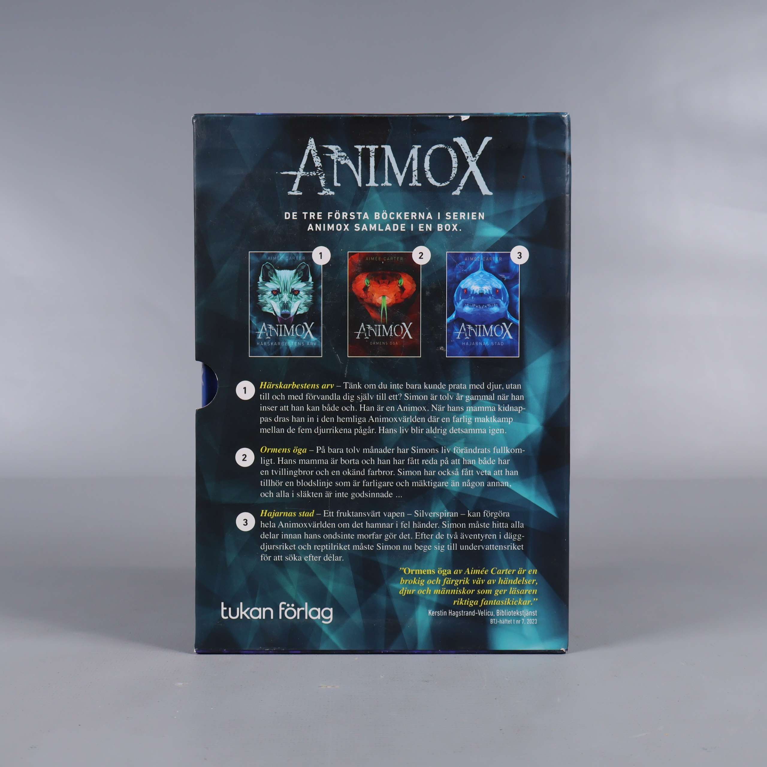 Animox bokpaket innehåller de tre första delarna i serien: Härskarbestens arv, Ormens öga och Hajarnas stad. Böckerna har snygga, färgstarka omslag med djurmotiv och en modern design. Perfekt för dig som gillar fantasy och spänning i ungdomsstil. Inbunden utgåva med genomgående illustrationer och en cool, samtida känsla.