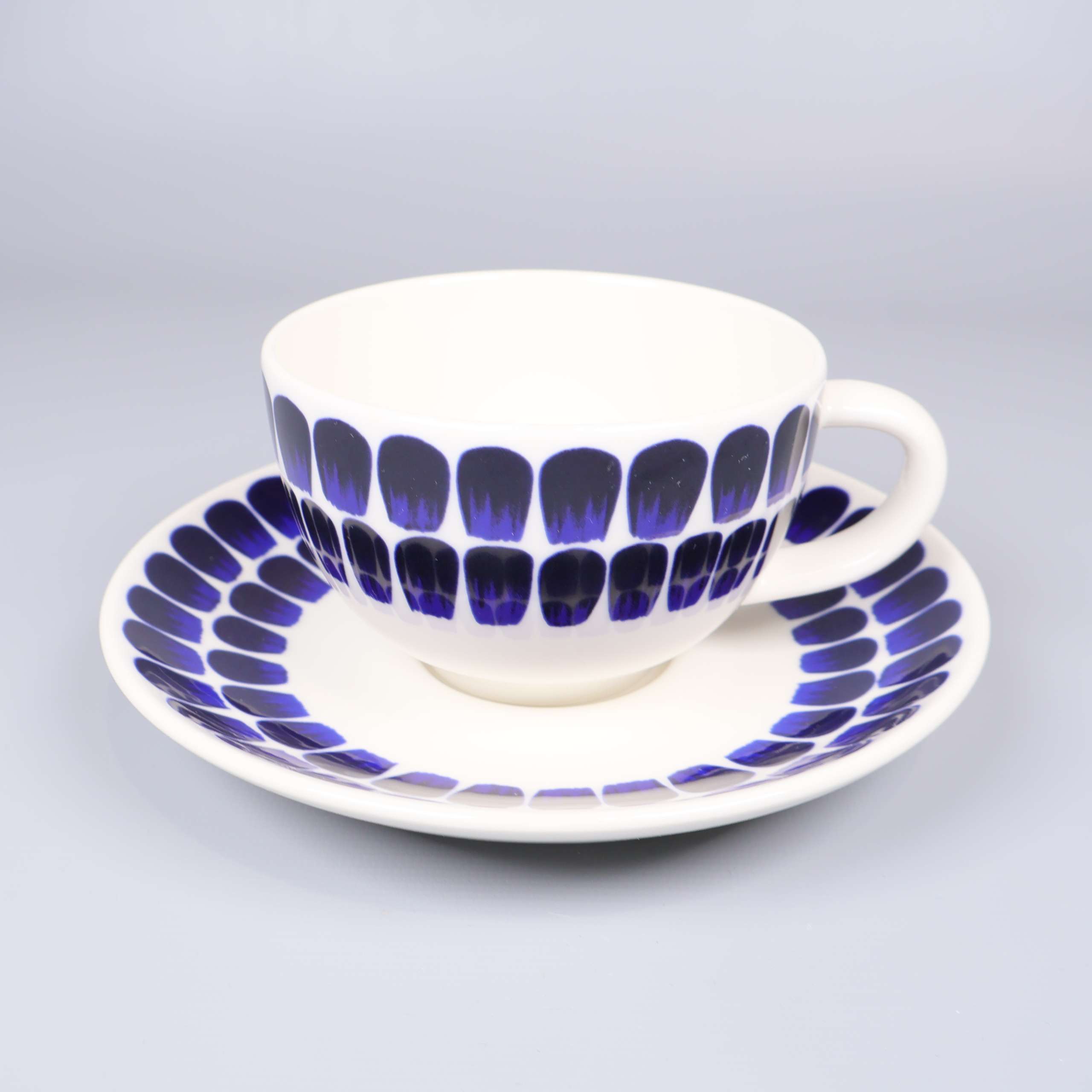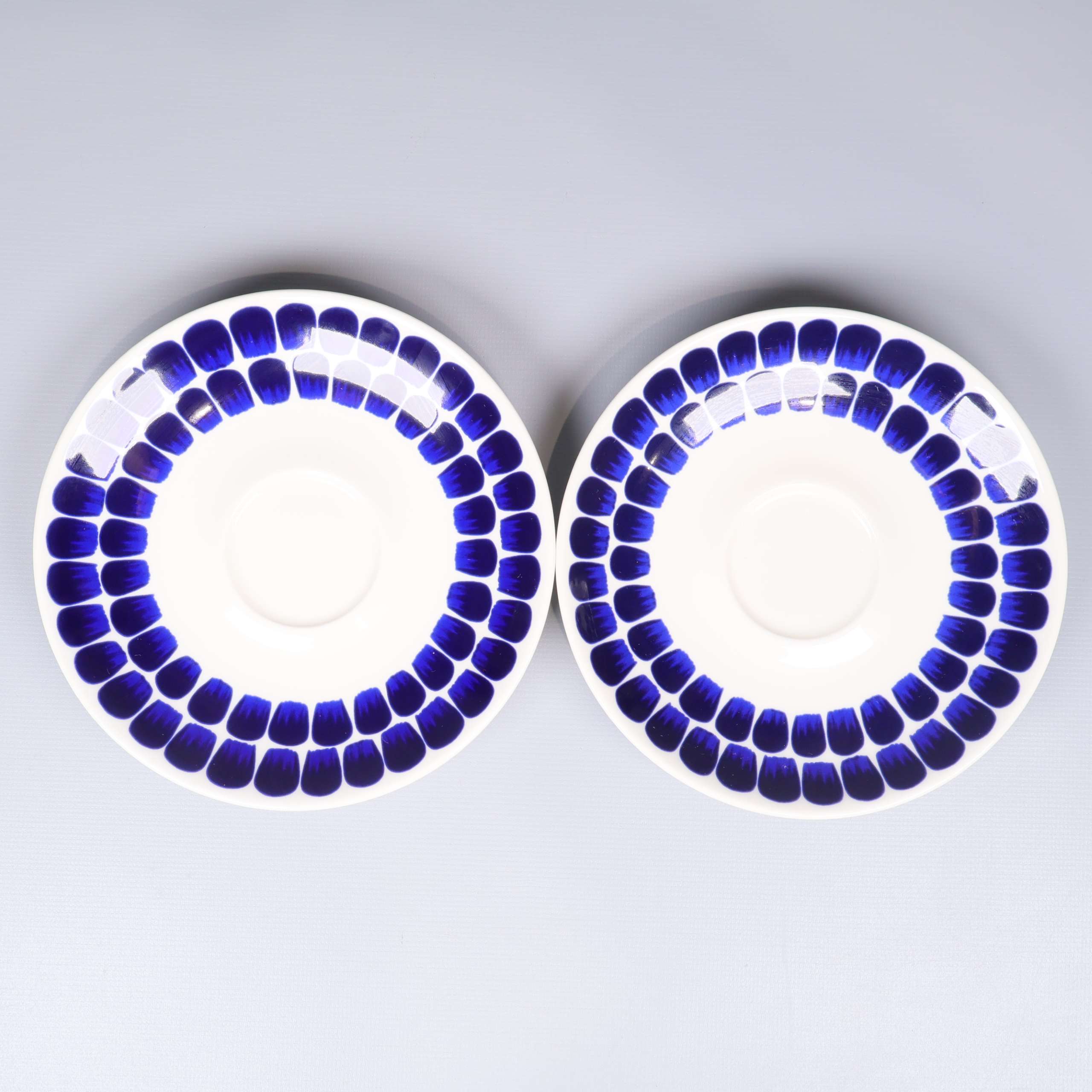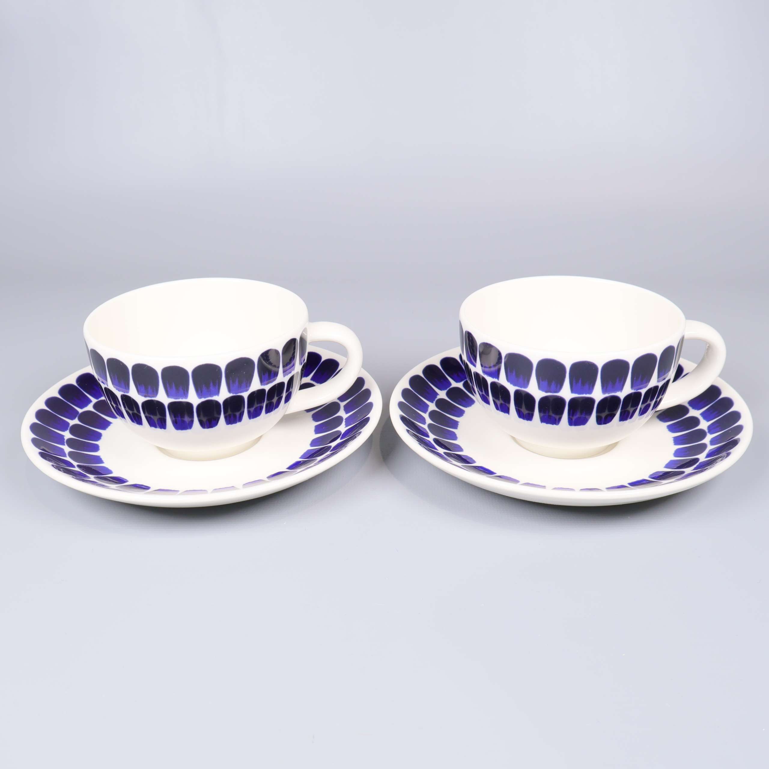Arabia Finland Arabia - Heikki Orvola - 24h Tuokio - Kaffekoppar med fat 359 kr Product variation Antal st Beskrivning Två kaffekoppar med tillhörande fat i design från Heikki Orvola. Visa all beskrivning Detaljer Höjd: 6,5 cmDiameter: 16,5 cm Skick Mycket gott skick Produkten är sparsamt använd, är av fin kvalitet och ska inte ha några skador eller förslitningar. Läs mer om hur vi bedömer Dimensions Höjd: 6,5 cm Diameter: 16,5 cm Färg Blå Material Porslin Varumärke Arabia Finland Produkten är unik och finns enbart som 1 st i lager. Fri frakt på alla köp över 990 kr. 14 dagars ångerrät.