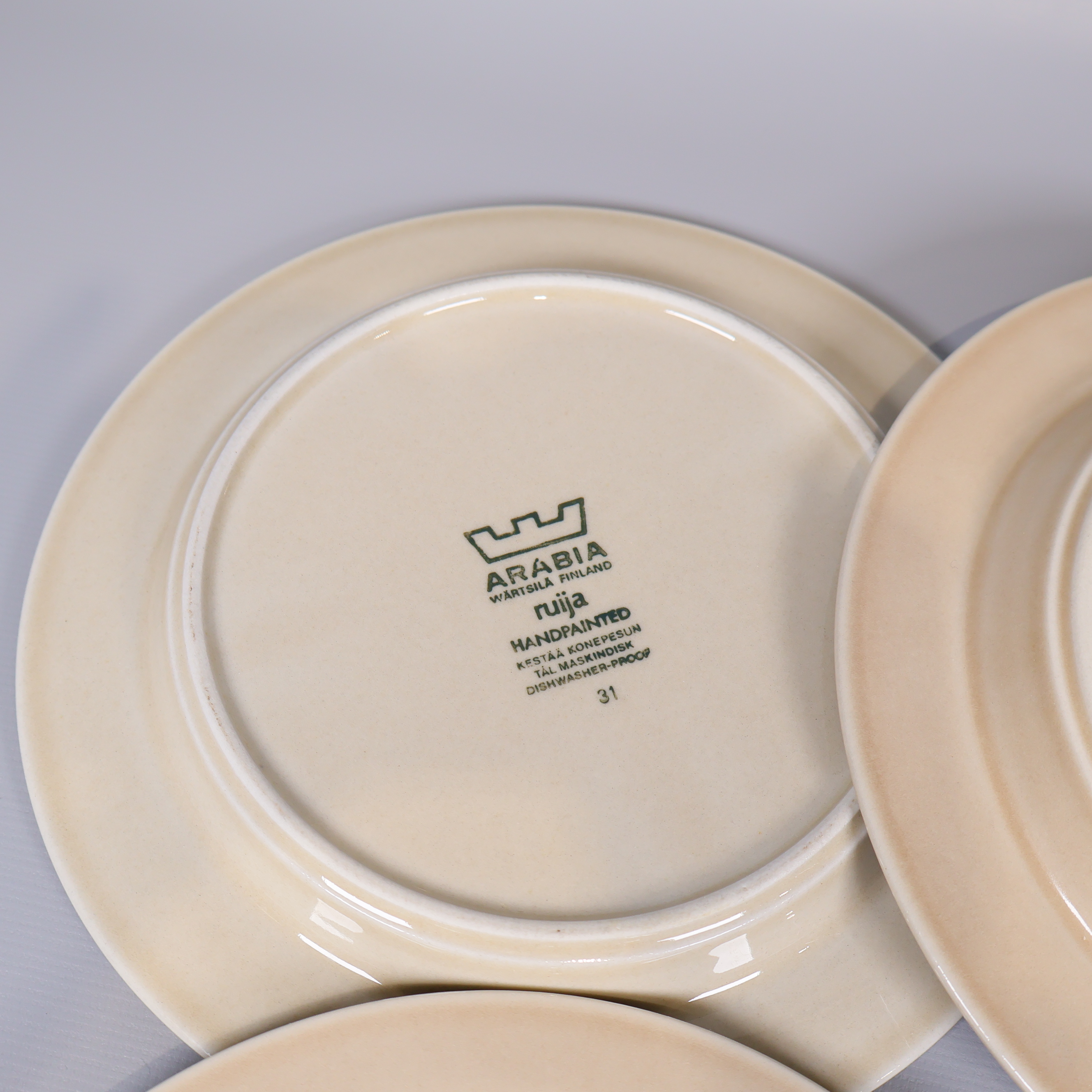 Arabia Finland Arabia - Ruija - Assietter - 6st 199 kr Product variation Antal st Beskrivning Sex fina assietter från Arabia Finland med klassisk bred brun kant och stilren design. Visa all beskrivning Skick Gott skick Produkten har använts men är av fin kvalitet, det kan förekomma mindre förslitningar. Läs mer om hur vi bedömer Dimensions Ca Diameter: 20cm Färg Brun Material Porslin Varumärke Arabia Finland Produkten är unik och finns enbart som 1 st i lager. Fri frakt på alla köp över 990 kr. 14 dagars ångerrät.