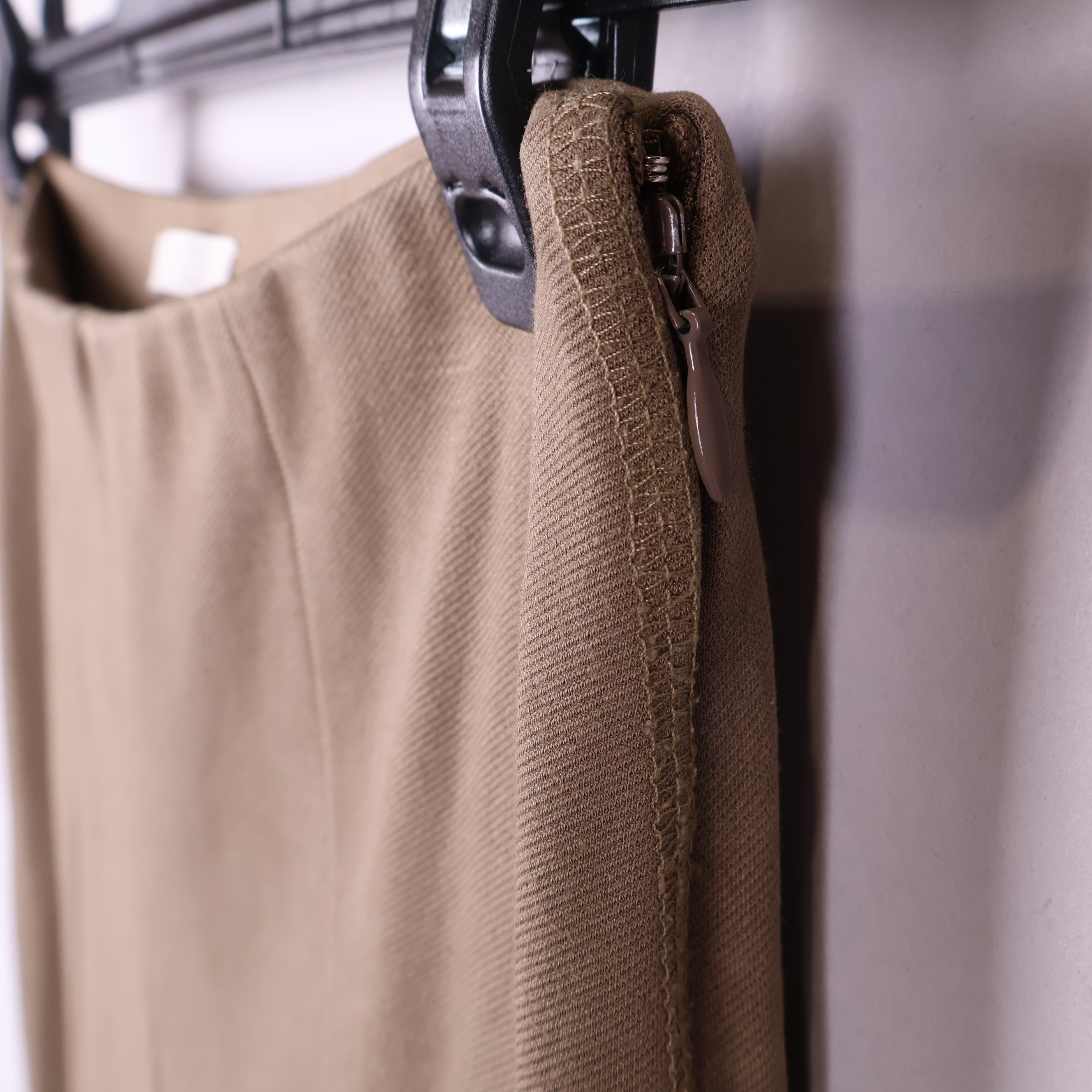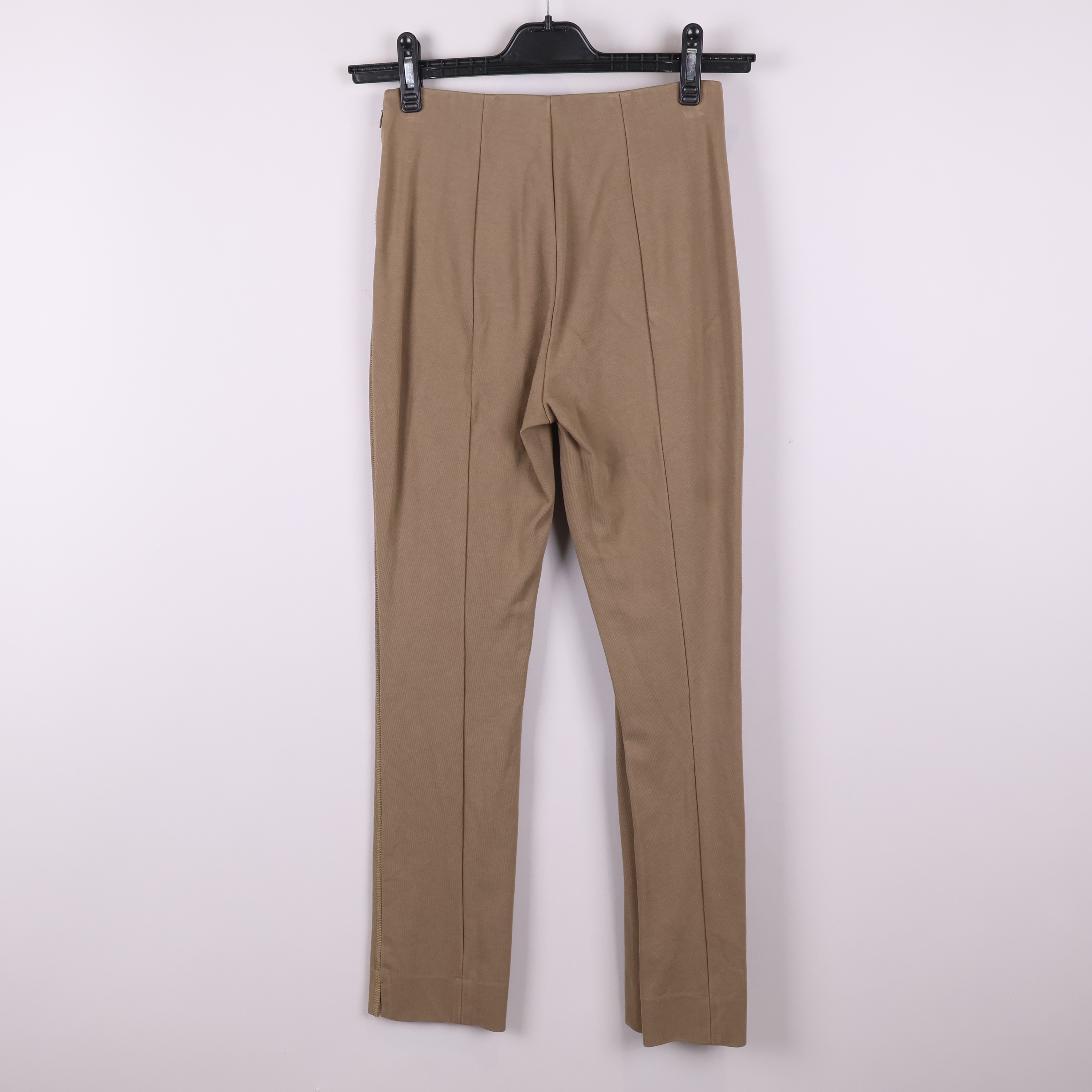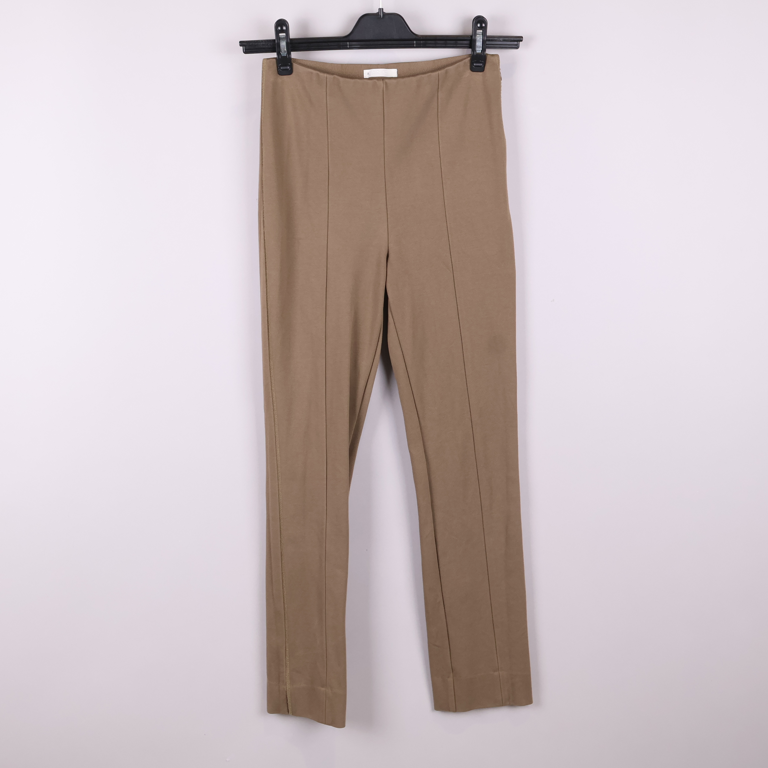 Byxor i stilren beige ton med diskreta pressveck framtill och dragkedja i sidan för en smidig och minimalistisk look. Klassisk, något tajtare passform som ger ett enhetligt intryck från midja till benslut.
