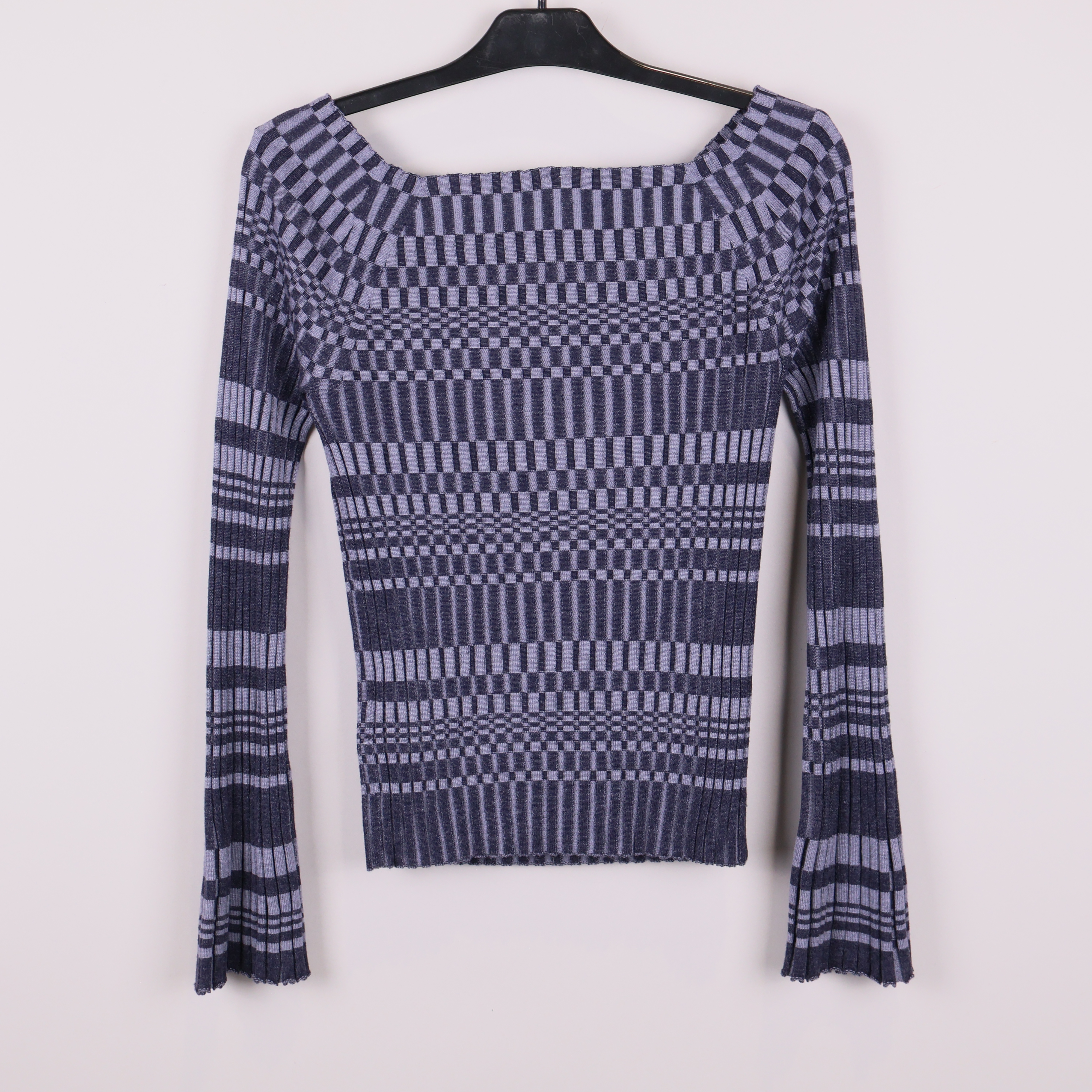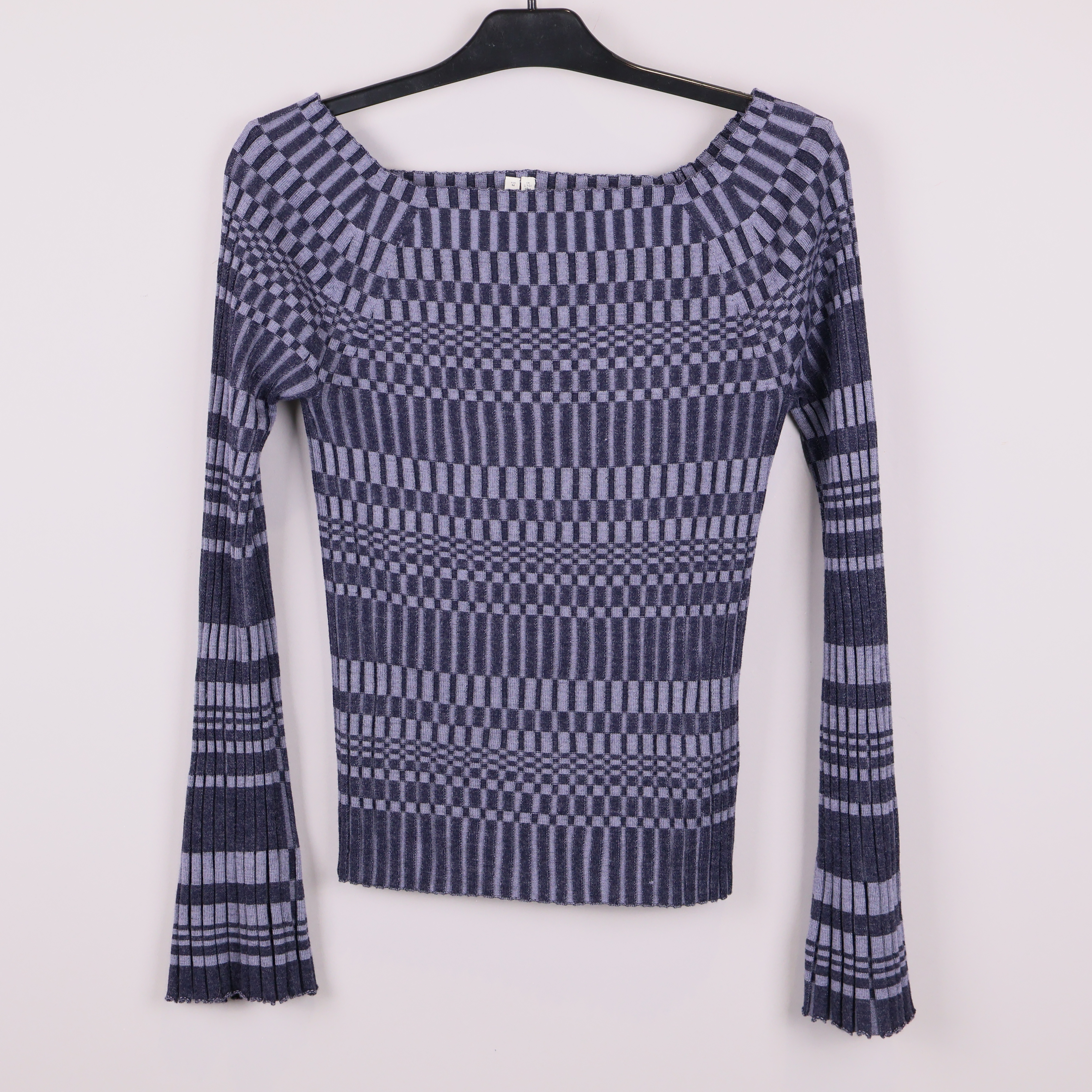 Randig och grafiskt mönstrad långärmad topp med rak passform och rymlig fyrkantig halsringning. Mjukt stickat material med stretch för ökad komfort och följsamhet.