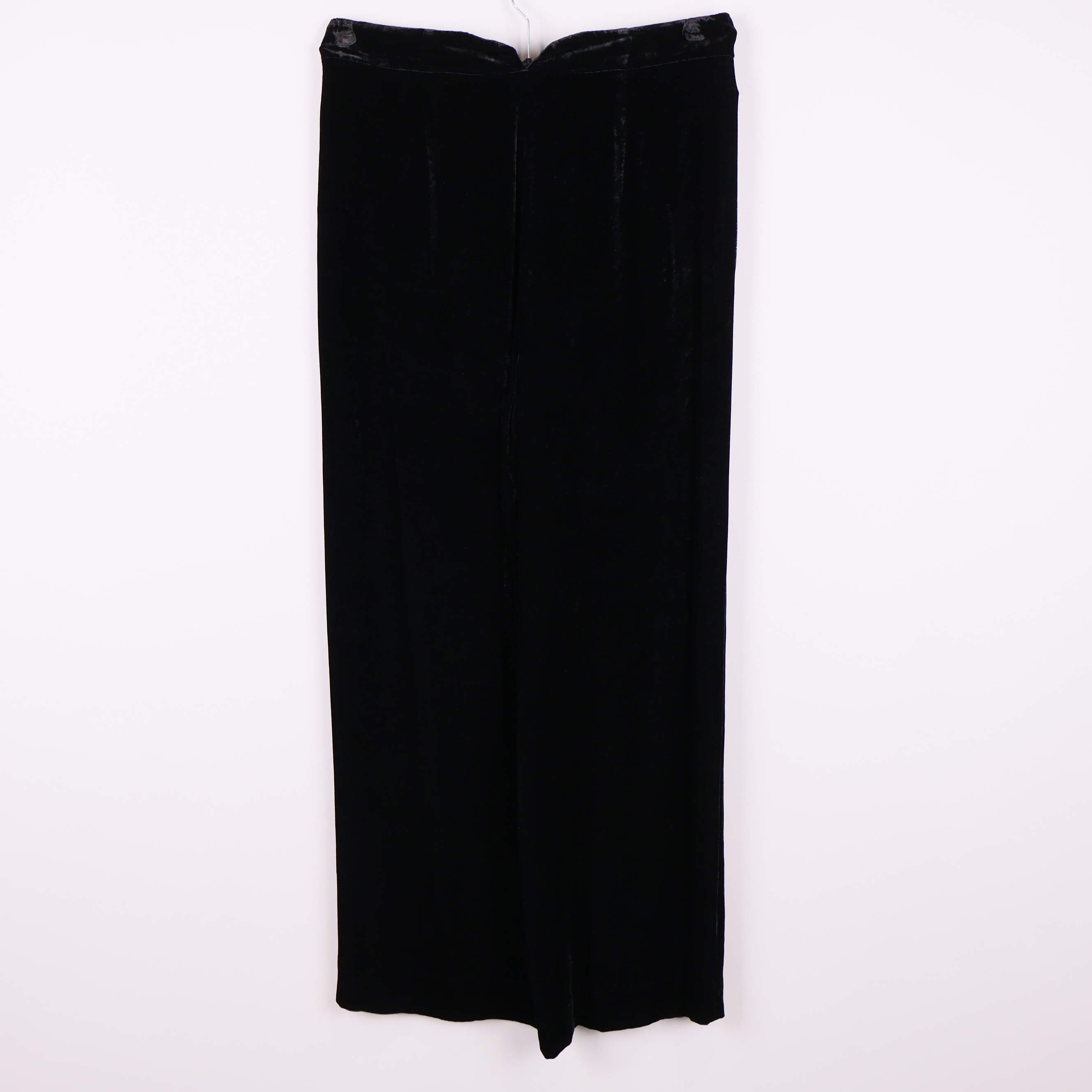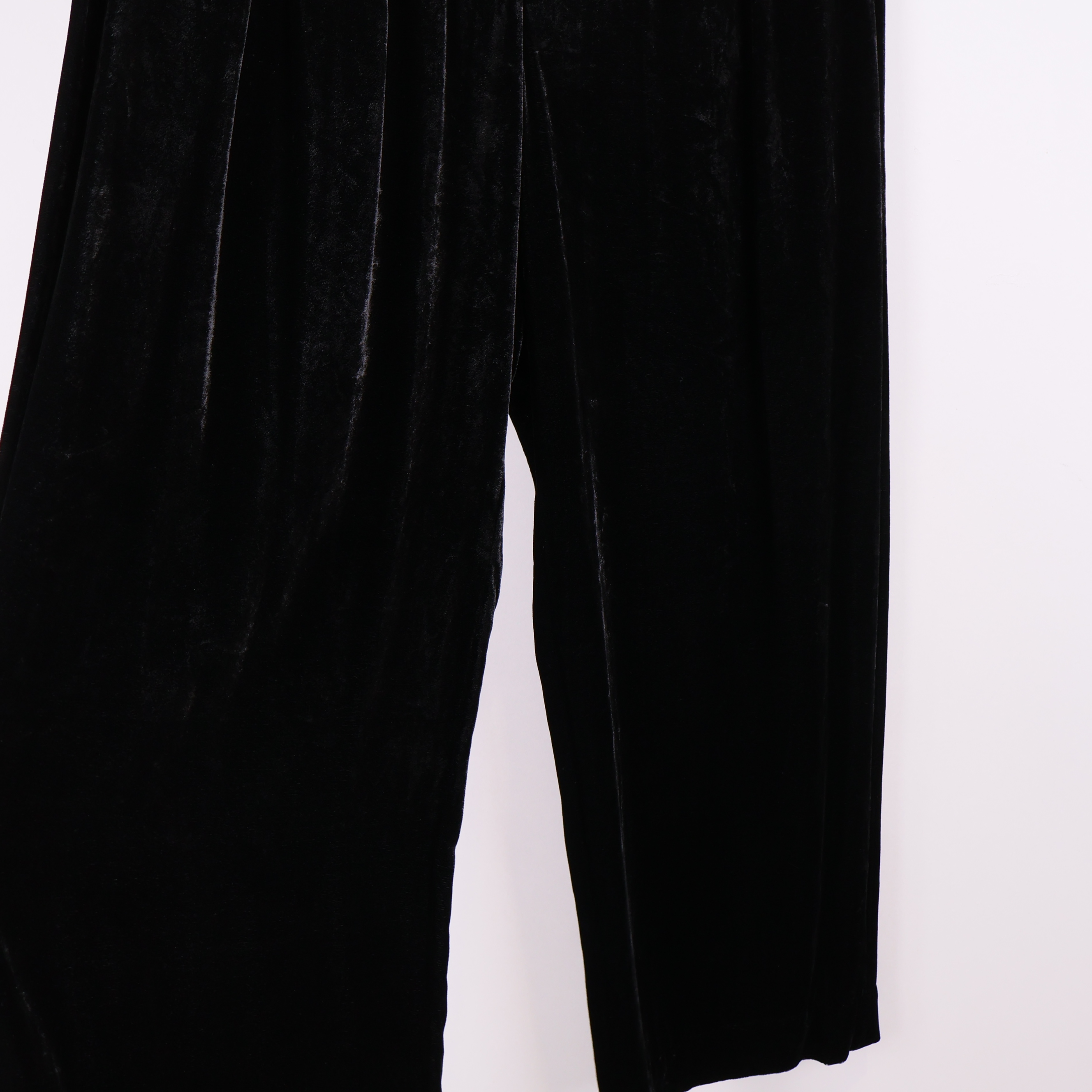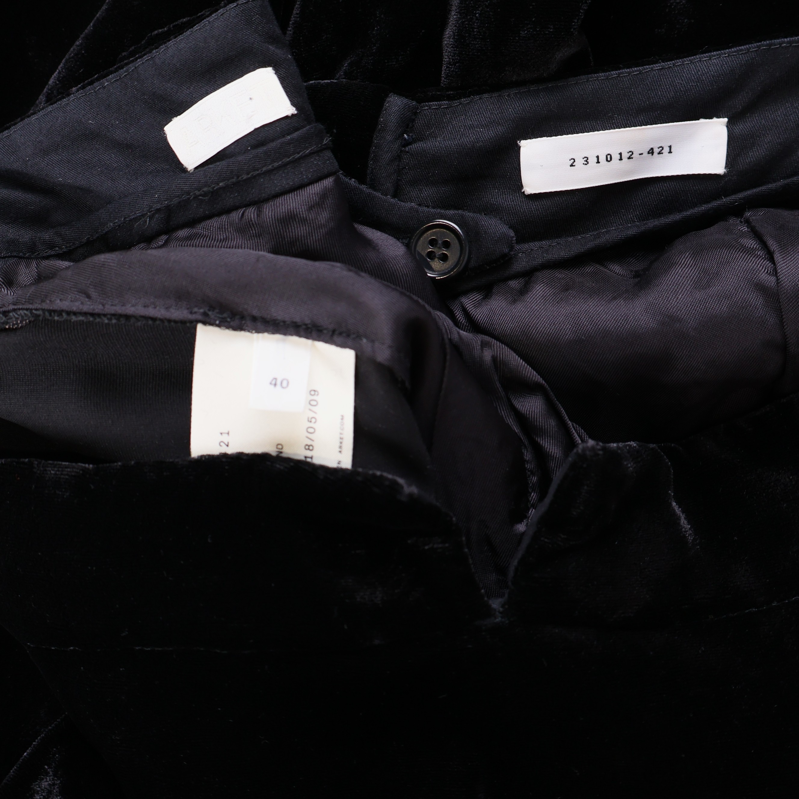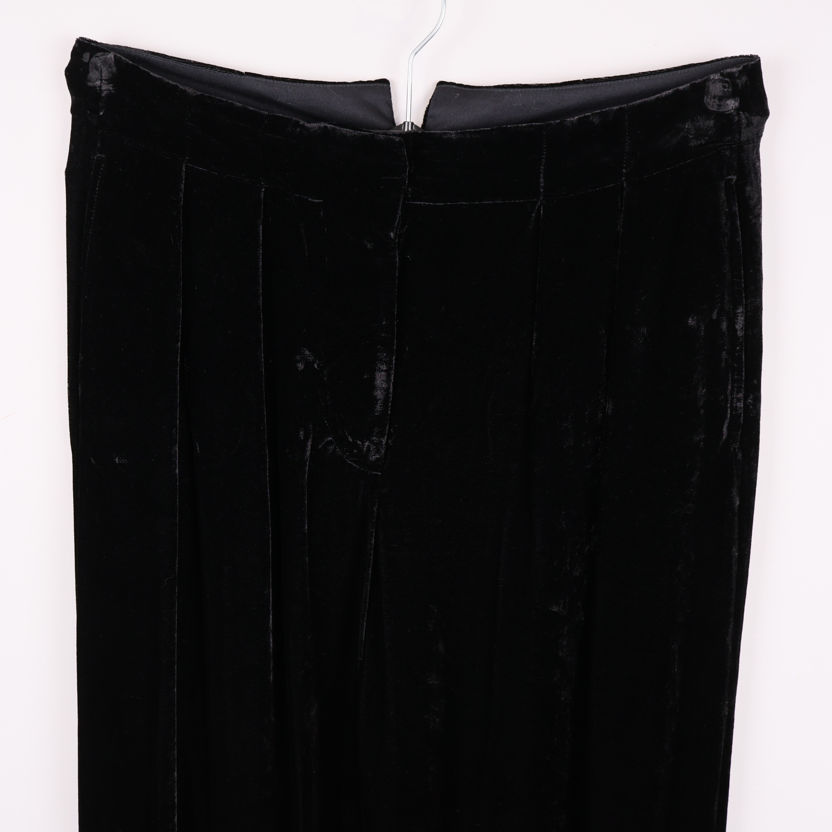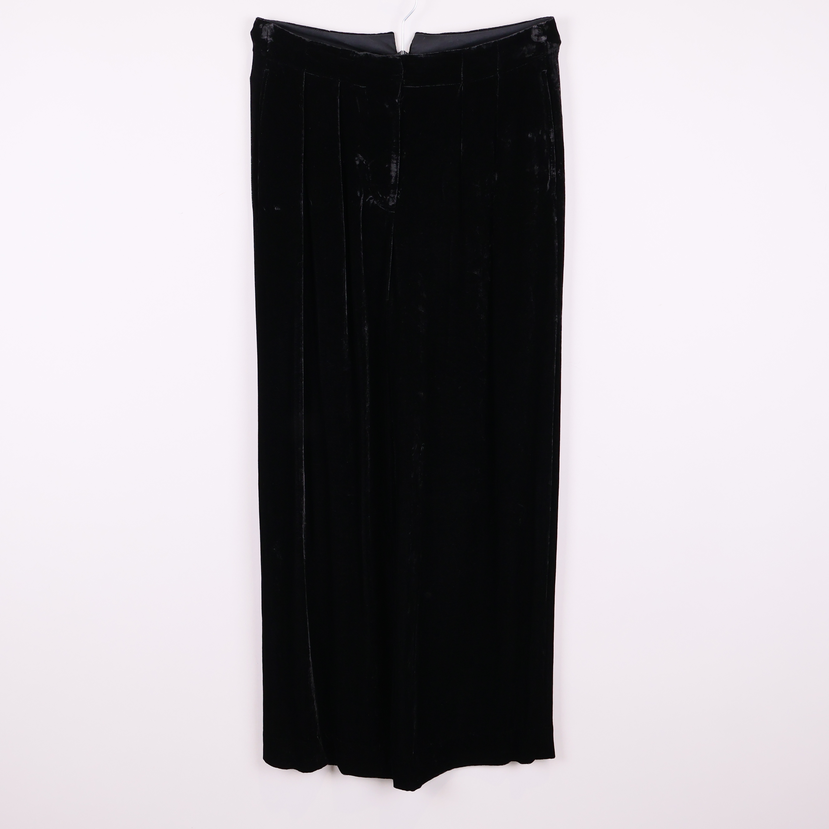 ARKET sammetsbyxor i svart med hög midja och dold knappgylf framtill. Vecken framtill skapar en dressad känsla, perfekt för dig som gillar en stilren silhuett med extra rörelsefrihet.
