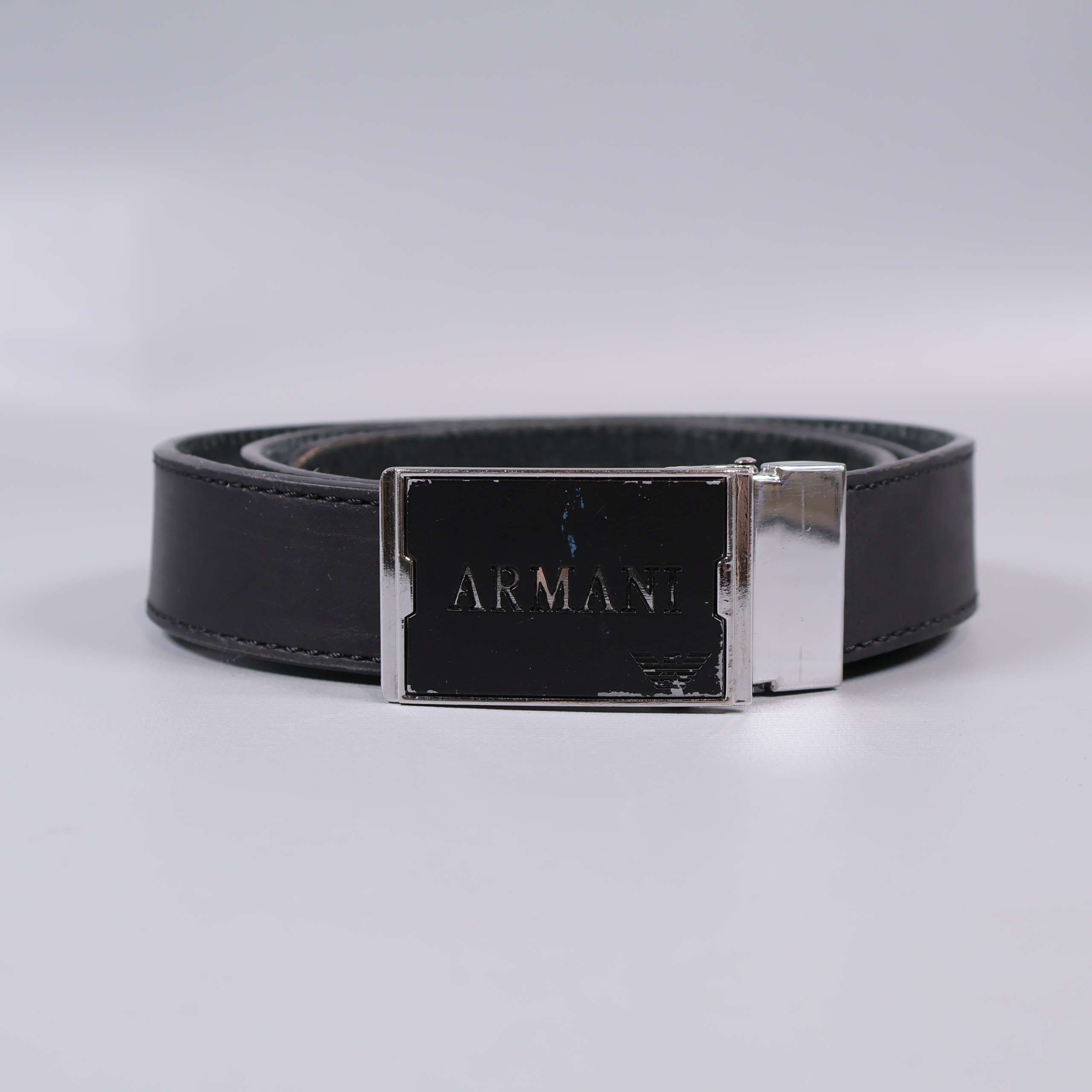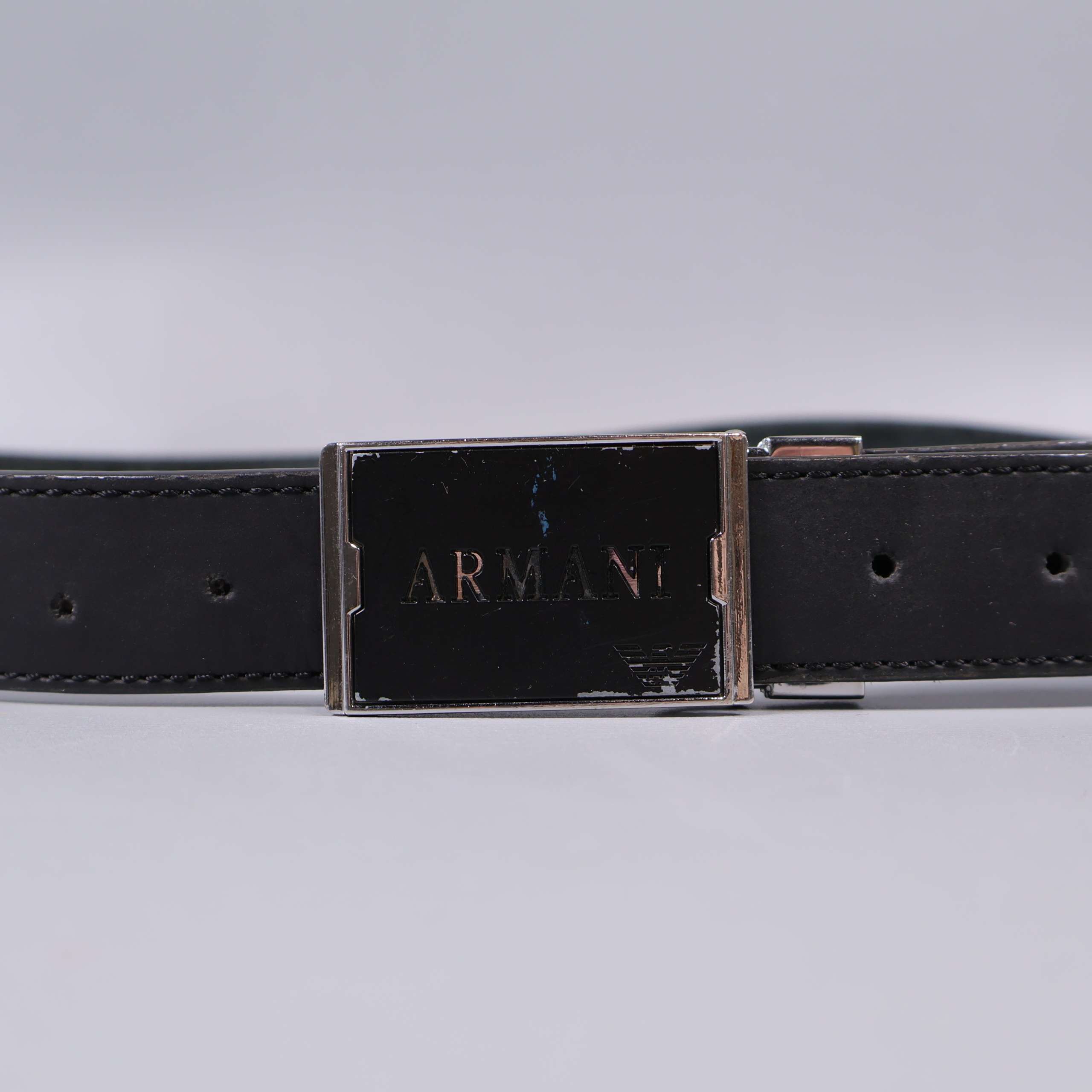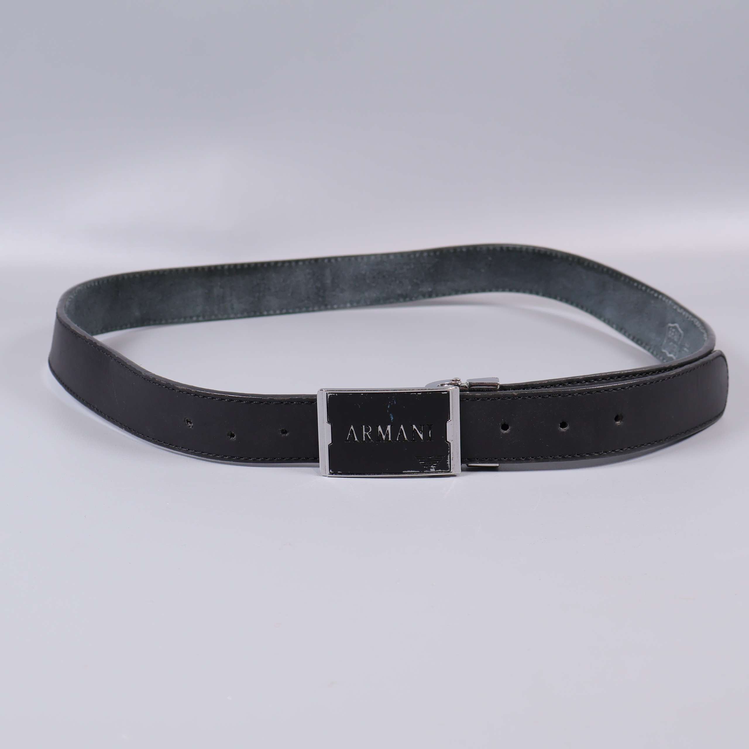 Armani svart läderbälte med metallspänne
