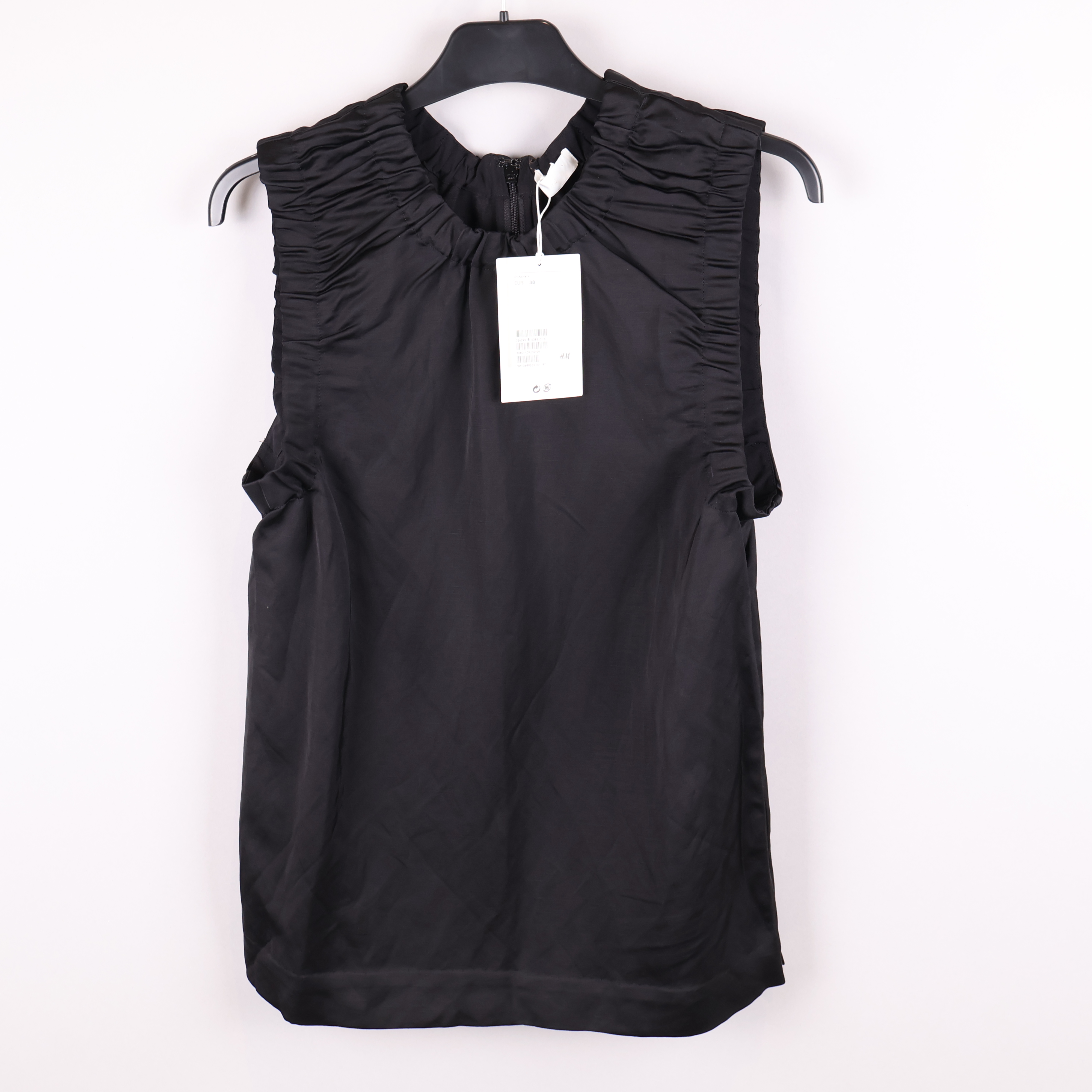 Elegant ärmlös blus med rynkdetaljer vid axlarna. Designad med en neutral ton som enkelt matchas med olika outfits. Mjukt material som ger en bekväm känsla och passar för både vardagsbruk och speciella tillfällen.