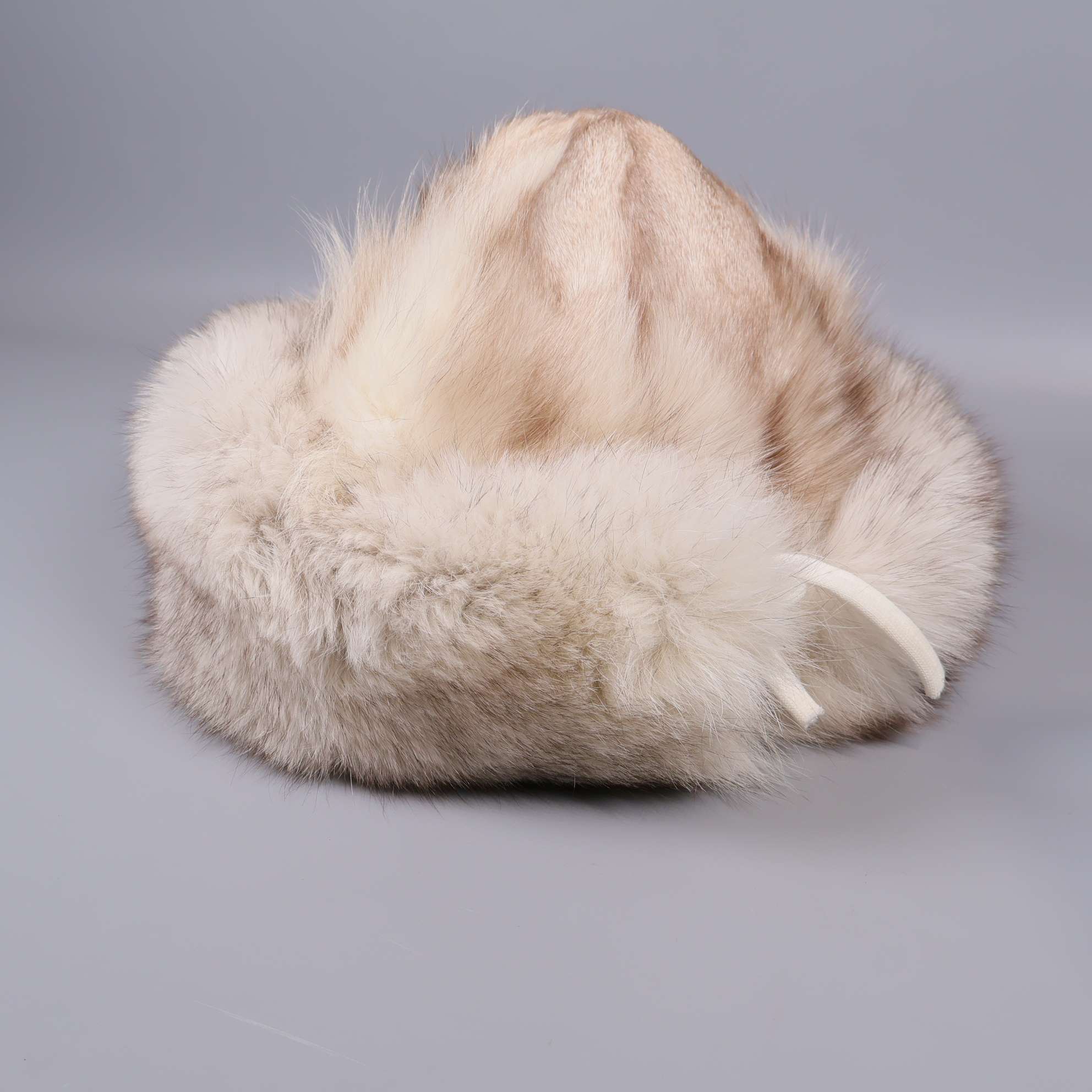 Atelié Lili pälsmössa med uppvikt kant och knytband