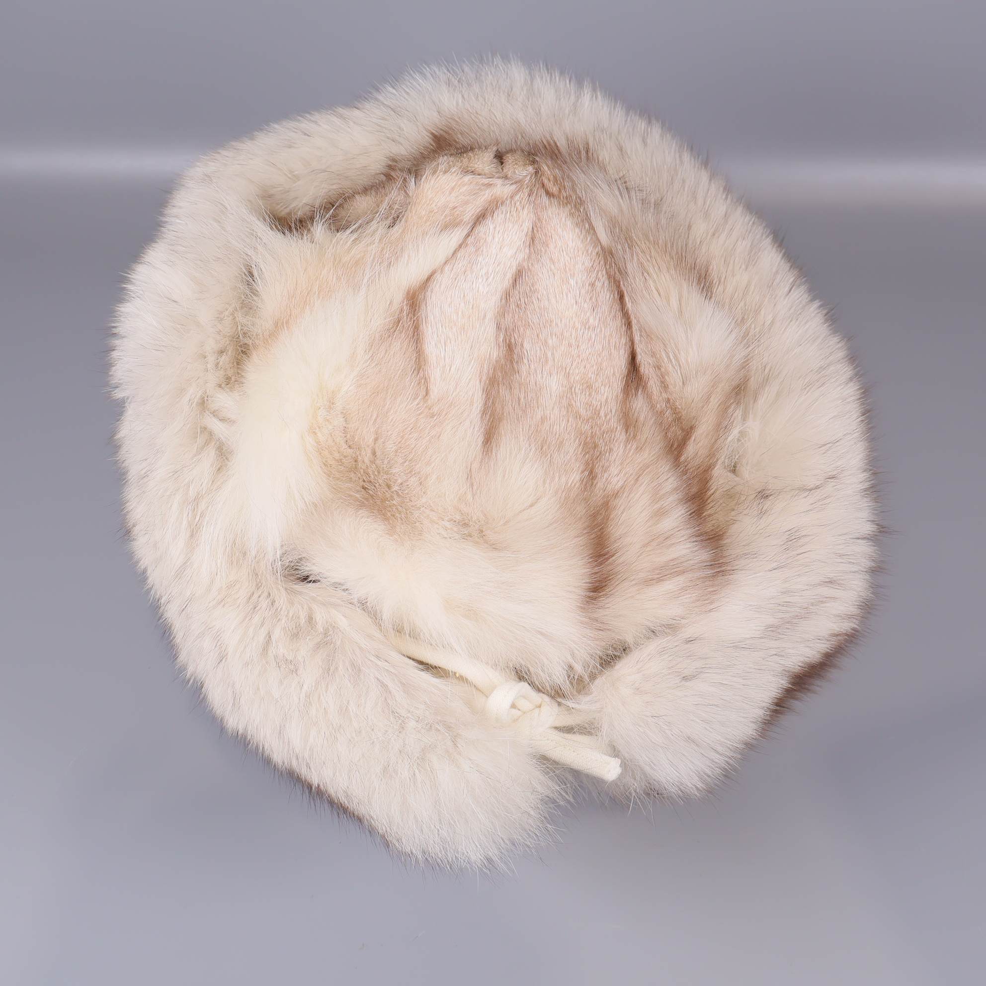 Lyxig pälsmössa med naturlig mjuk lyster och synliga knytband framtill ger en elegant look. Mössan har en rund och följsam passform med bred kant och lätt skimrande päls i ljusa toner. Sitter bekvämt på huvudet tack vare sitt mjuka innerfoder. Perfekt för dig som vill ha en varm accessoar med vintage vibe.