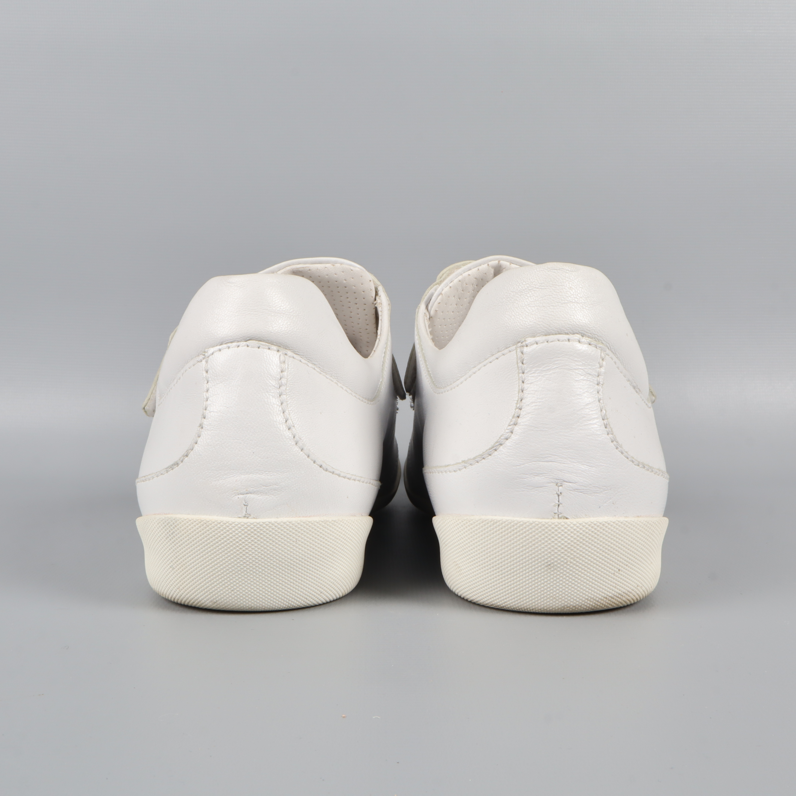 Stilrena vita sneakers med dekorativ strass frantill och bekväma kardborreband för en enkel passform. Tillverkade i högkvalitativt läder med märket Baldinini präglat på sidan. Perfekta för en modern, avslappnad look.