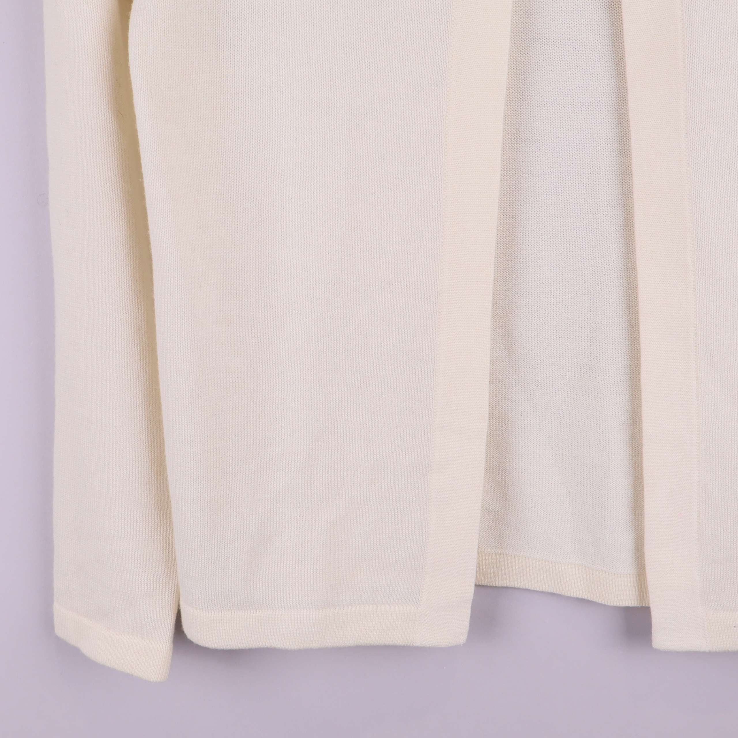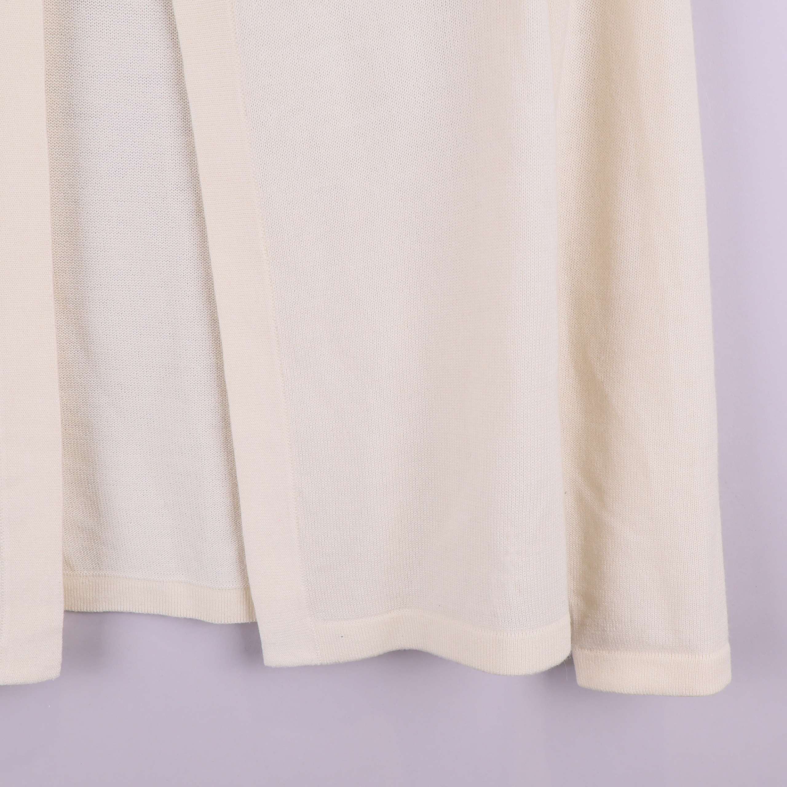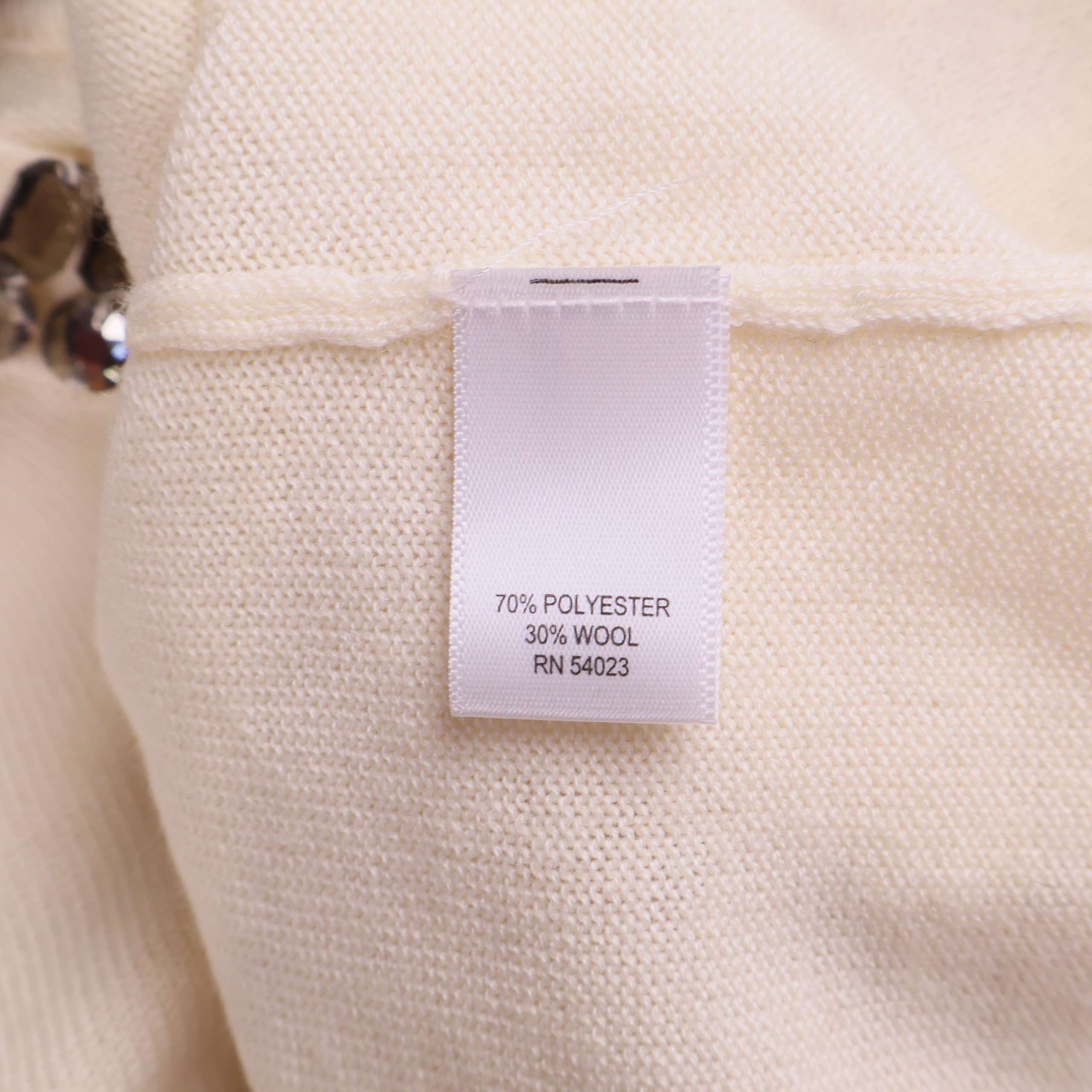 Elegant krämvit kofta med långa ärmar och rund hals, prydd med stora dekorativa stenar kring halsringningen. Modellen är öppen framtill och ger en stilren, festlig känsla. Materialet är mjukt och fint stickat, vilket skapar en behaglig och lättskött känsla.