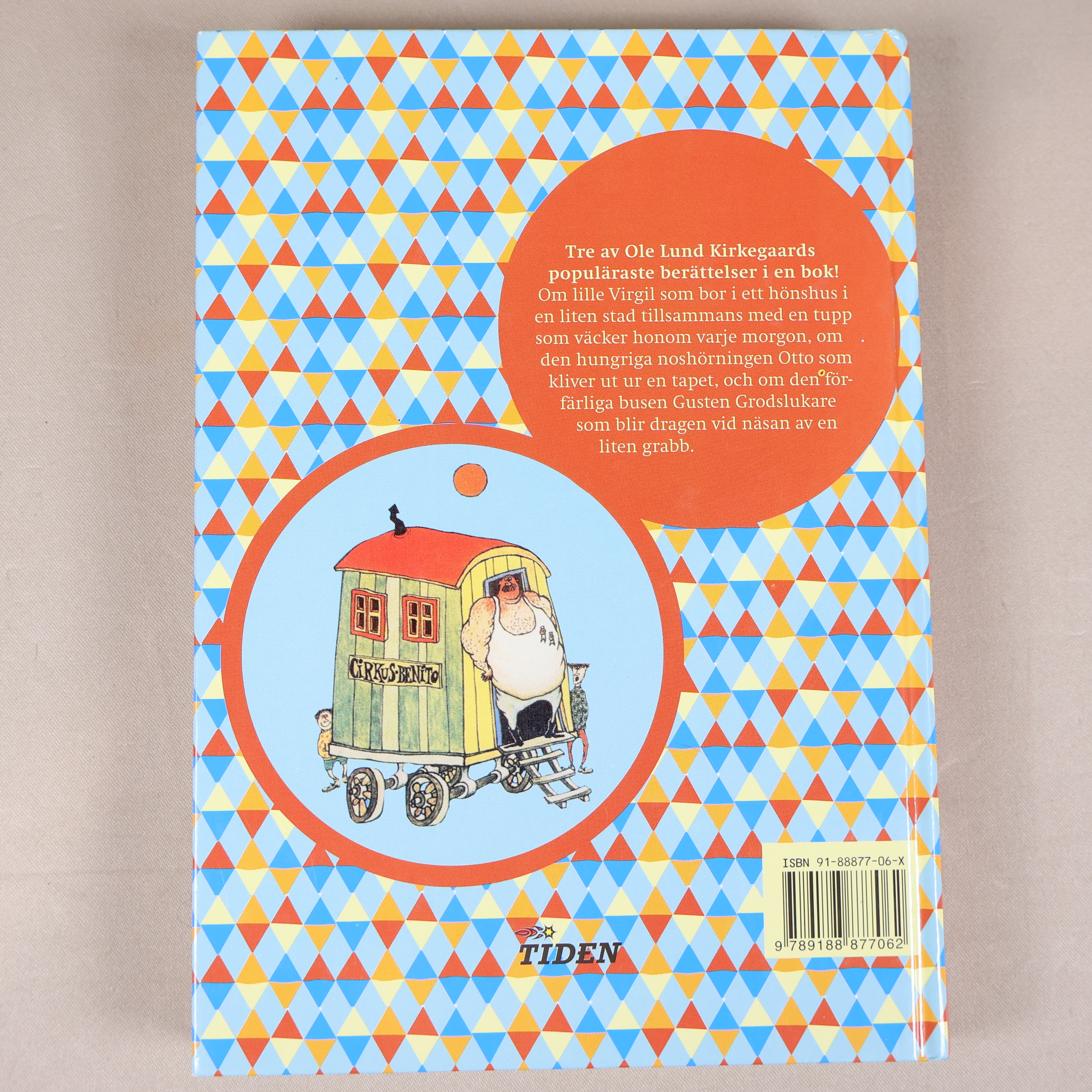 Färgstark och charmig barnbok som samlar tre berättelser i ett band – Virgil, Otto och Gusten, skrivna av Ole Lund Kirkegaard. Boken har hårdpärm och pryds av fantasifulla illustrationer både på omslaget och inuti, vilket skapar en lekfull och inbjudande känsla.