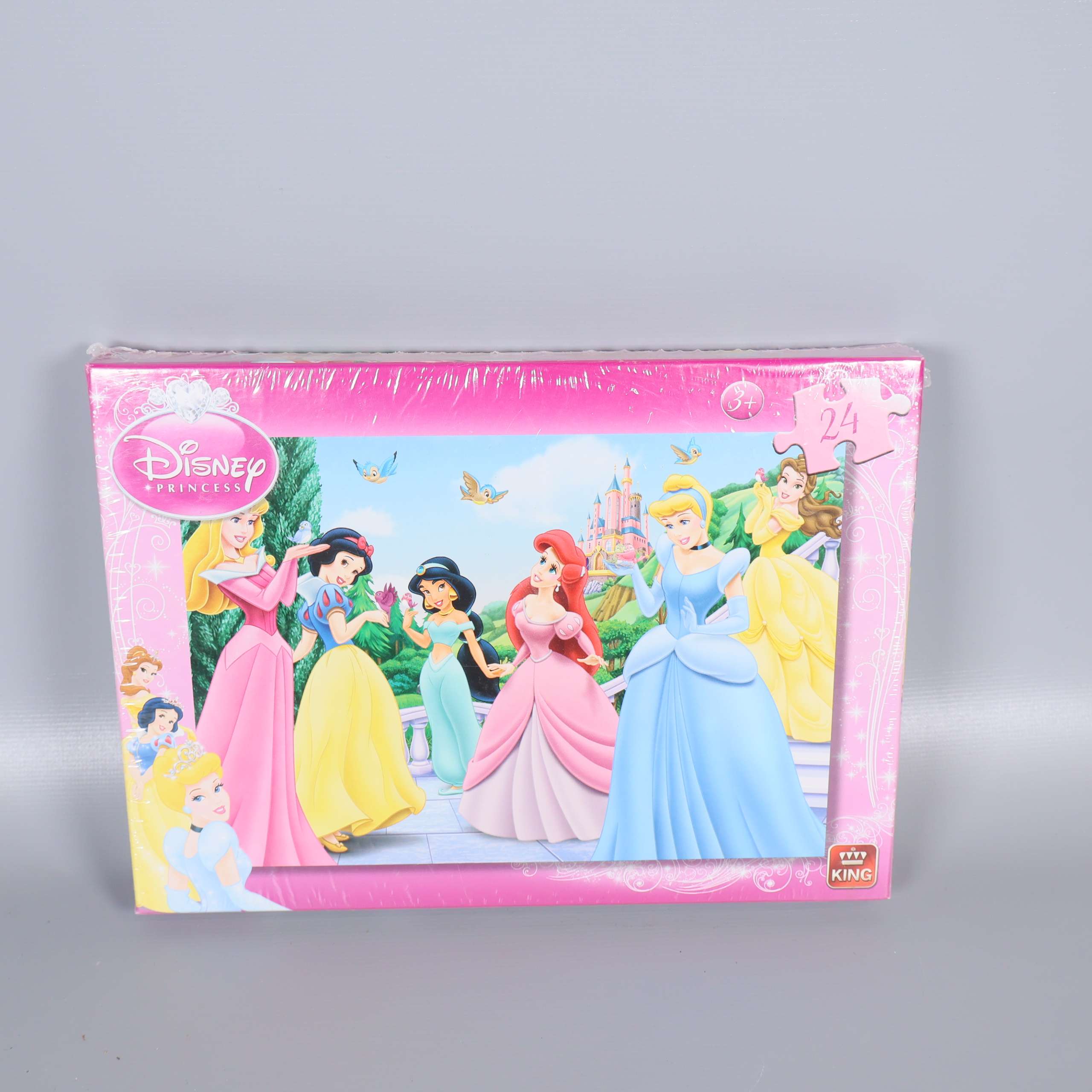 Charmigt pussel i färgglad Disney Princess-design med 24 stora bitar. Perfekt format för yngre barn som gillar prinsessor och lekfulla motiv. Lätt att hantera med robust kartong och tydliga konturer på bitarna. Förpackningen har en tydligt rosa ton som ger en lekfull och glädjefylld känsla.