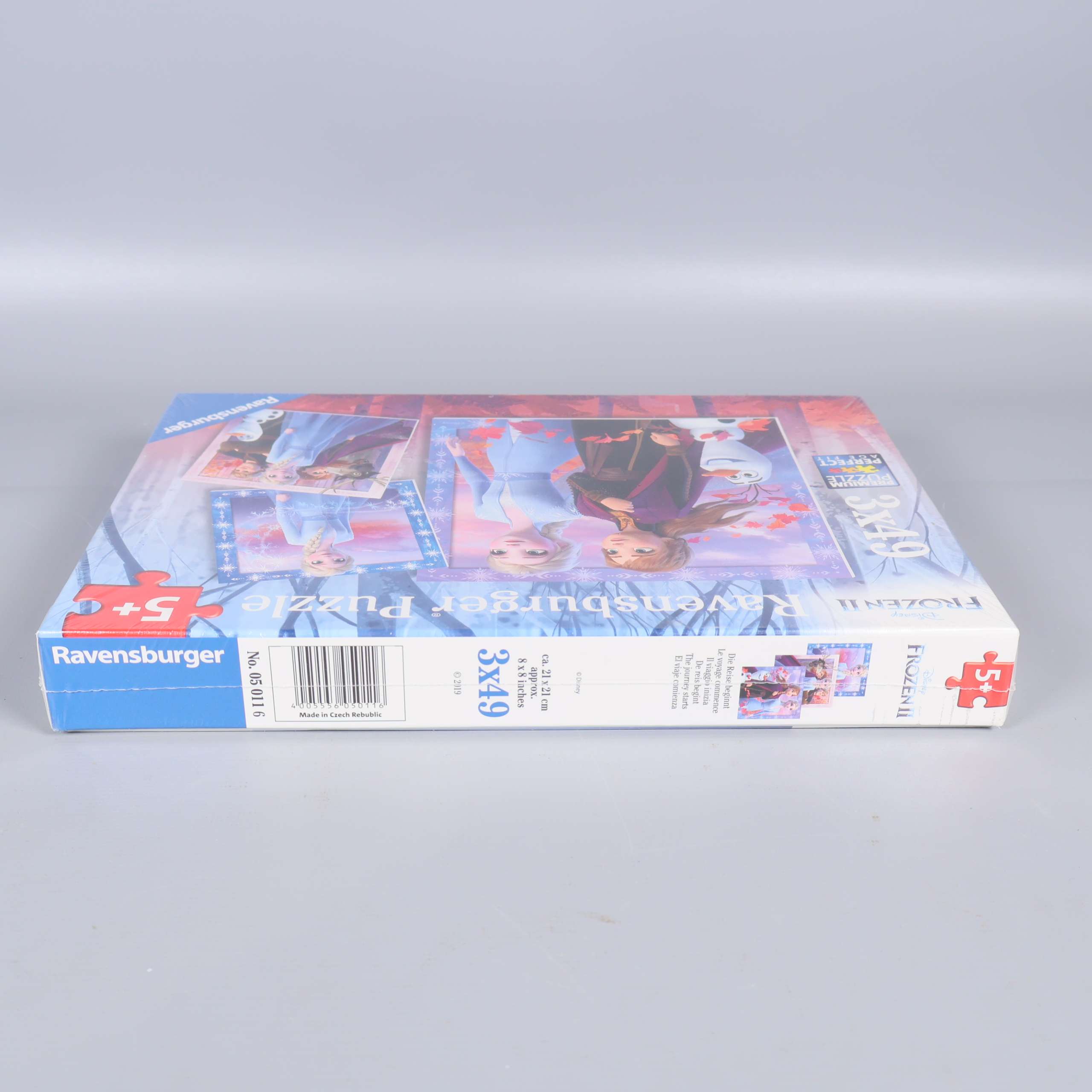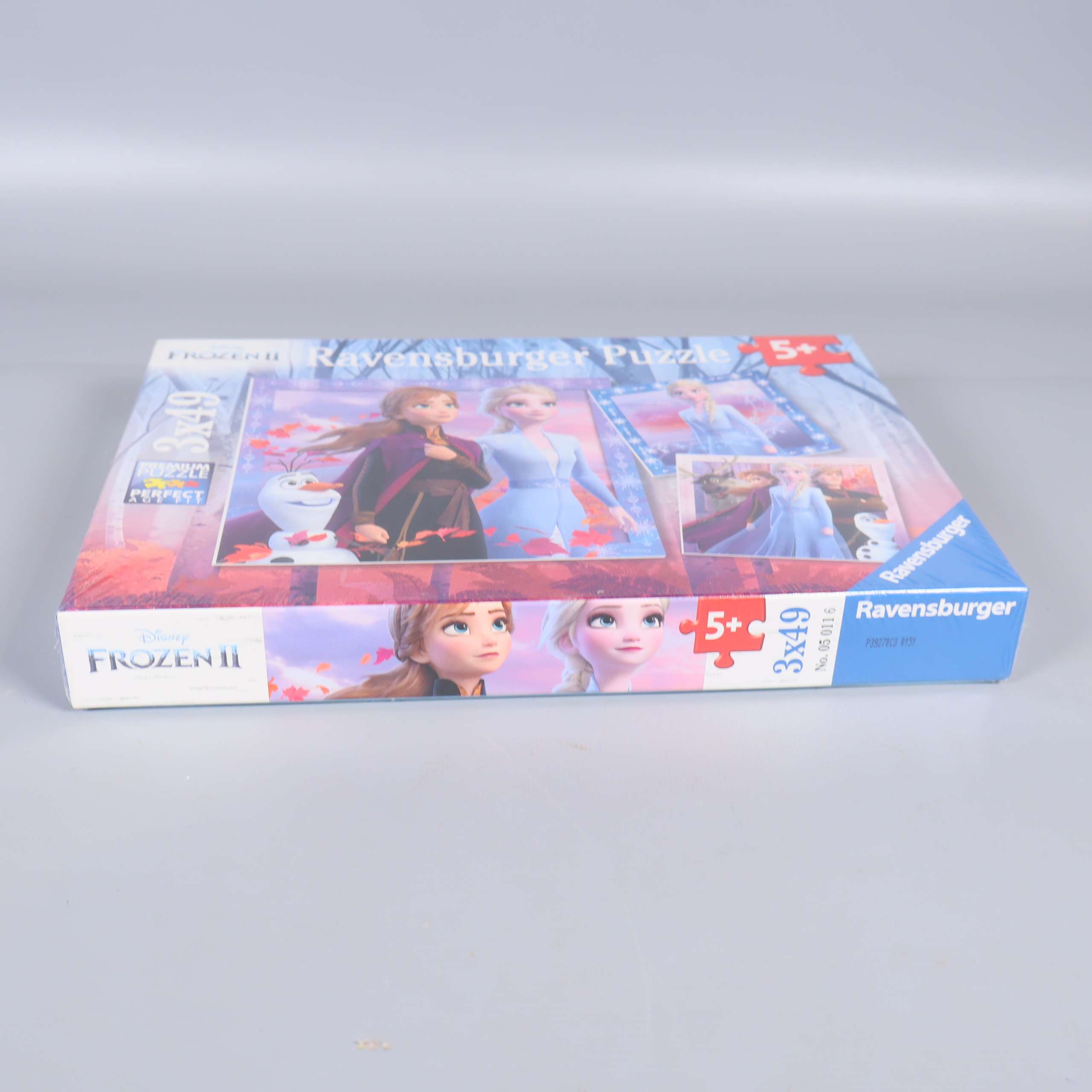 Fint pussel med färgglada motiv från Frozen och välkända karaktärer som Anna, Elsa och Olaf. Setet innehåller tre olika pussel med 49 bitar vardera och rekommenderas från 5 år. Klassisk rektangulär box från Ravensburger med robust känsla och tydliga illustrationer på framsidan.