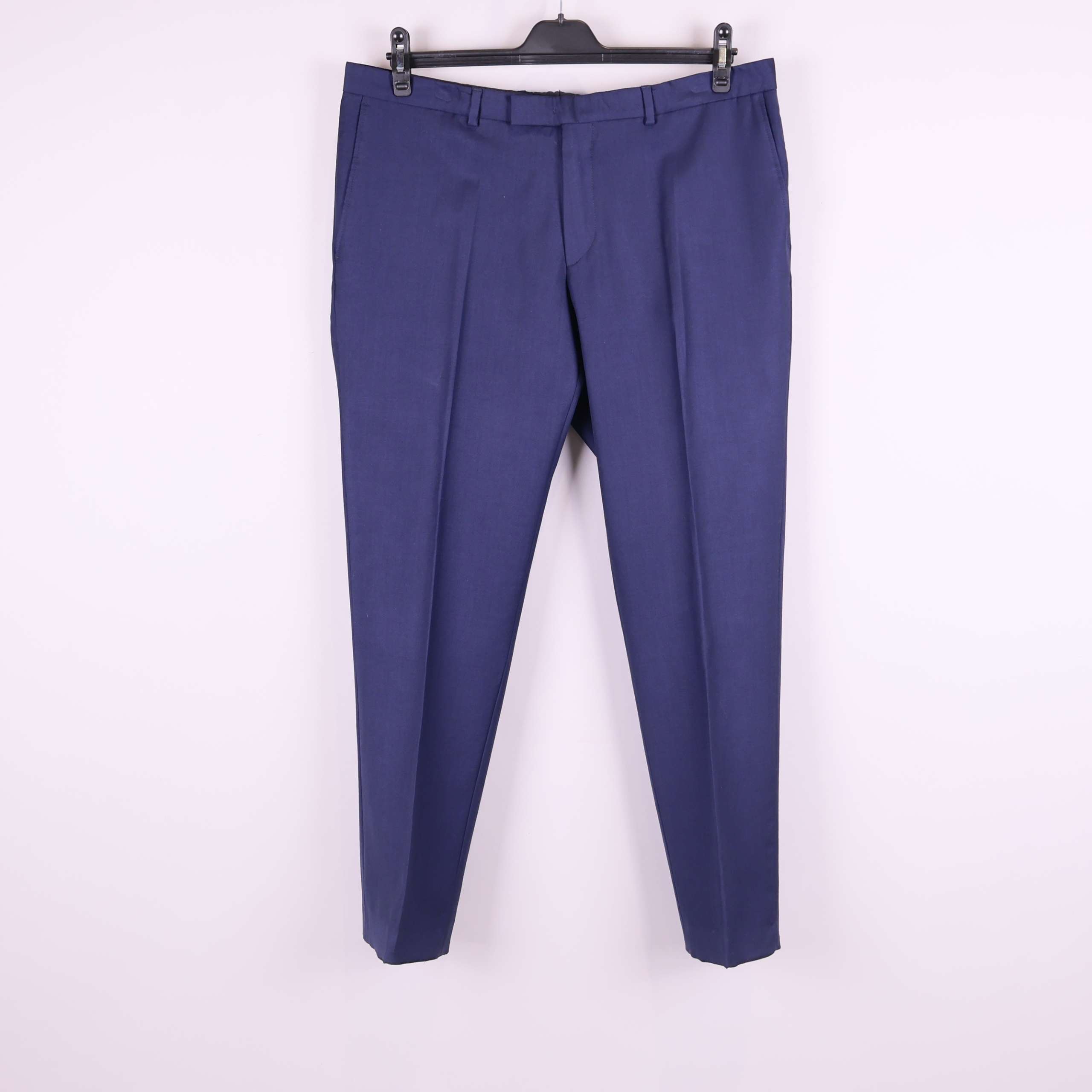 Snygg tvådelad kostym med kavaj och byxor i stilren blå nyans. Kavajen har två knappar och klassisk passform medan byxorna är raka med pressveck. Tydlig finish och tidlös look gör denna kostym till ett perfekt plagg för en finare känsla oavsett tillfälle. Snygga knappdetaljer ger en extra touch av elegans.