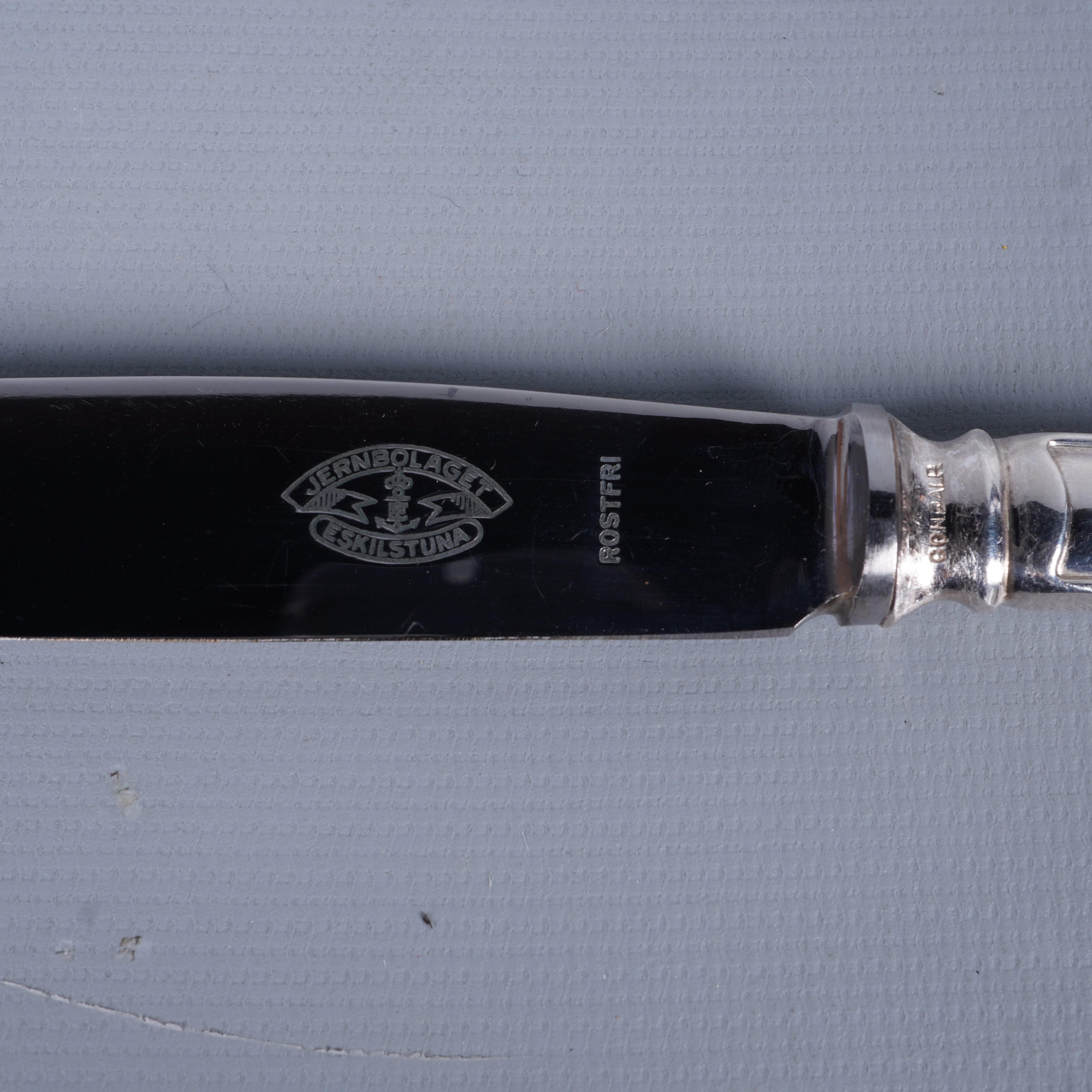 Jernbolaget Eskilstuna Bestickset i nysilver - 30 delar 199 kr Product variation Antal st Beskrivning Stilrent bestickset med traditionell form och dekorativ detalj vid skaftet. Setet innehåller både knivar och gafflar med silverfärgad finish, vilket ger en elegant känsla till dukningen. Perfekta för middagsbjudningar och vardag med tidlös stil. Visa all beskrivning Detaljer Mått ca:Gafflar längd: 20,5 cmKnivar längd: 24,5 cm Skick Gott skick Produkten har använts men är av fin kvalitet, det kan förekomma mindre förslitningar. Läs mer om hur vi bedömer Färg Silver Material Rostfritt stål Varumärke Jernbolaget Eskilstuna Produkten är unik och finns enbart som 1 st i lager. Fri frakt på alla köp över 990 kr. 14 dagars ångerrät.