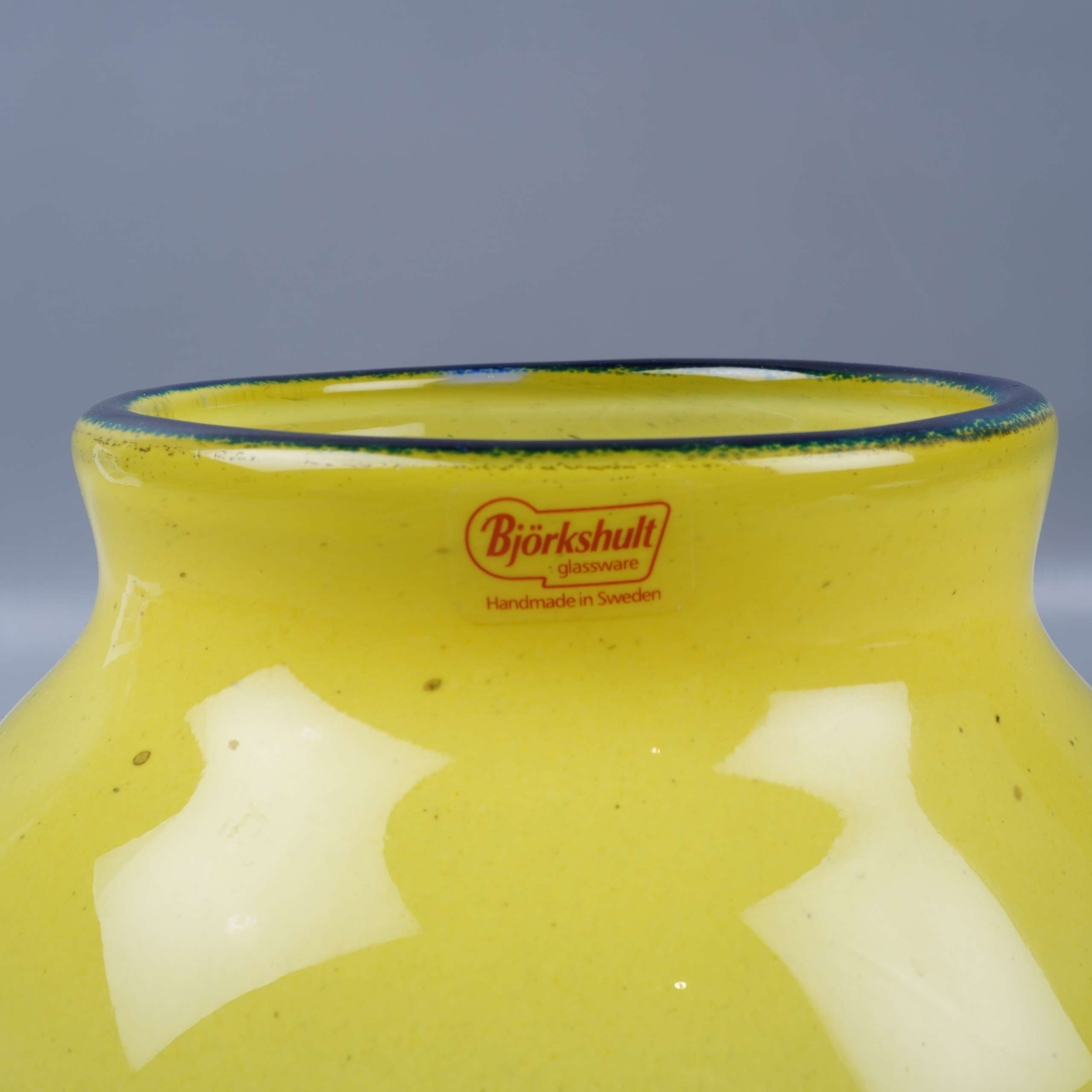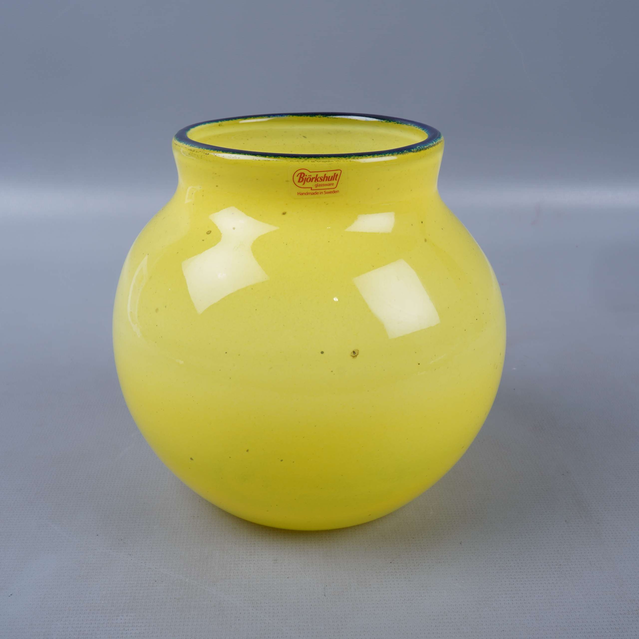 Björkshult Björkshult - Rund gul vas med blå kant 169 kr Product variation Antal st Beskrivning Elegant rund vas i klart gult glas med en blå kant högst upp. Den släta ytan och den färgstarka designen ger ett lekfullt och modernt intryck, perfekt som dekorationsdetalj för dig som vill ha en färgklick hemma. Visa all beskrivning Skick Gott skick Produkten har använts men är av fin kvalitet, det kan förekomma mindre förslitningar. Läs mer om hur vi bedömer Dimensions Höjd: ca 15cm, Bredd: ca 19cm, Öppning: ca 9cm Färg Gul Material Glas Varumärke Björkshult Produkten är unik och finns enbart som 1 st i lager. Fri frakt på alla köp över 990 kr. 14 dagars ångerrät.