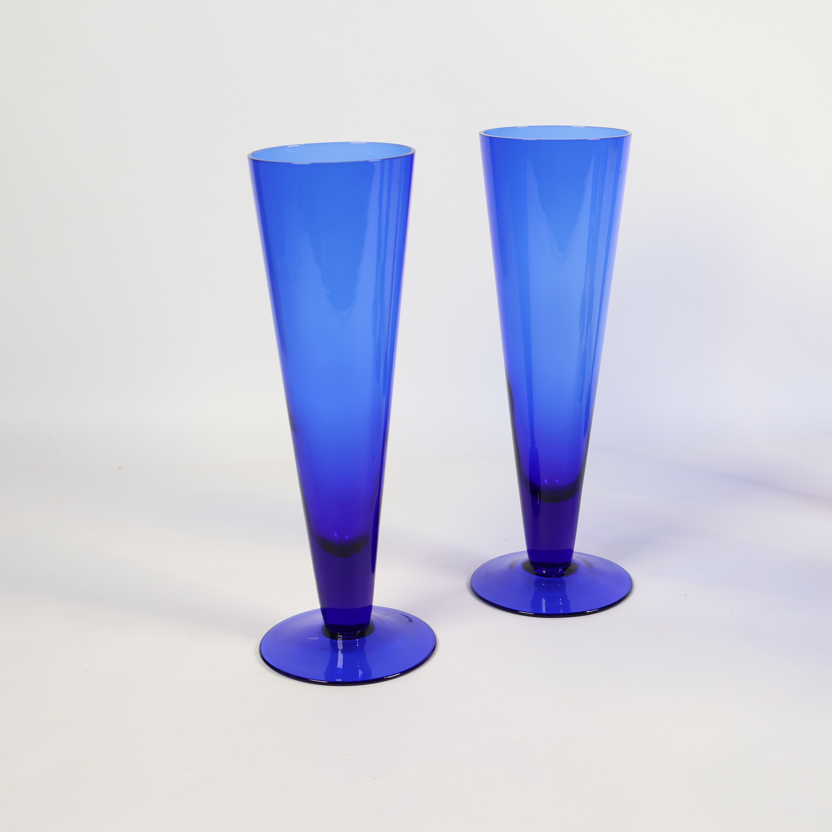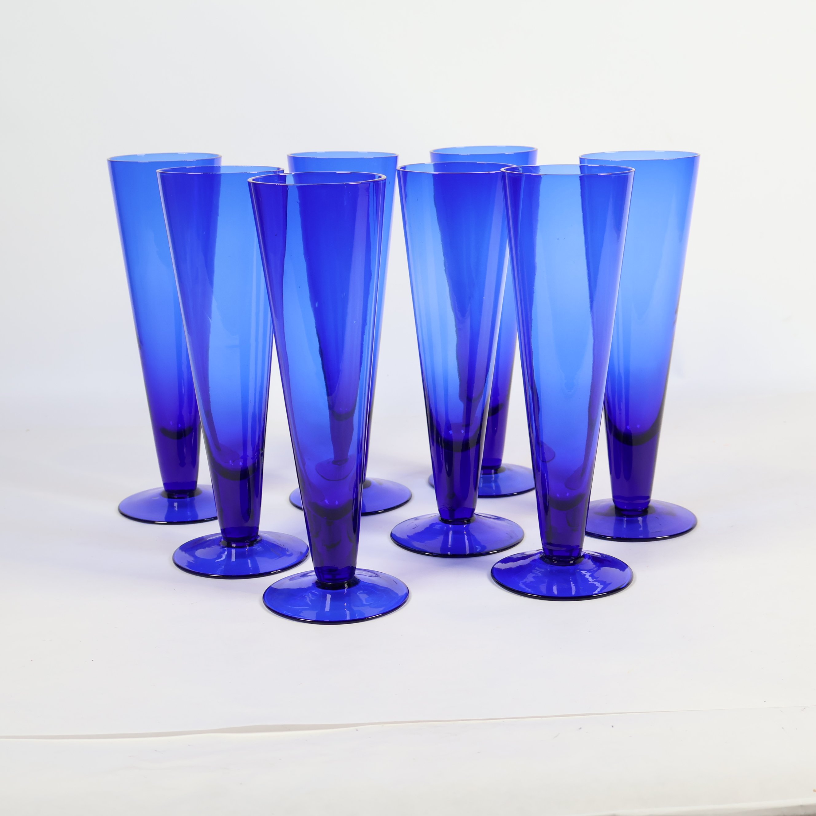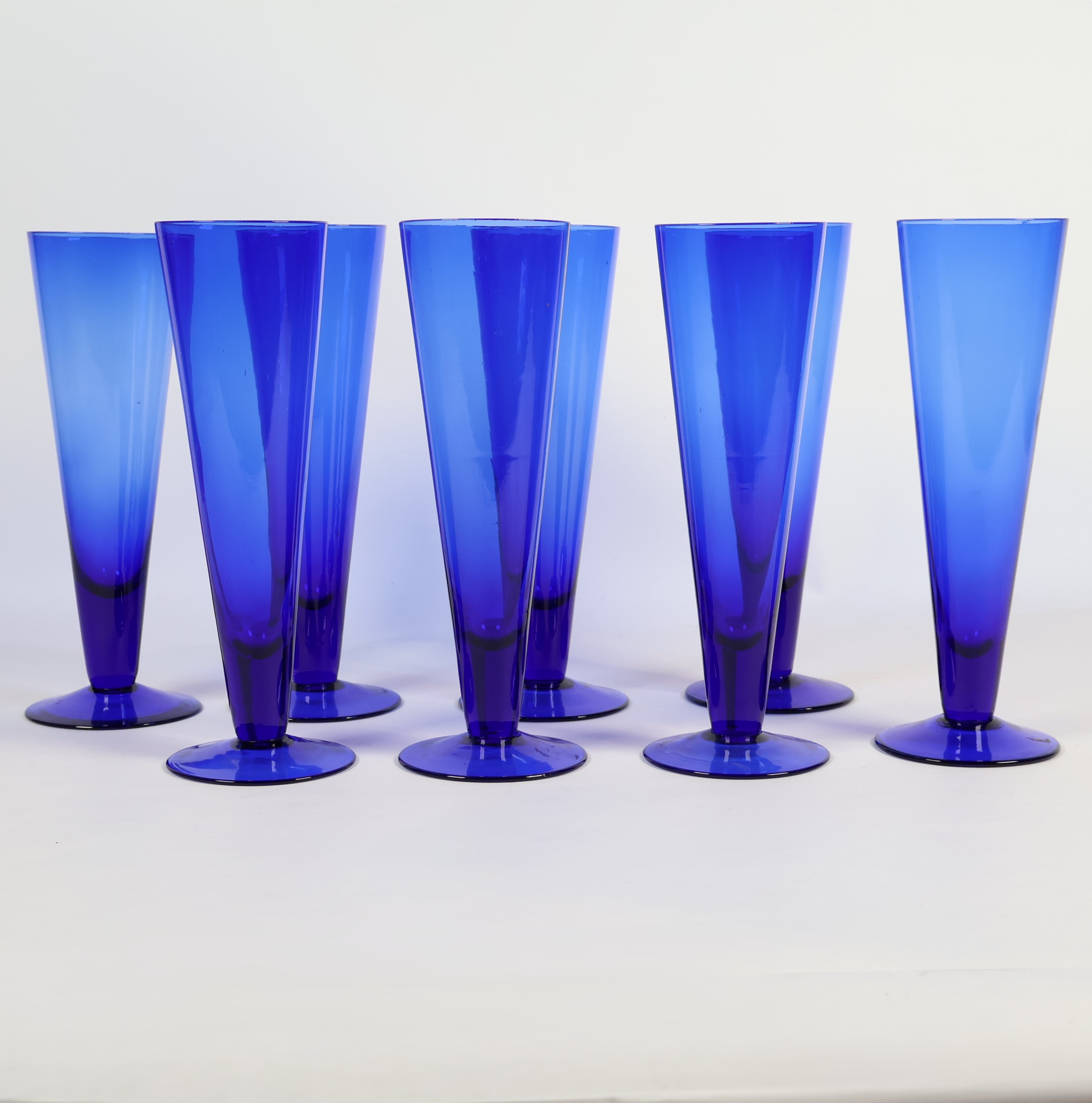 Blå höga glasbägare 8 st 259 kr Product variation Antal st Beskrivning Snygga blå glasbägare med hög, konisk form och stabil fot. Glaset ger en modern och färgstark känsla som passar lika bra till vardag som fest. Skick Mycket gott skick Plagget eller prylen är sparsamt använd, är av fin kvalitet och ska inte ha några skador eller förslitningar. Läs mer om hur vi bedömer Dimensions Höjd: ca 24 cm, Diameter: ca 7 cm Färg Blå Material Glas Produkten är unik och finns enbart som 1 st i lager. Fri frakt på alla köp över 990 kr. 14 dagars ångerrät.