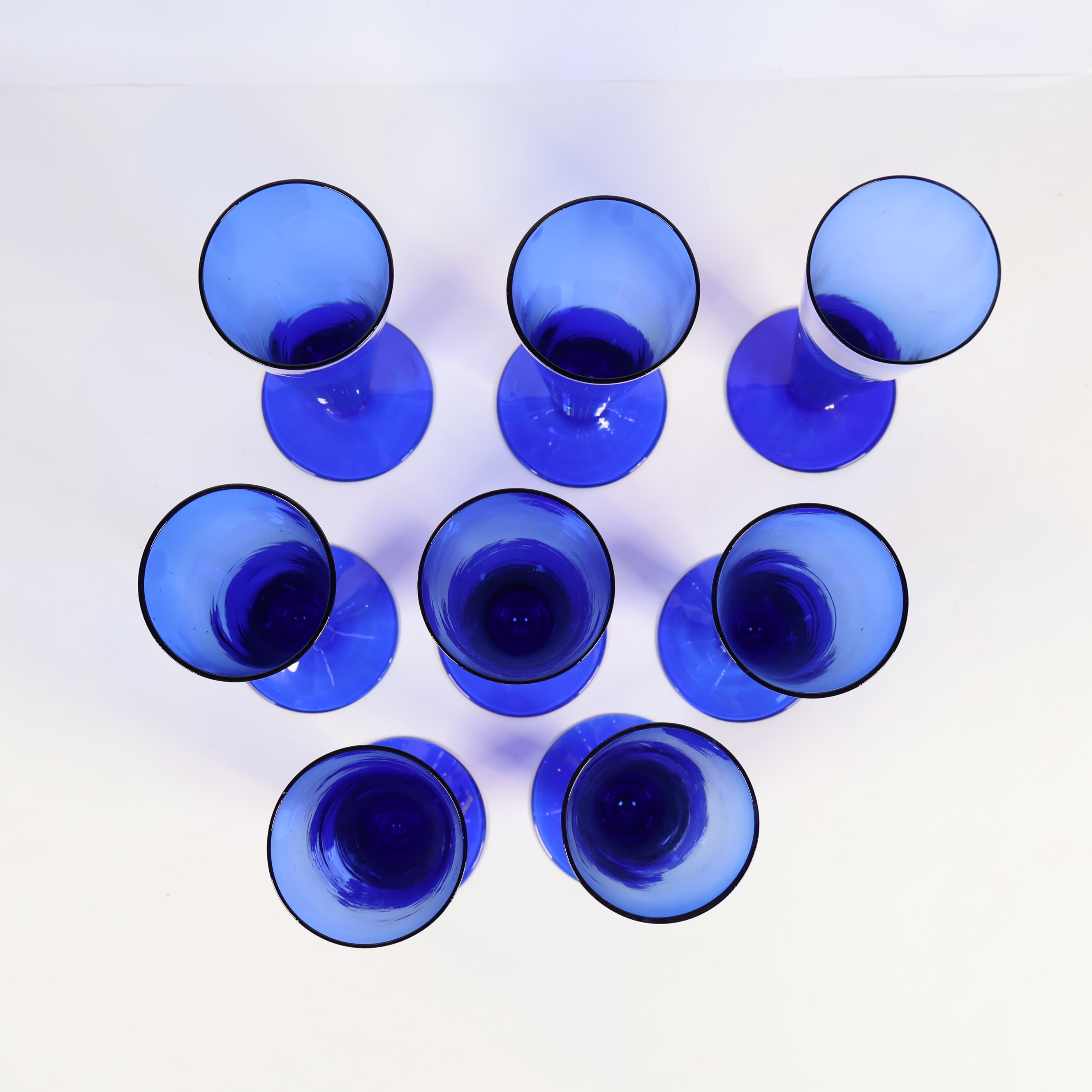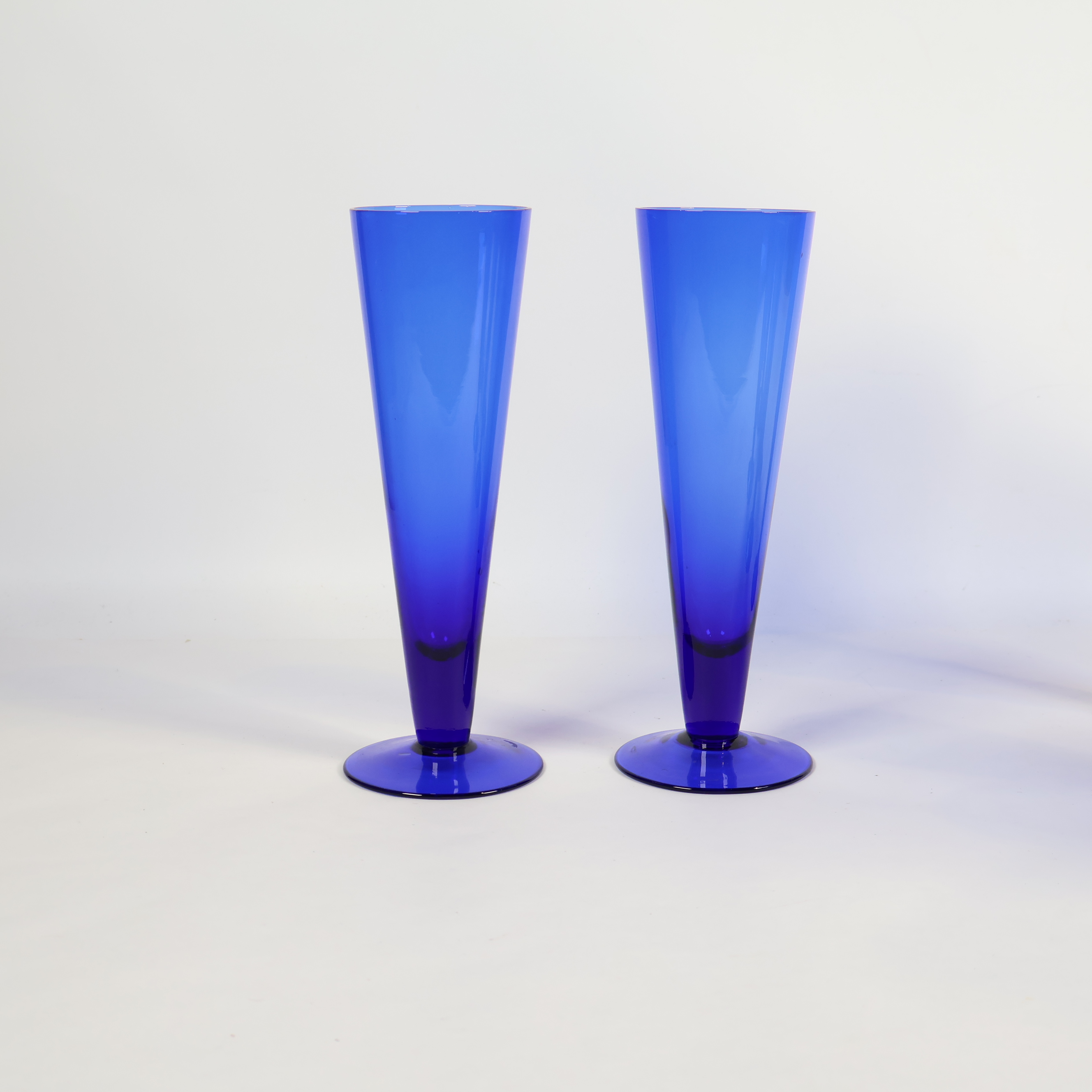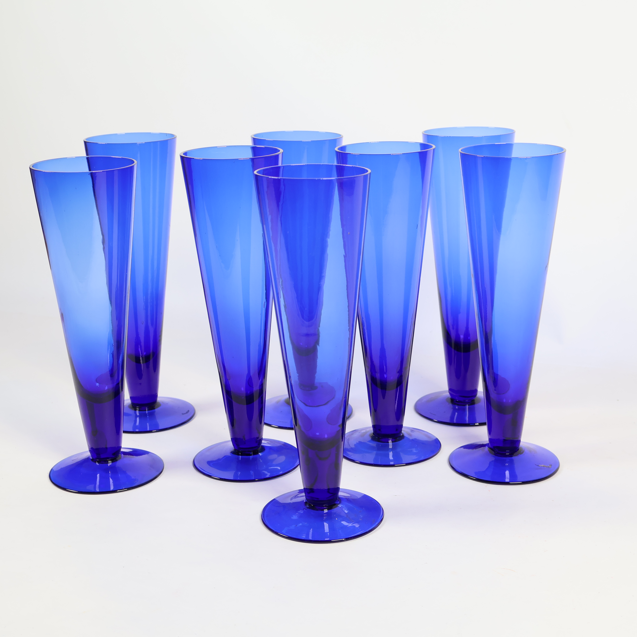 Blå höga glasbägare 8 st 259 kr Product variation Antal st Beskrivning Snygga blå glasbägare med hög, konisk form och stabil fot. Glaset ger en modern och färgstark känsla som passar lika bra till vardag som fest. Skick Mycket gott skick Plagget eller prylen är sparsamt använd, är av fin kvalitet och ska inte ha några skador eller förslitningar. Läs mer om hur vi bedömer Dimensions Höjd: ca 24 cm, Diameter: ca 7 cm Färg Blå Material Glas Produkten är unik och finns enbart som 1 st i lager. Fri frakt på alla köp över 990 kr. 14 dagars ångerrät.