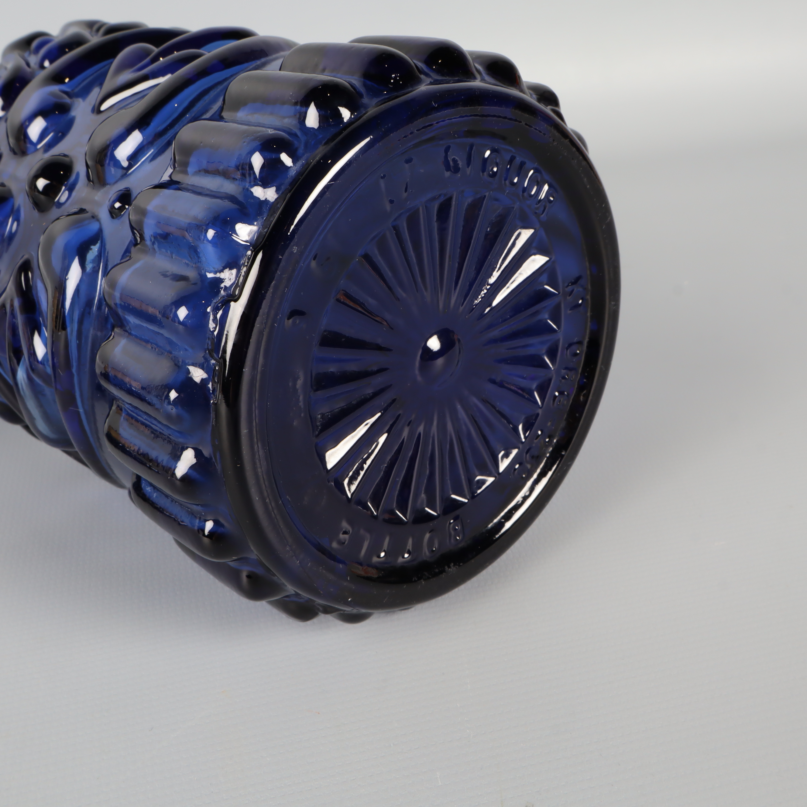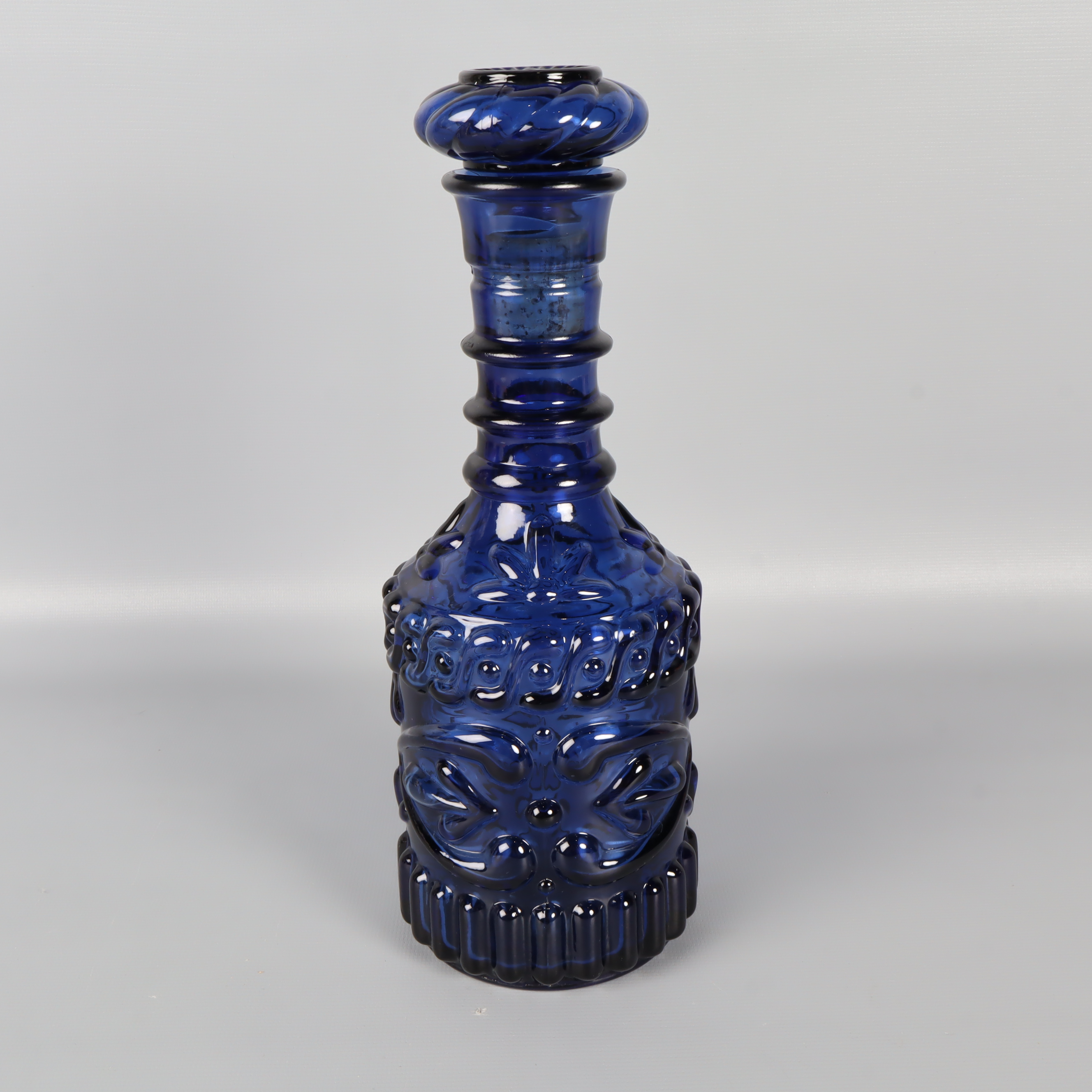 Blå likörflaska i glas 399 kr Product variation Antal st Beskrivning Elegant blå likörflaska med detaljerat mönster och matchande kork. Diameter: 9 cm i bottenHöjd: 28 cm Visa all beskrivning Detaljer Diameter: 9 cm i bottenHöjd: 28 cm Skick Mycket gott skick Produkten är sparsamt använd, är av fin kvalitet och ska inte ha några skador eller förslitningar. Läs mer om hur vi bedömer Färg Mörkblå Material Glas Produkten är unik och finns enbart som 1 st i lager. Fri frakt på alla köp över 990 kr. 14 dagars ångerrät.
