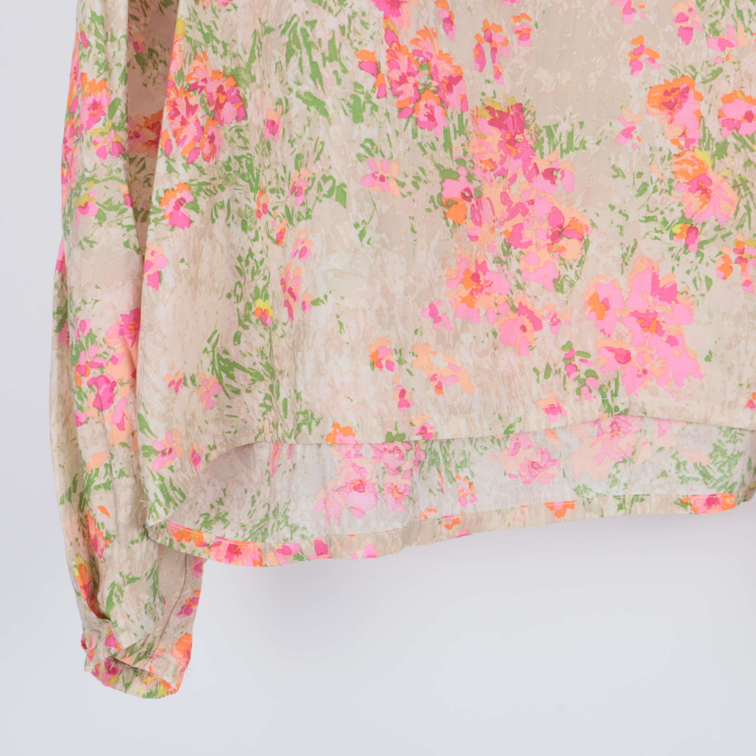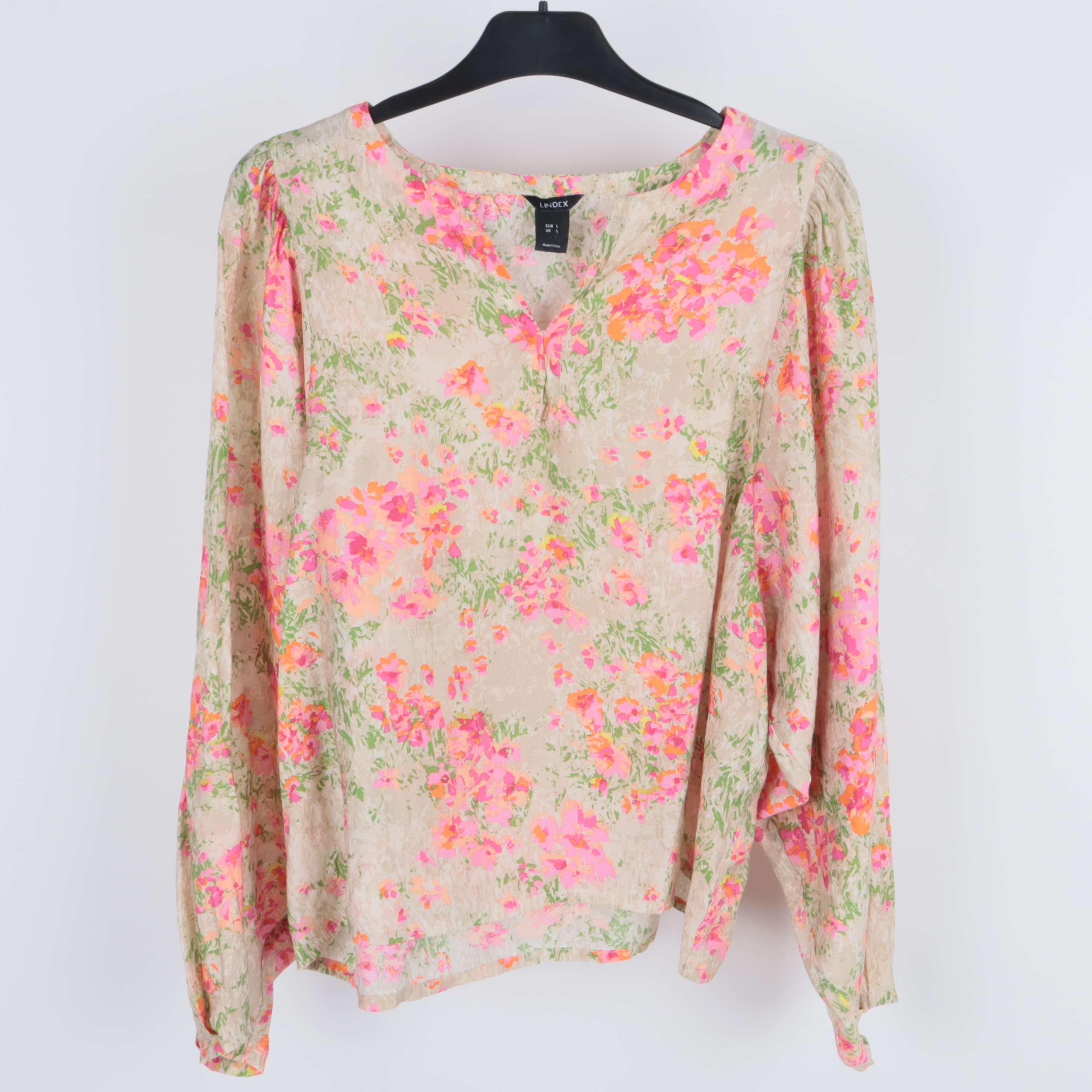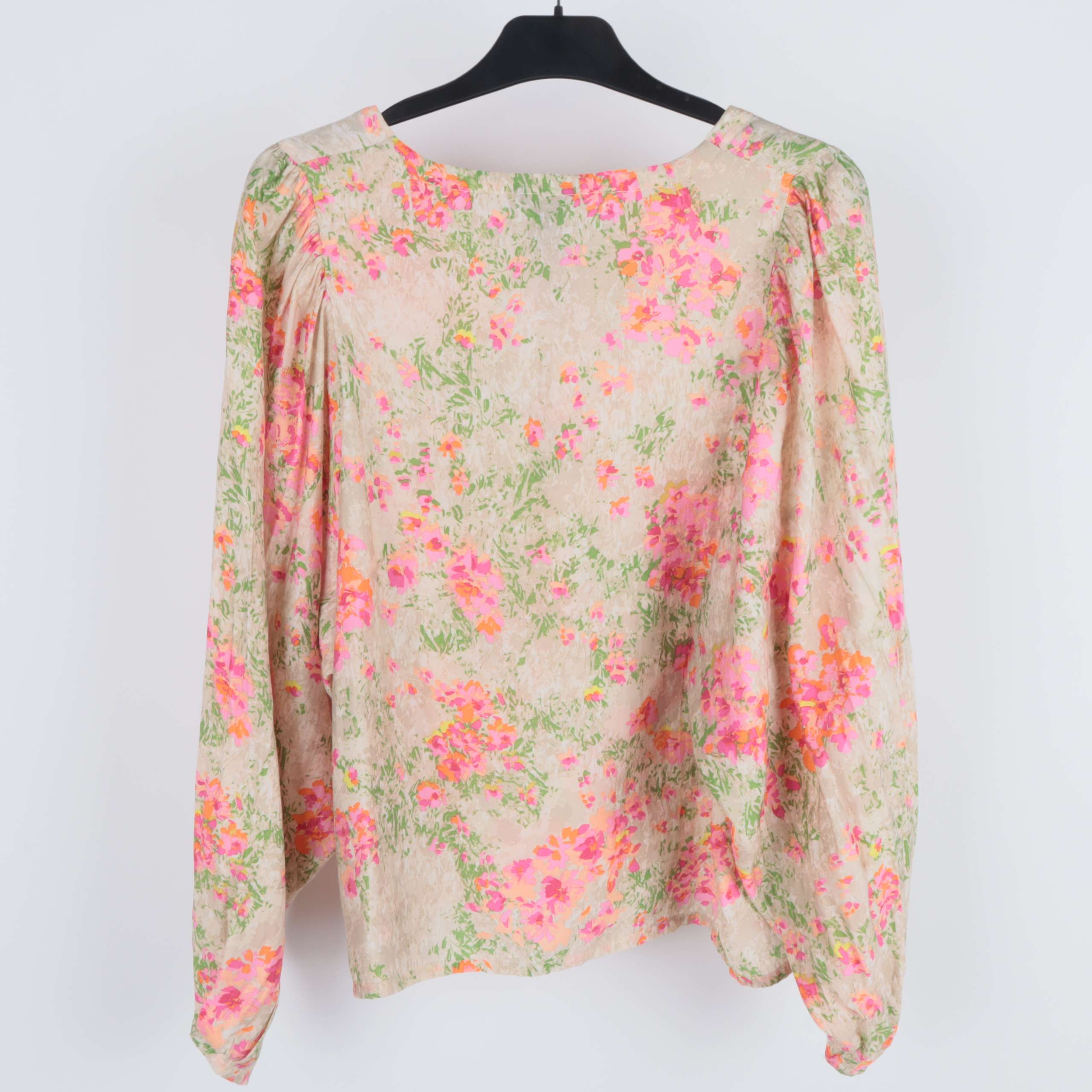 Elegant blus med ett vackert blommigt mönster i ljusa och glada färger. Den har en avslappnad passform med rund hals och lätt pösiga ärmar för en avslappnad, chic look. Materialblandningen ger en mjuk och behaglig känsla mot huden.