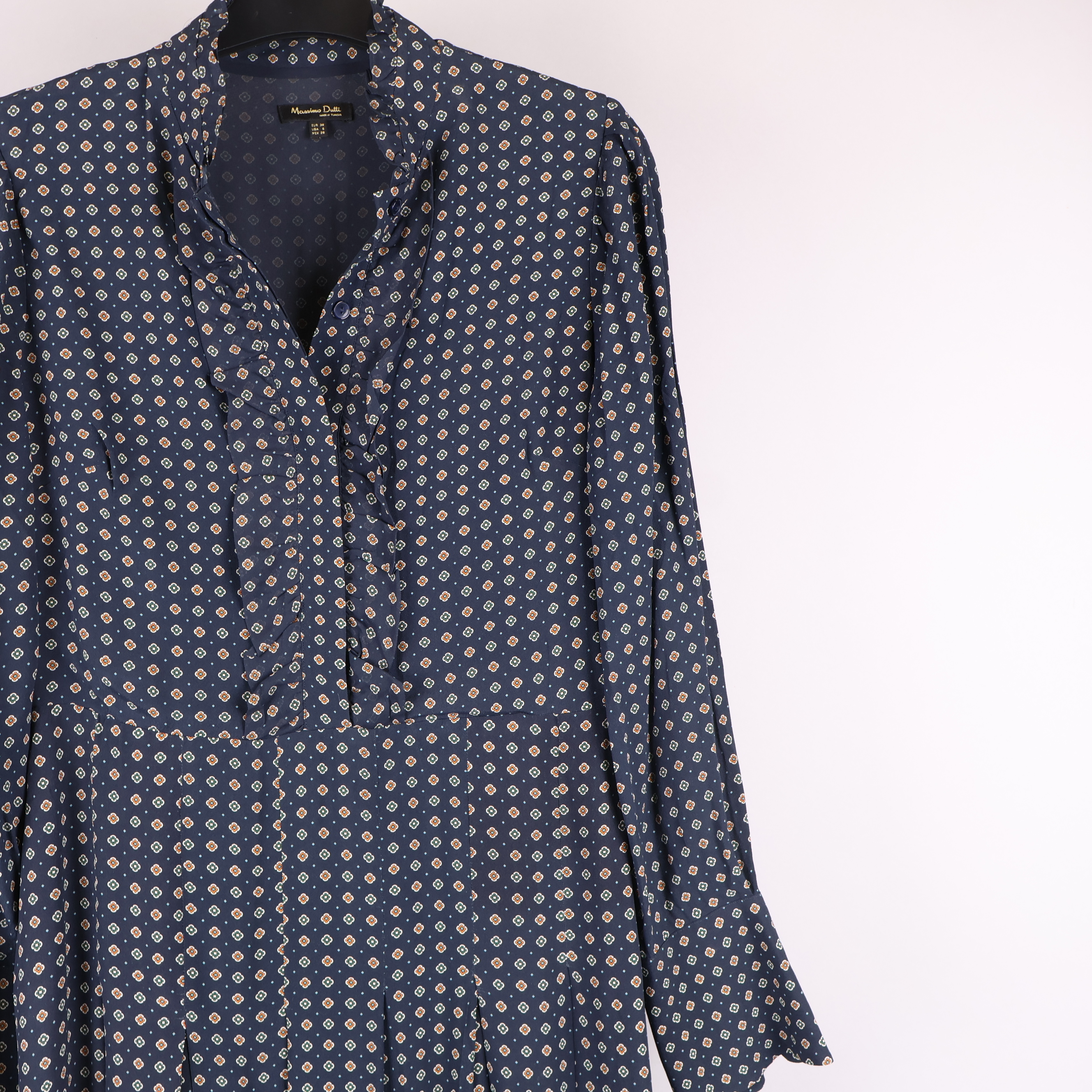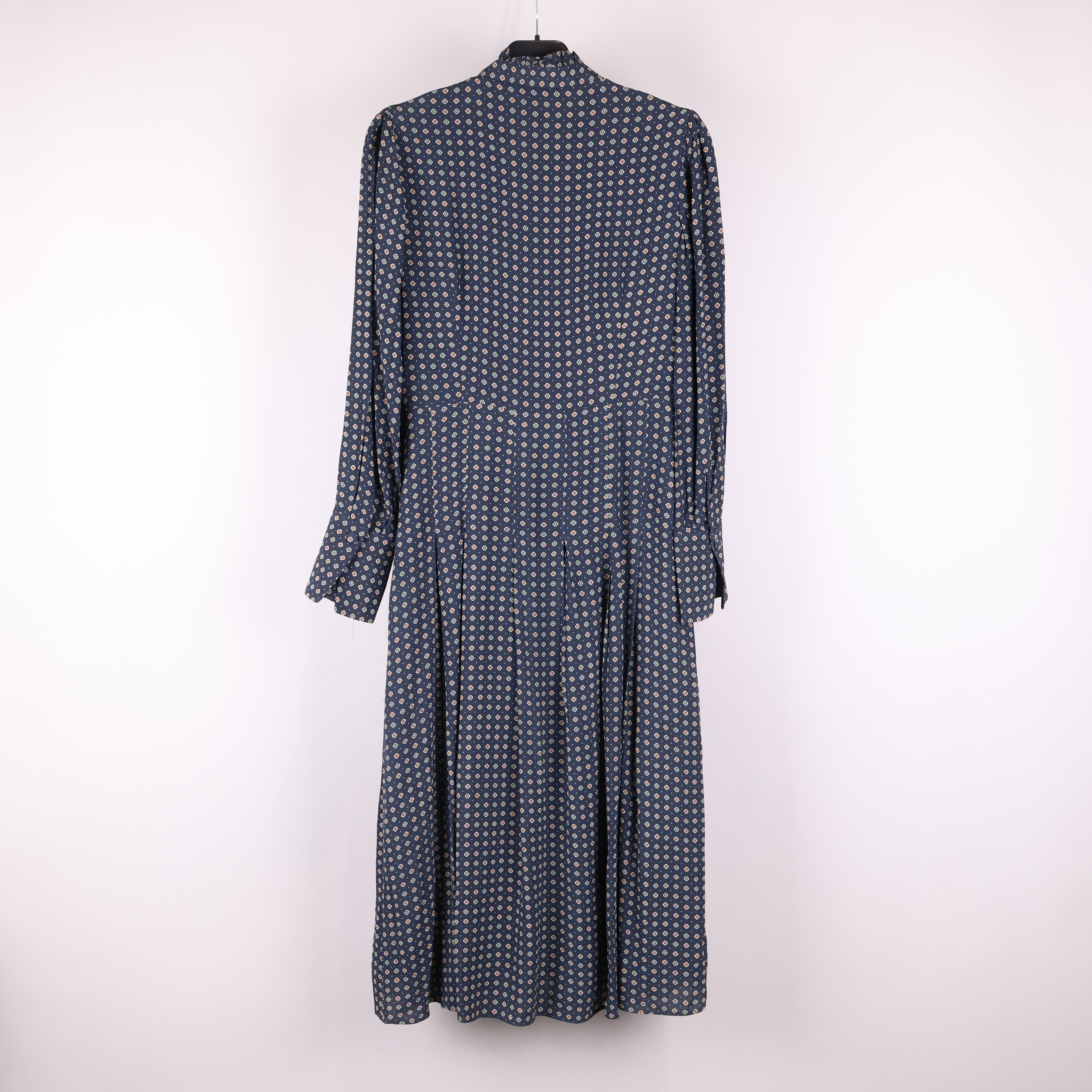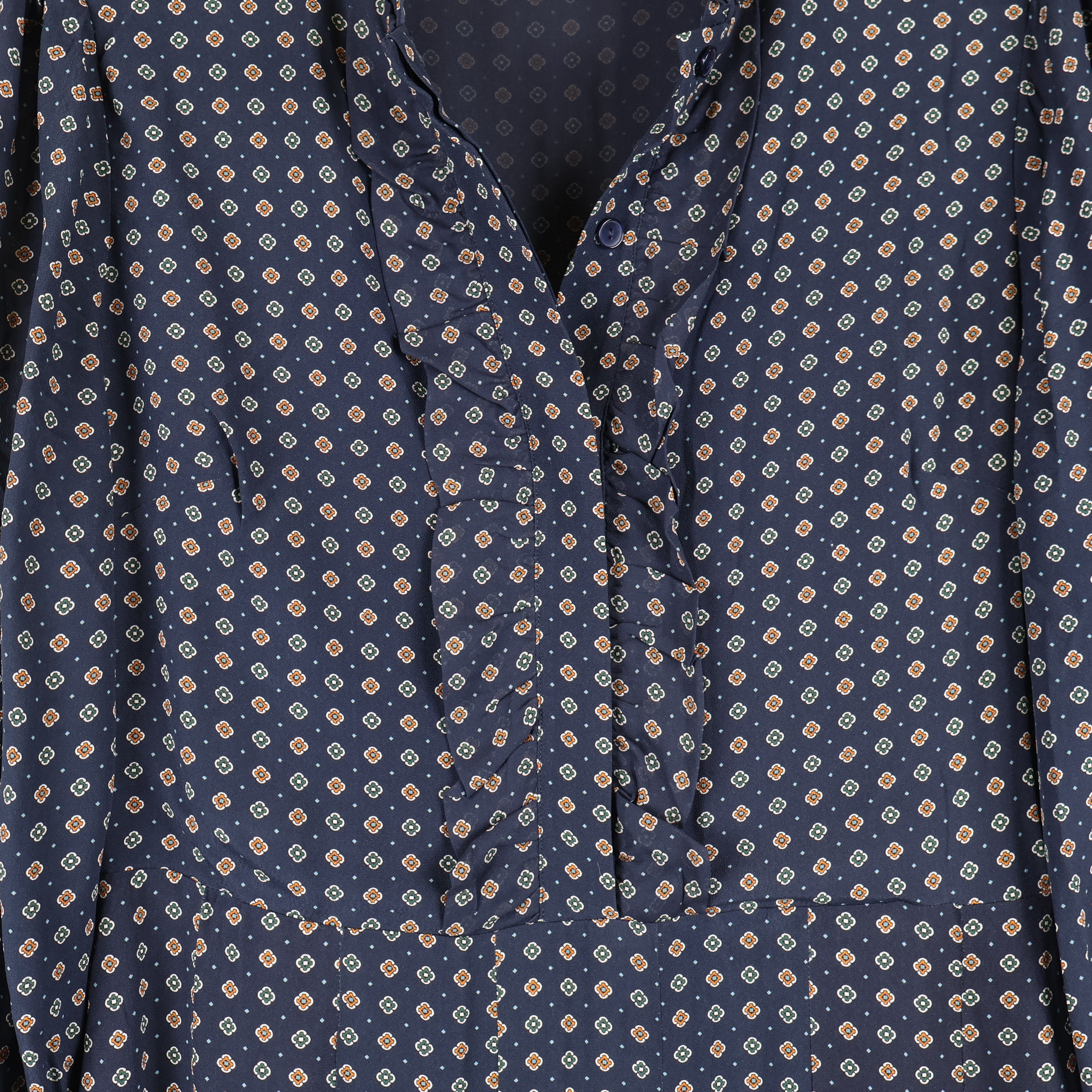 Elegant långklänning med blommigt mönster och diskreta volanger för en romantisk känsla. Tillverkad i 100% polyester för att ge en mjuk och behaglig upplevelse. Klänningen har en stilren design med knappar framtill och långa ärmar som ger ett sofistikerat uttryck.