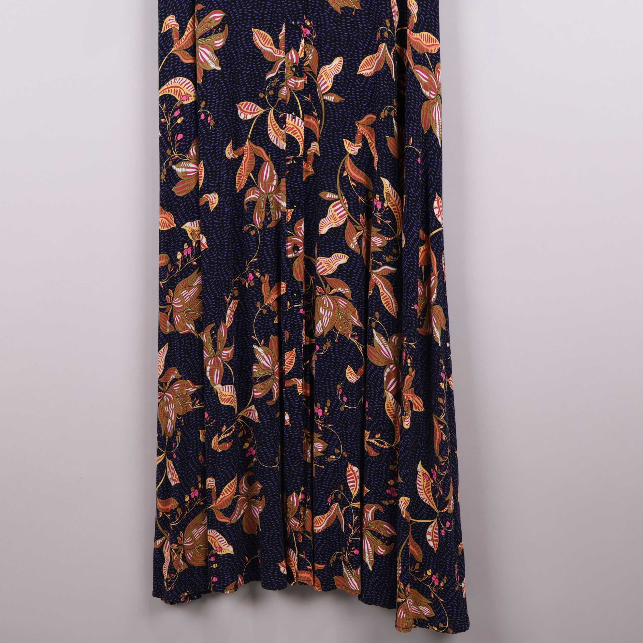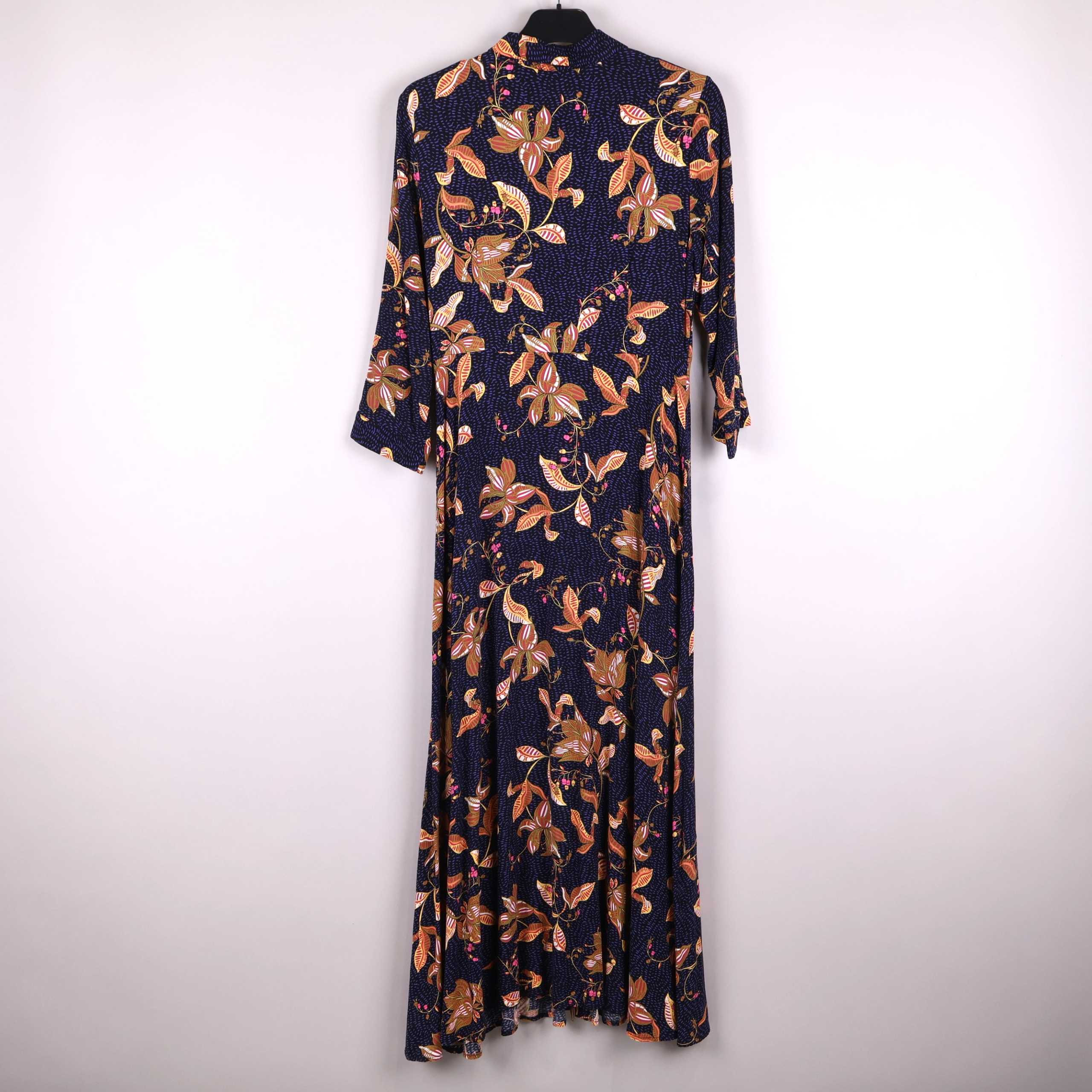 Maxiklänning med ett fylligt blommönster i vintage vibe och volangdetaljer i ärmslut och nederkant. Klänningen har ledig passform, snygga volanger vid ärmsluten och en mjuk känsla tack vare viskostyget. Rund halsringning och knapp i nacken ger en stilren finish. Perfekt för dig som gillar en romantisk men modern look.