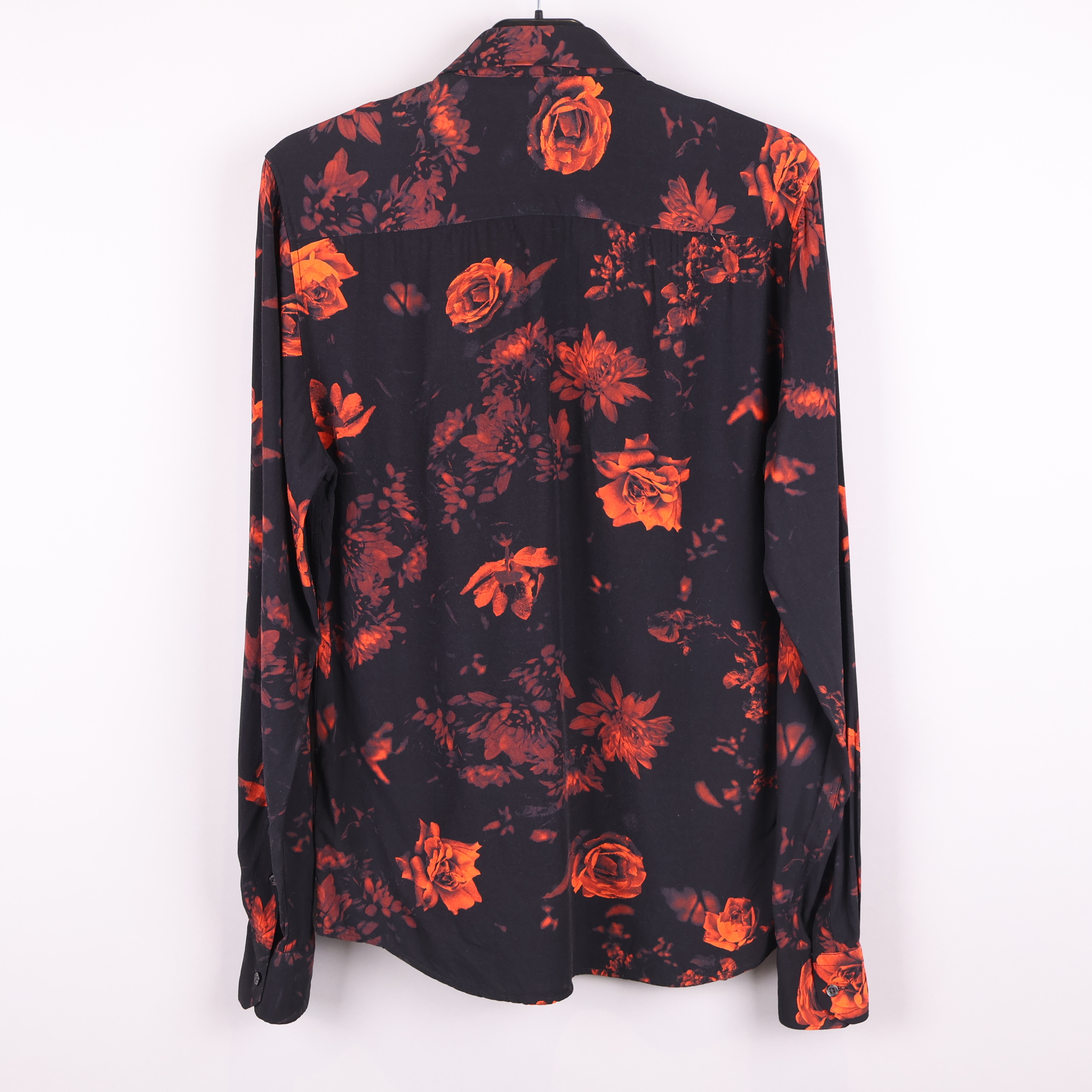 Skjorta med blommigt mönster i varma nyanser mot en mörk bakgrund. Skjortan har en klassisk krage och långa ärmar med manschettknappar för en sofistikerad touch.