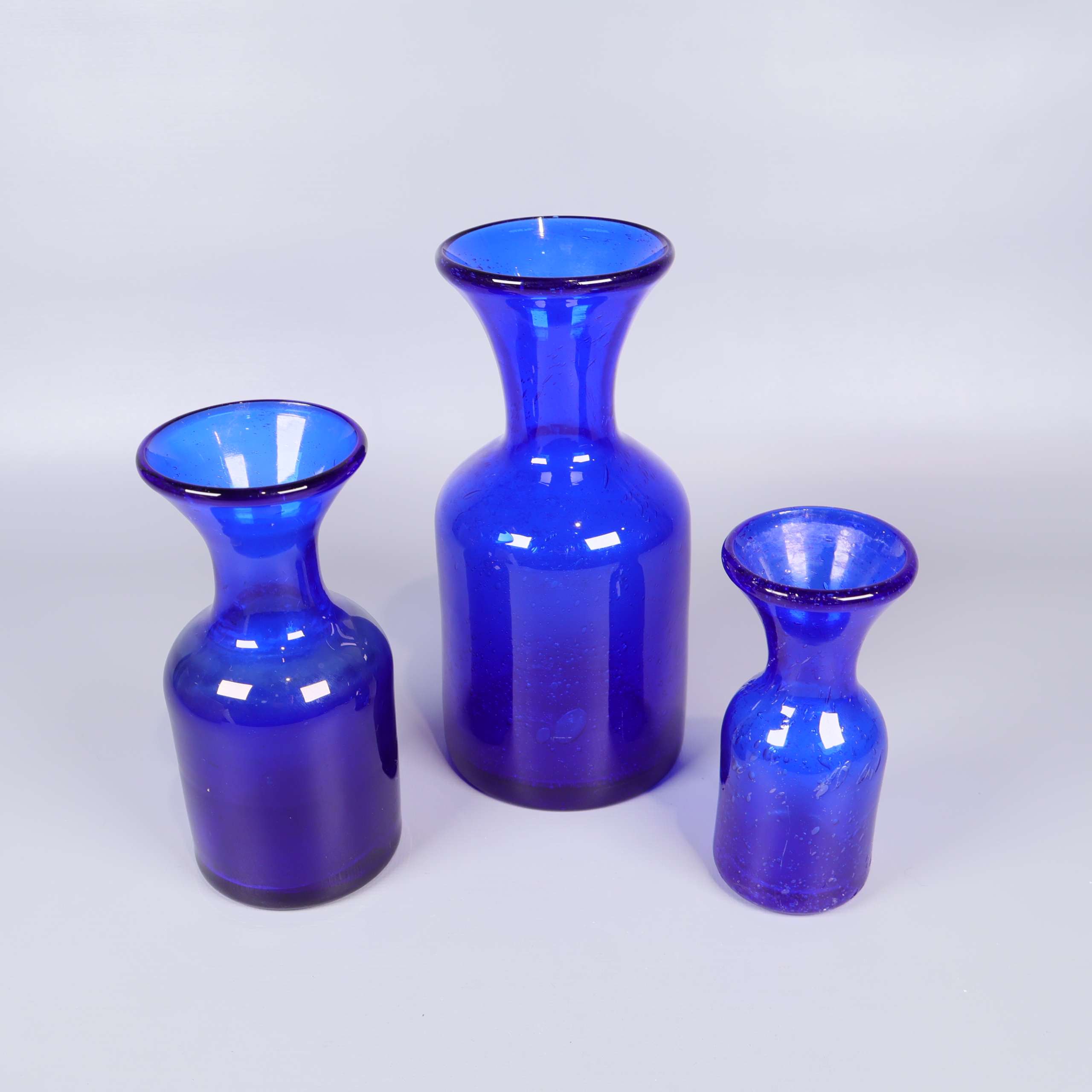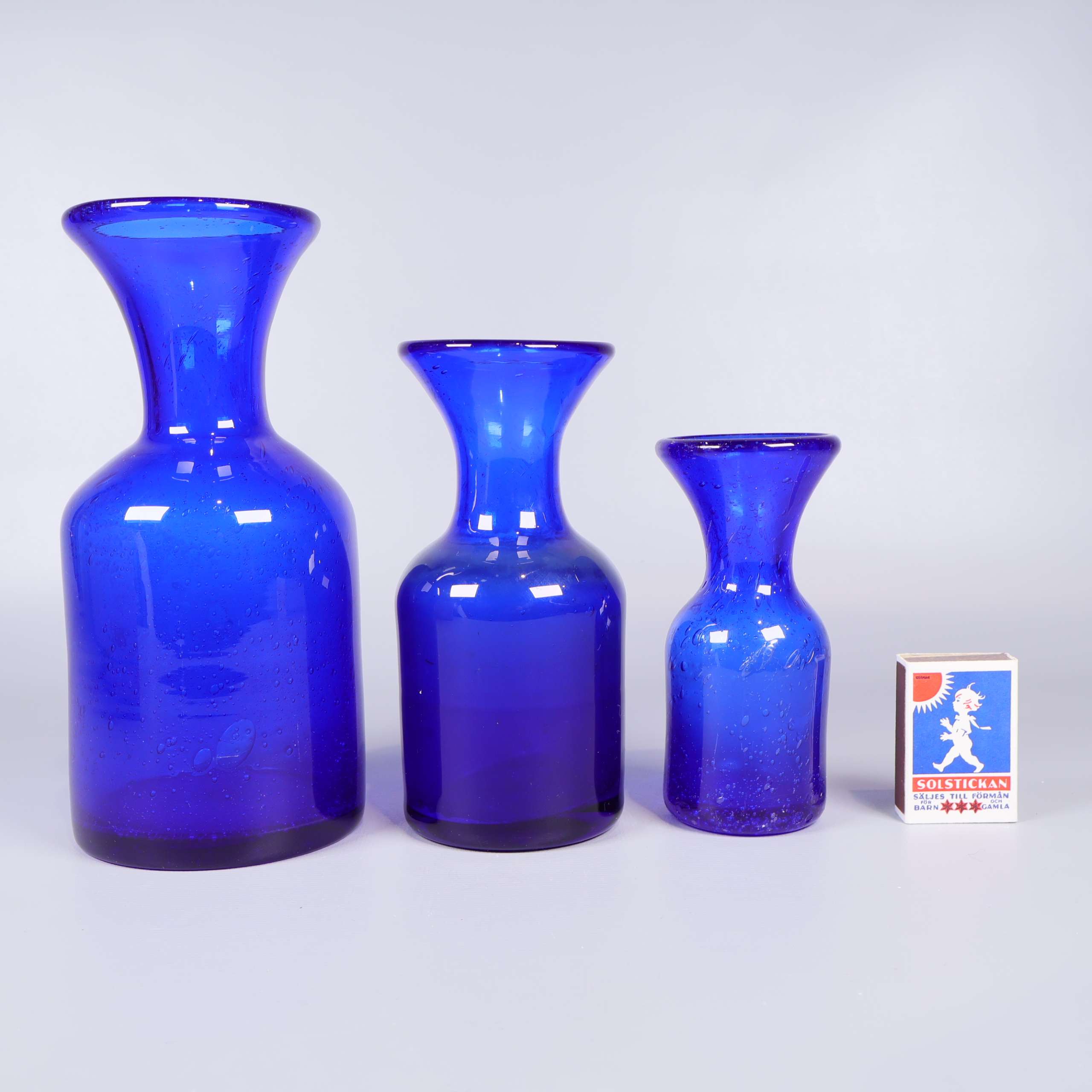 Boda Boda - Erik Höglund - 3st Vaser i Glas 959 kr Product variation Antal st Beskrivning Ett vackert set med tre vaser i intensivt blått glas av Erik Höglund för Boda. Den minsta har skador på ena sidan. Visa all beskrivning Skick Gott skick Produkten har använts men är av fin kvalitet, det kan förekomma mindre förslitningar. Läs mer om hur vi bedömer Dimensions Höjd: 12,5-20 cm Diameter: 6-9,5 cm Färg Blå Material Glas Varumärke Boda Produkten är unik och finns enbart som 1 st i lager. Fri frakt på alla köp över 990 kr. 14 dagars ångerrät.