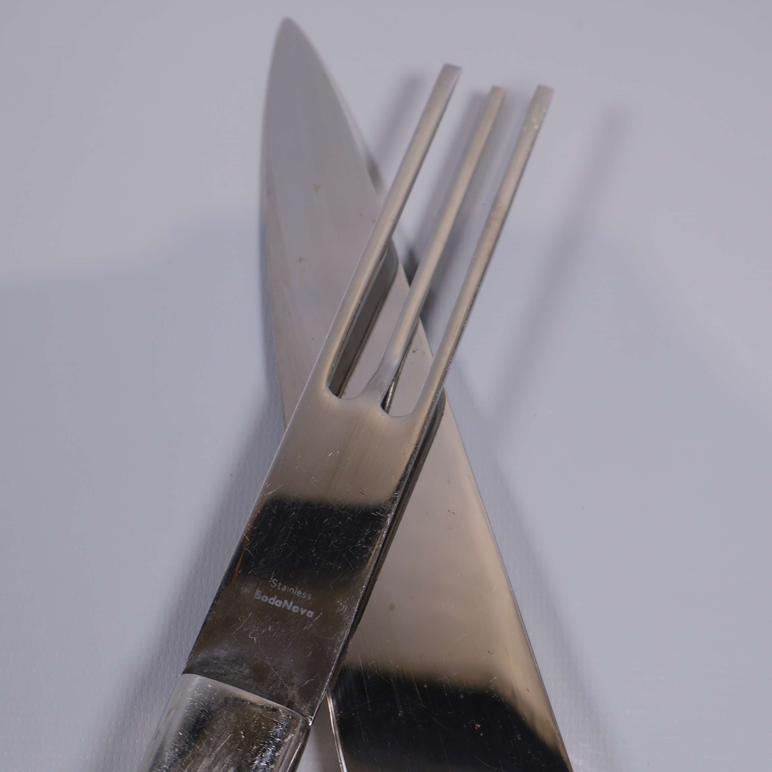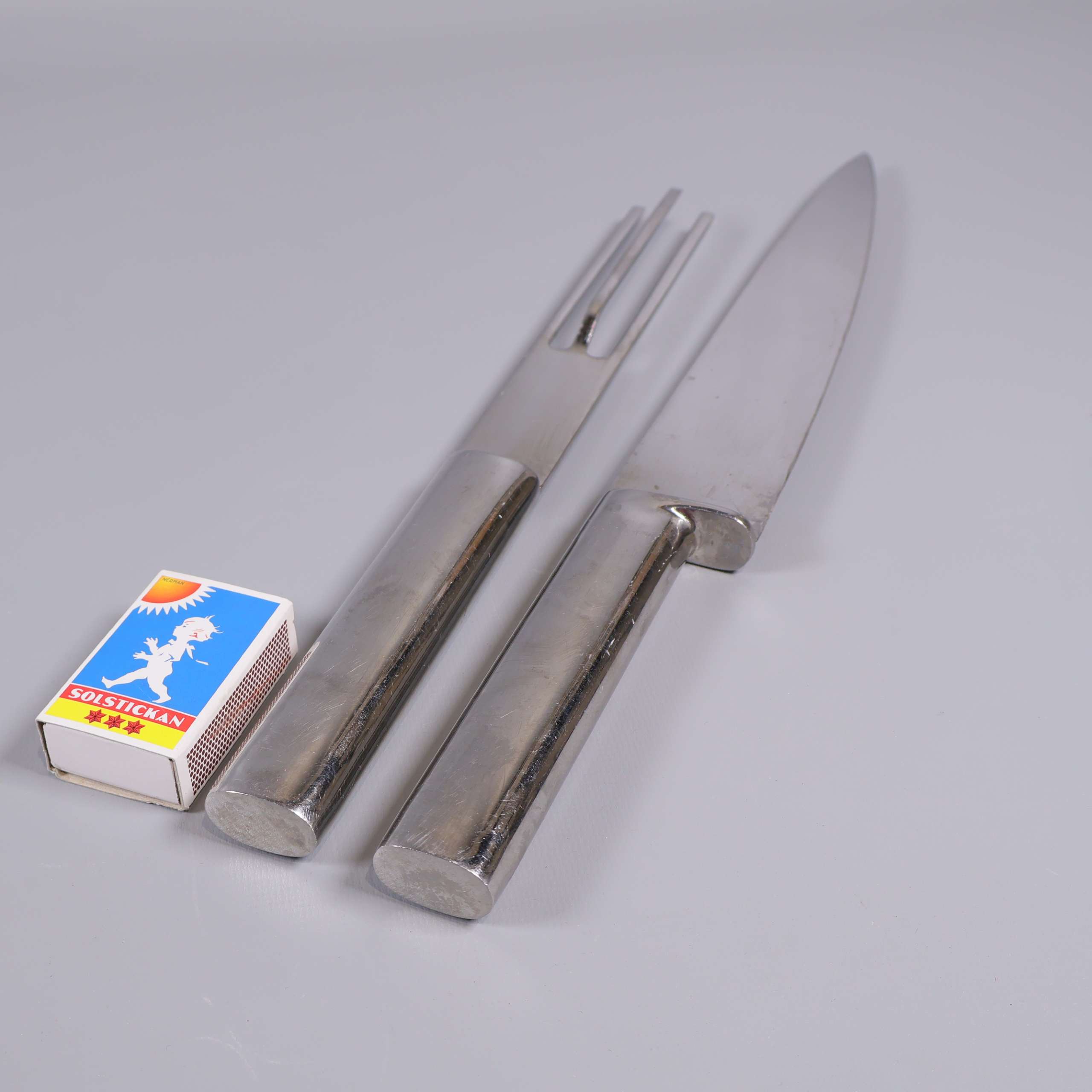 Boda Nova Boda Nova - Trancherset i rostfritt stål 299 kr Product variation Antal st Beskrivning Stilrent trancherset från Boda Nova i blankt rostfritt stål, bestående av en kniv och en gaffel med robusta, raka handtag och tidlös design. Ytan har repor som visar användning. Visa all beskrivning Detaljer Längd: 30-37 cm Skick Använt skick Produkten har blivit använd och kan ha slitits eller ha mindre skador Läs mer om hur vi bedömer Dimensions Längd: ca 30-37cm Färg Silver Material Rostfritt stål Varumärke Boda Nova Produkten är unik och finns enbart som 1 st i lager. Fri frakt på alla köp över 990 kr. 14 dagars ångerrät.