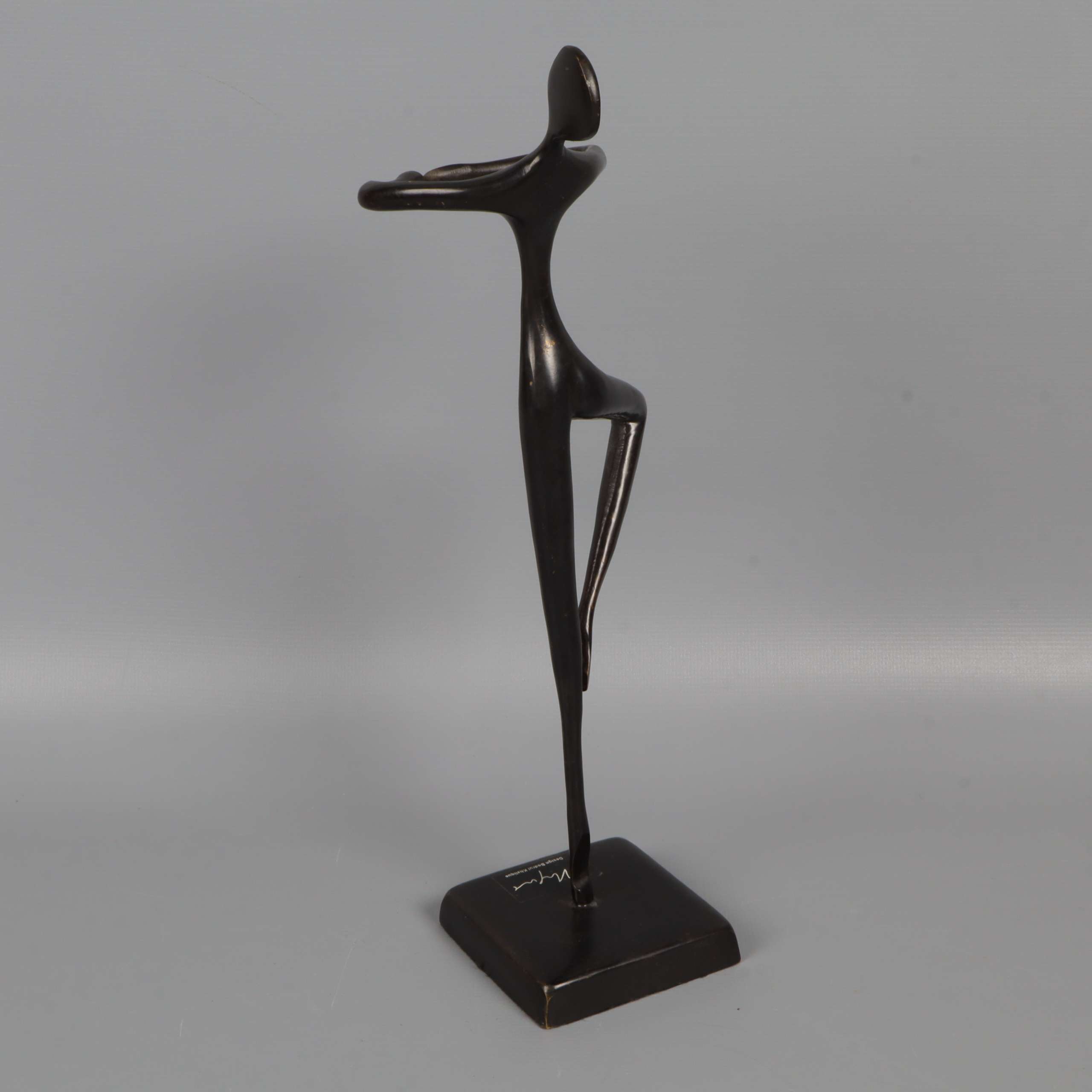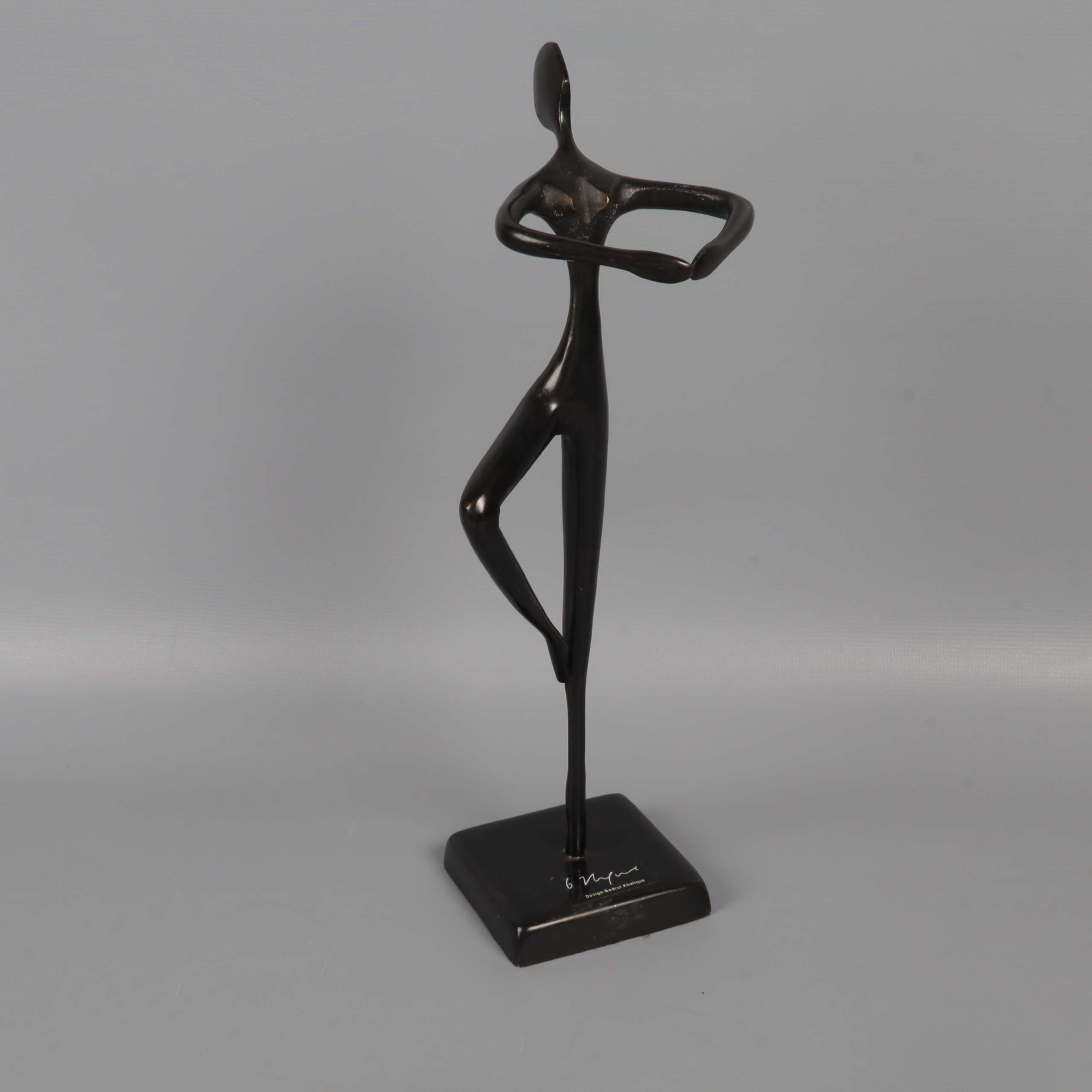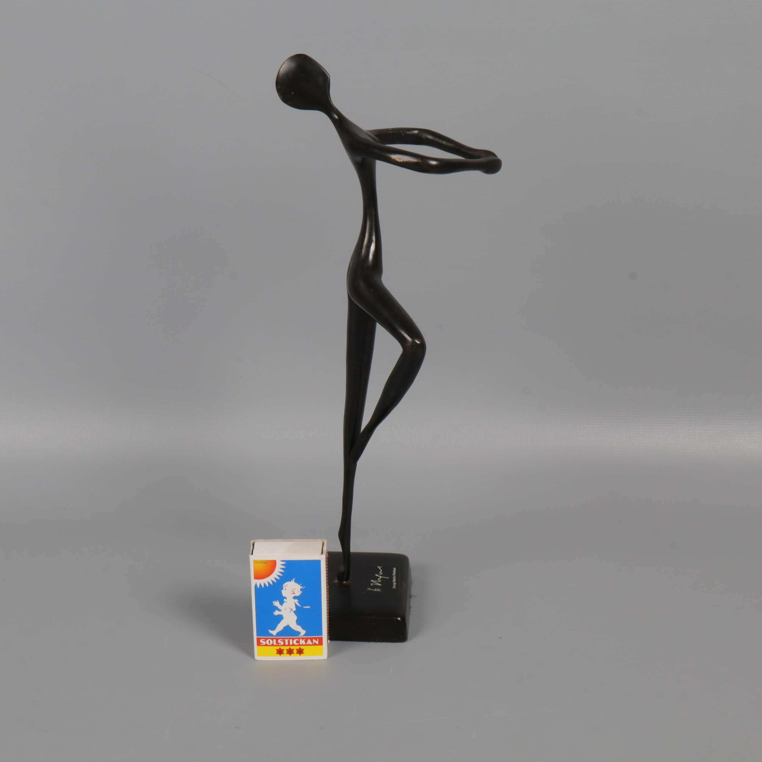 Elegant och stilren skulptur i mörk finish med abstrakt dansande figur. Figurinen har ett minimalistiskt formspråk och står stabilt på en fyrkantig fot. Passar perfekt som dekorativ inredningsdetalj och ger ett konstnärligt uttryck till rummet.
