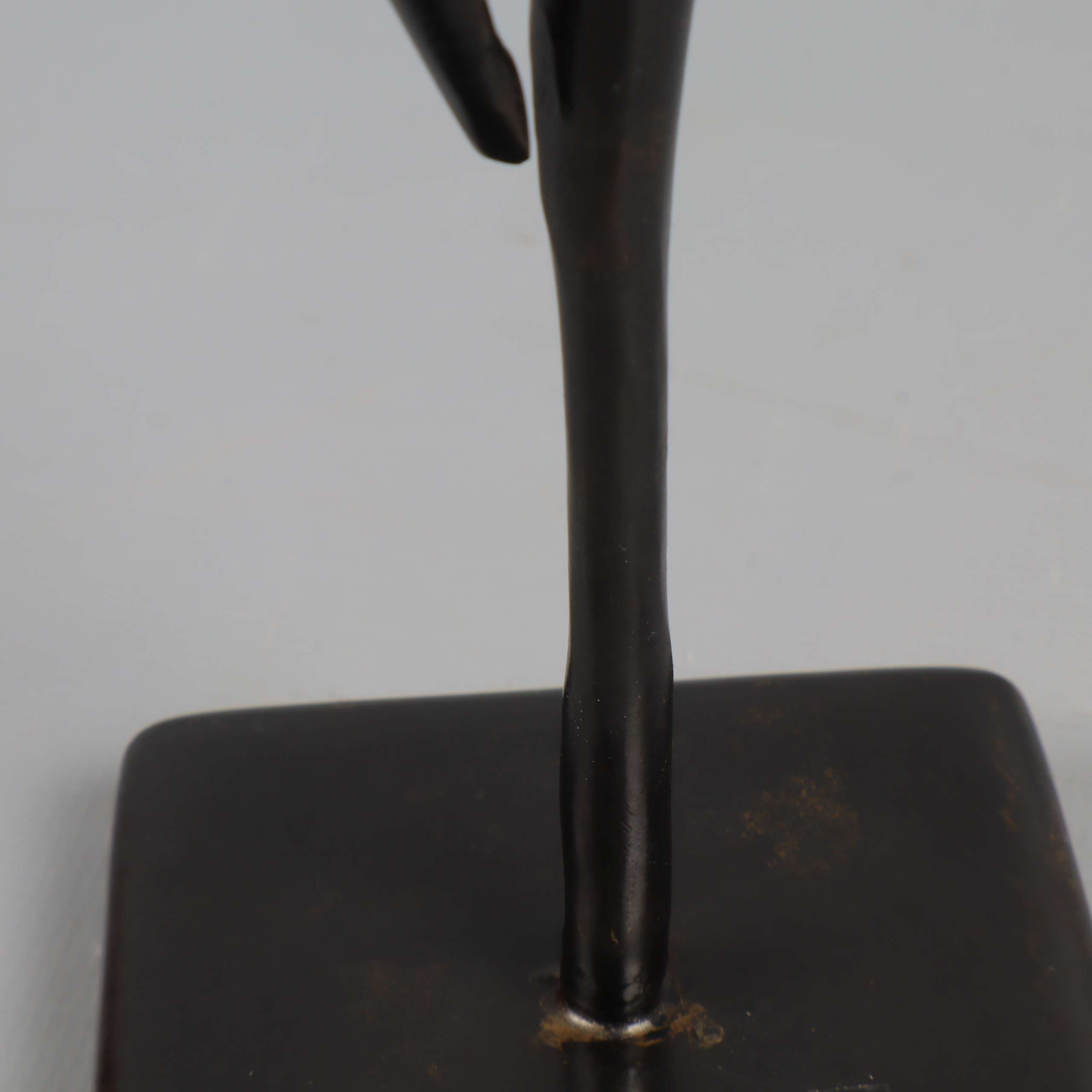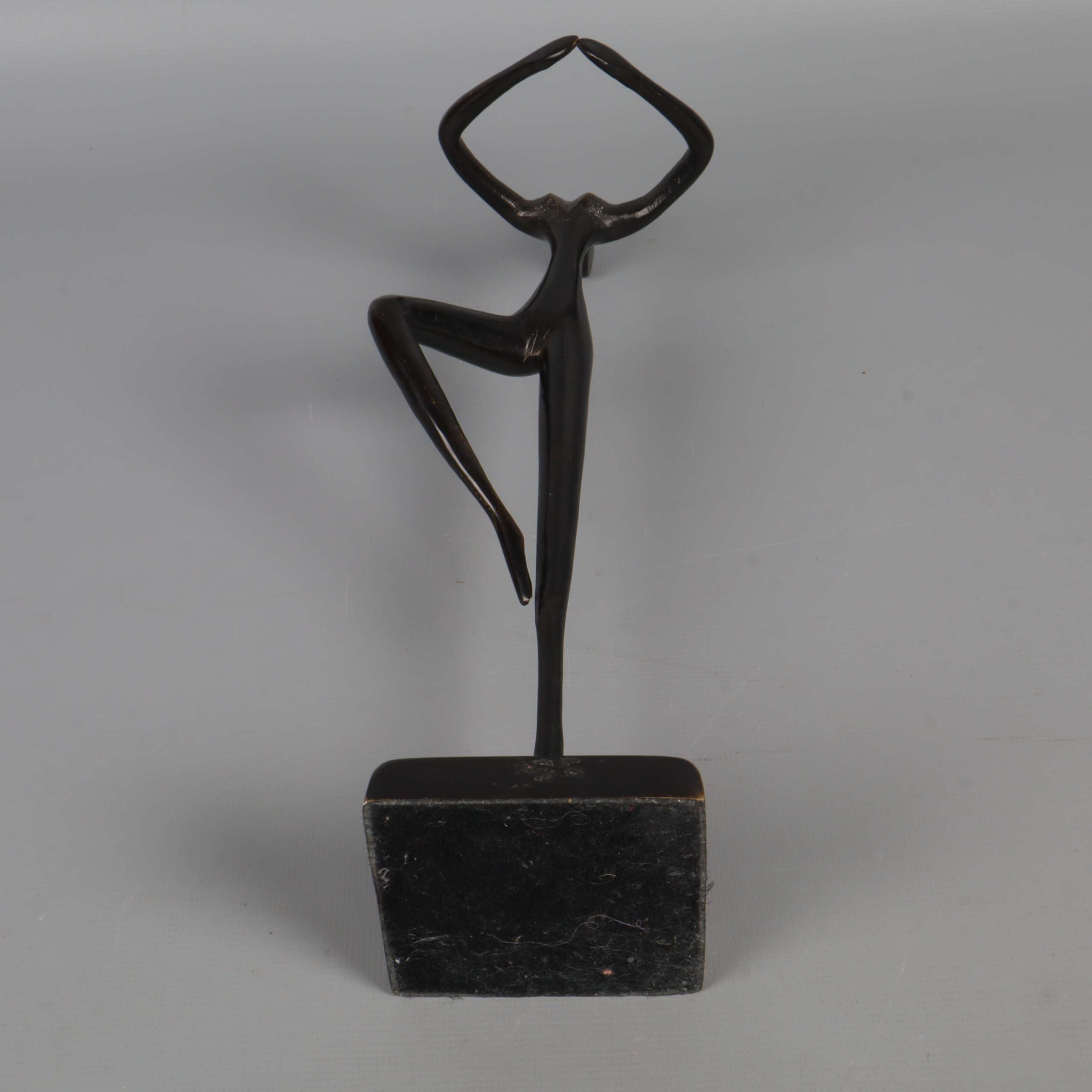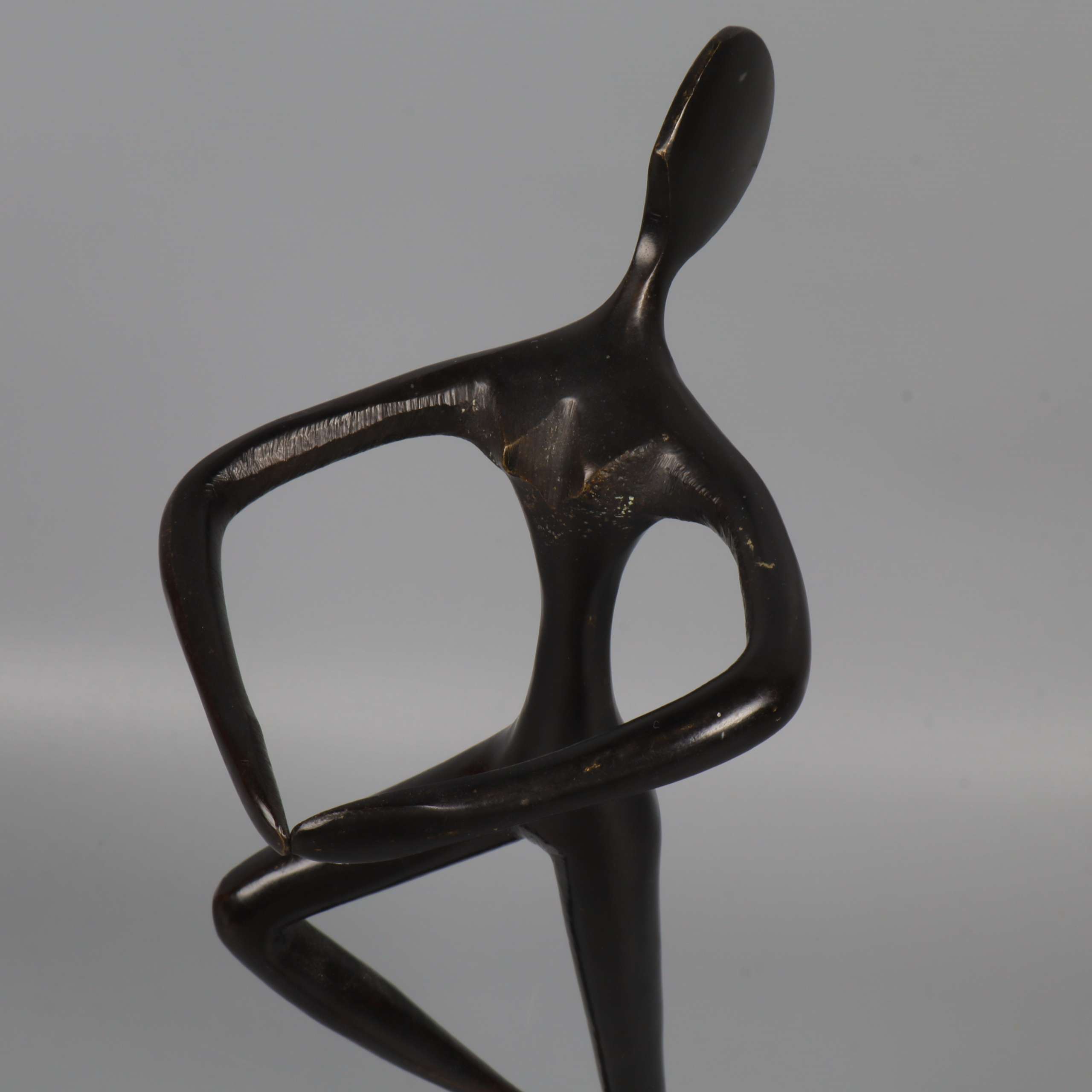 Elegant och stilren skulptur i mörk finish med abstrakt dansande figur. Figurinen har ett minimalistiskt formspråk och står stabilt på en fyrkantig fot. Passar perfekt som dekorativ inredningsdetalj och ger ett konstnärligt uttryck till rummet.
