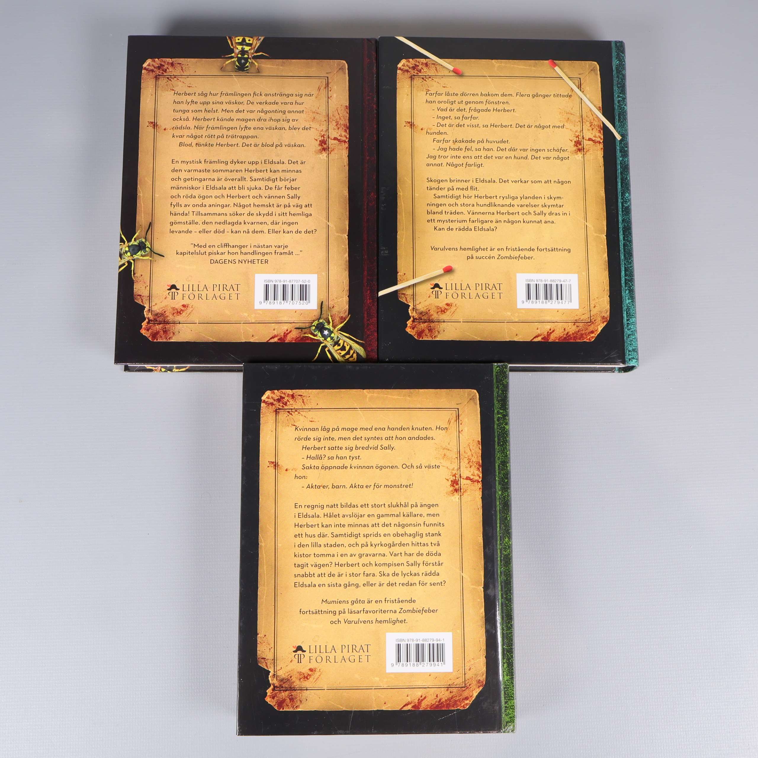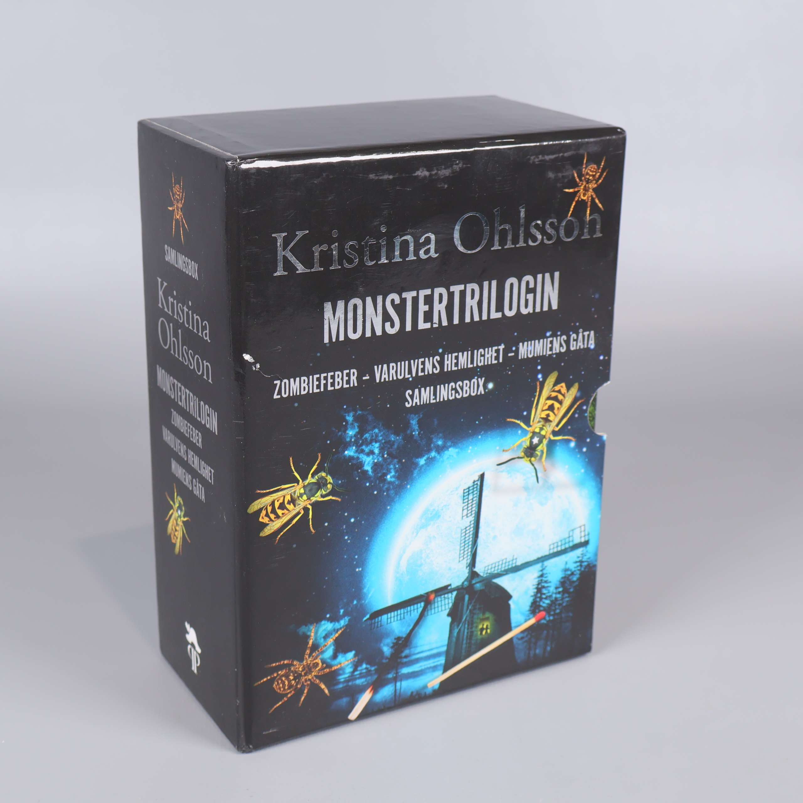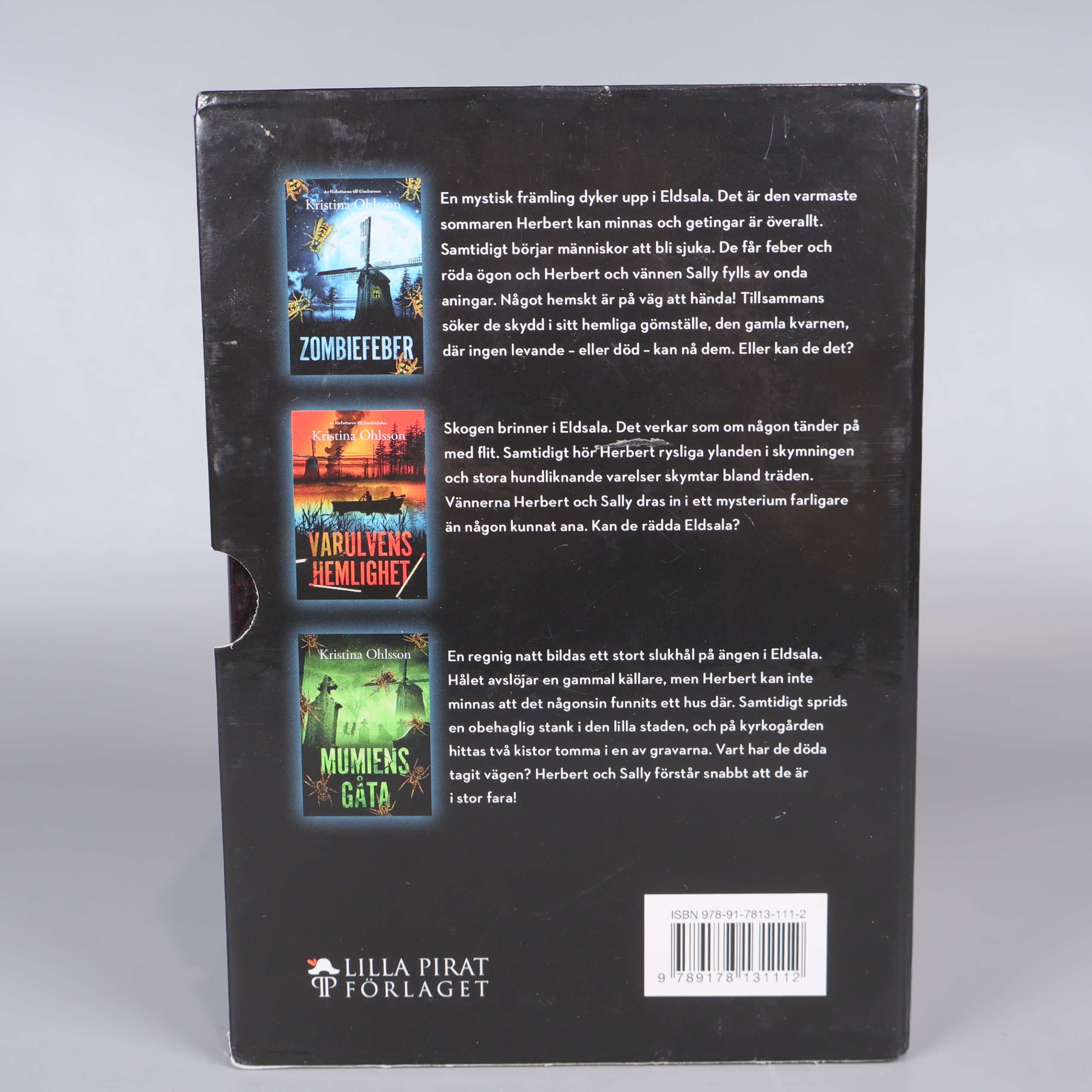 Bokbox - Kristina Ohlsson - Monstertrilogin 259 kr Product variation Antal st Beskrivning Upptäck Monstertrilogin av Kristina Ohlsson – en samlingsbox med tre färgstarka böcker: Zombiefeber, Varulvens hemlighet och Mumiens gåta. Visa all beskrivning Boktitel Zombiefeber, Varulvens hemlighet, Mumiens gåta ISBN 978-91-7813-111-2 Skick Gott skick Produkten har använts men är av fin kvalitet, det kan förekomma mindre förslitningar. Läs mer om hur vi bedömer