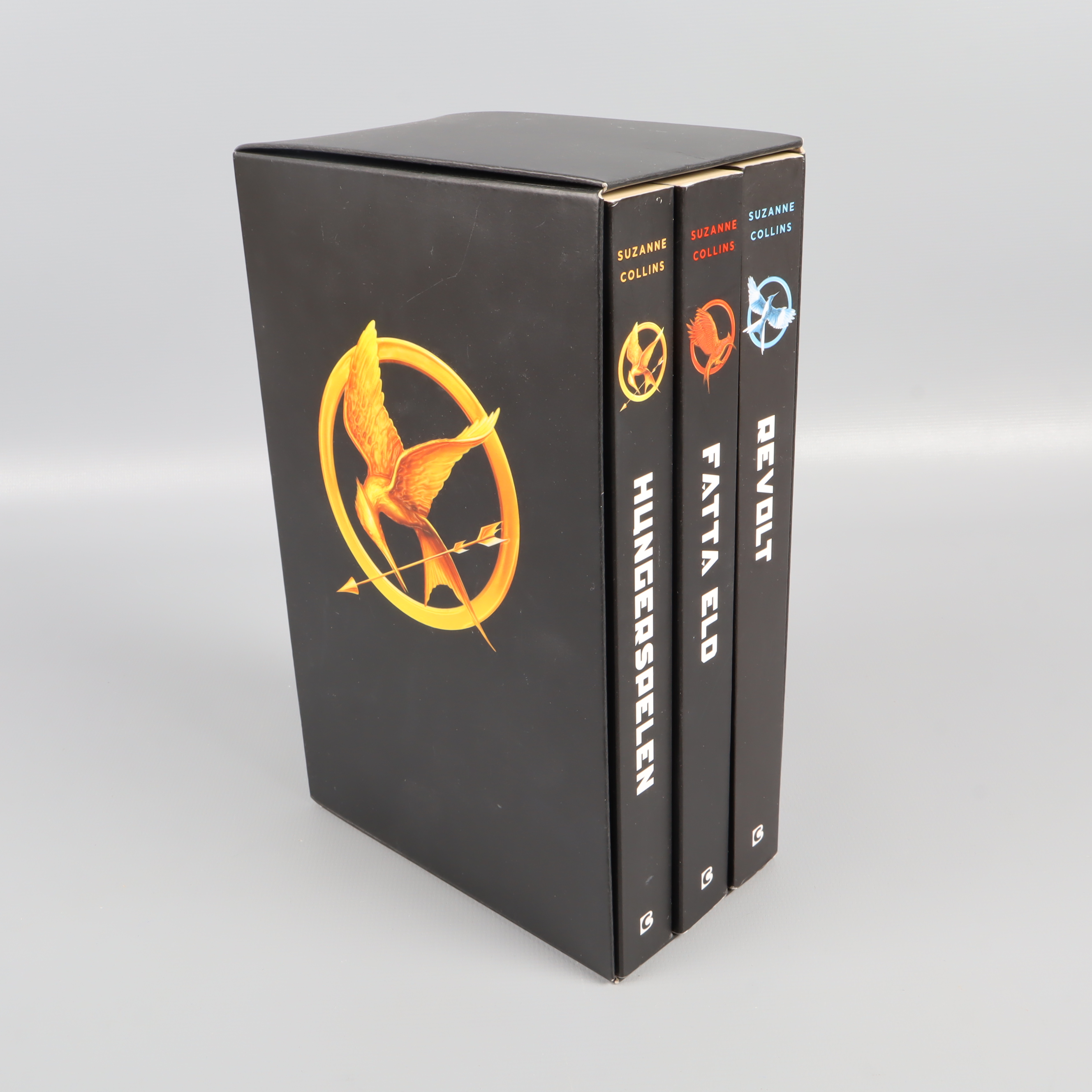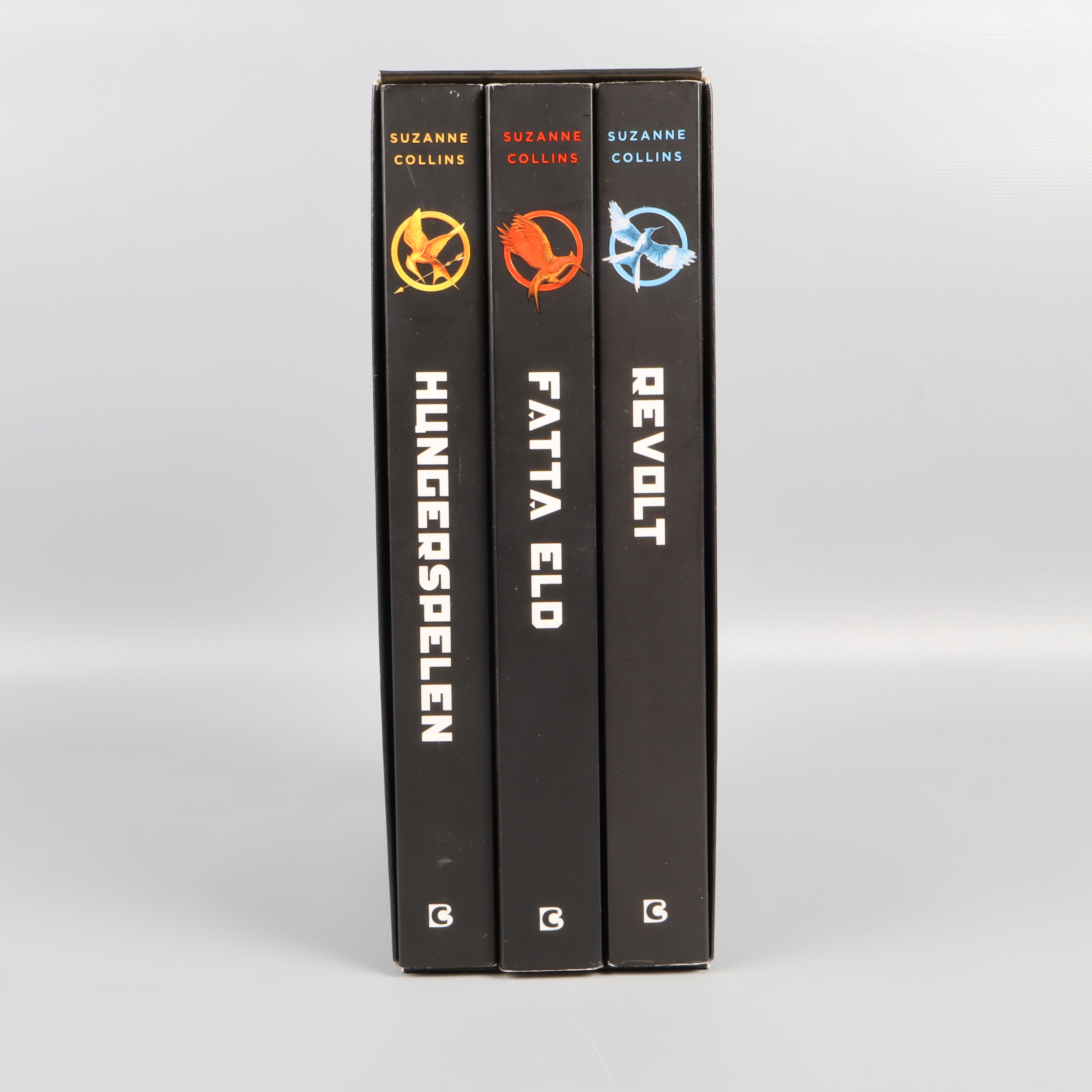 Denna stilrena bokbox innehåller hela trilogin Hungerspelen av Suzanne Collins i pocketformat. Omslagen har ikoniska motiv med starka färger och tydliga titlar, och alla tre böckerna kommer snyggt samlade i en matchande box. Perfekt för dig som älskar dystopiska äventyr och vill ha alla delar samlade. Språk: Svenska Övrigt: 3 st pocketböcker