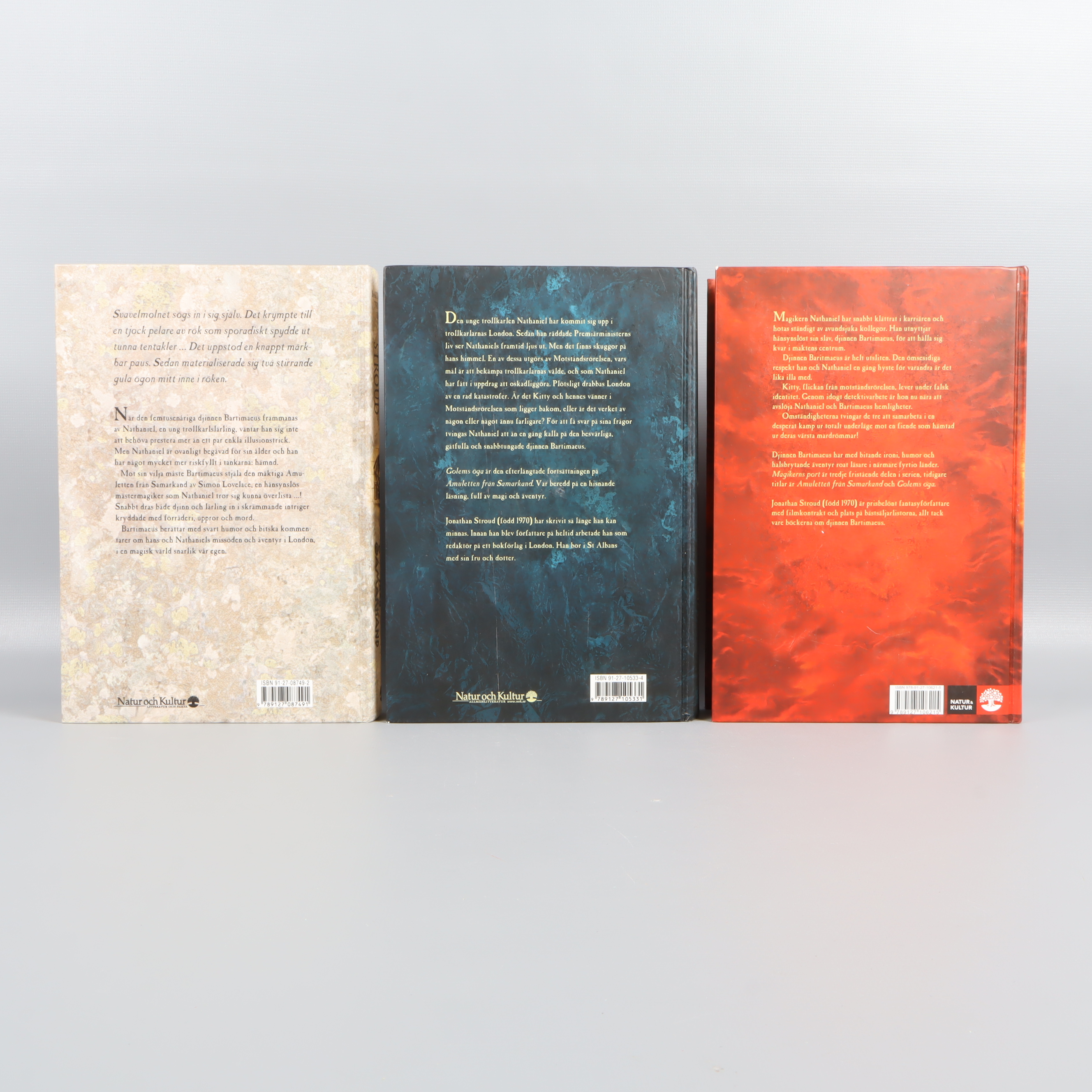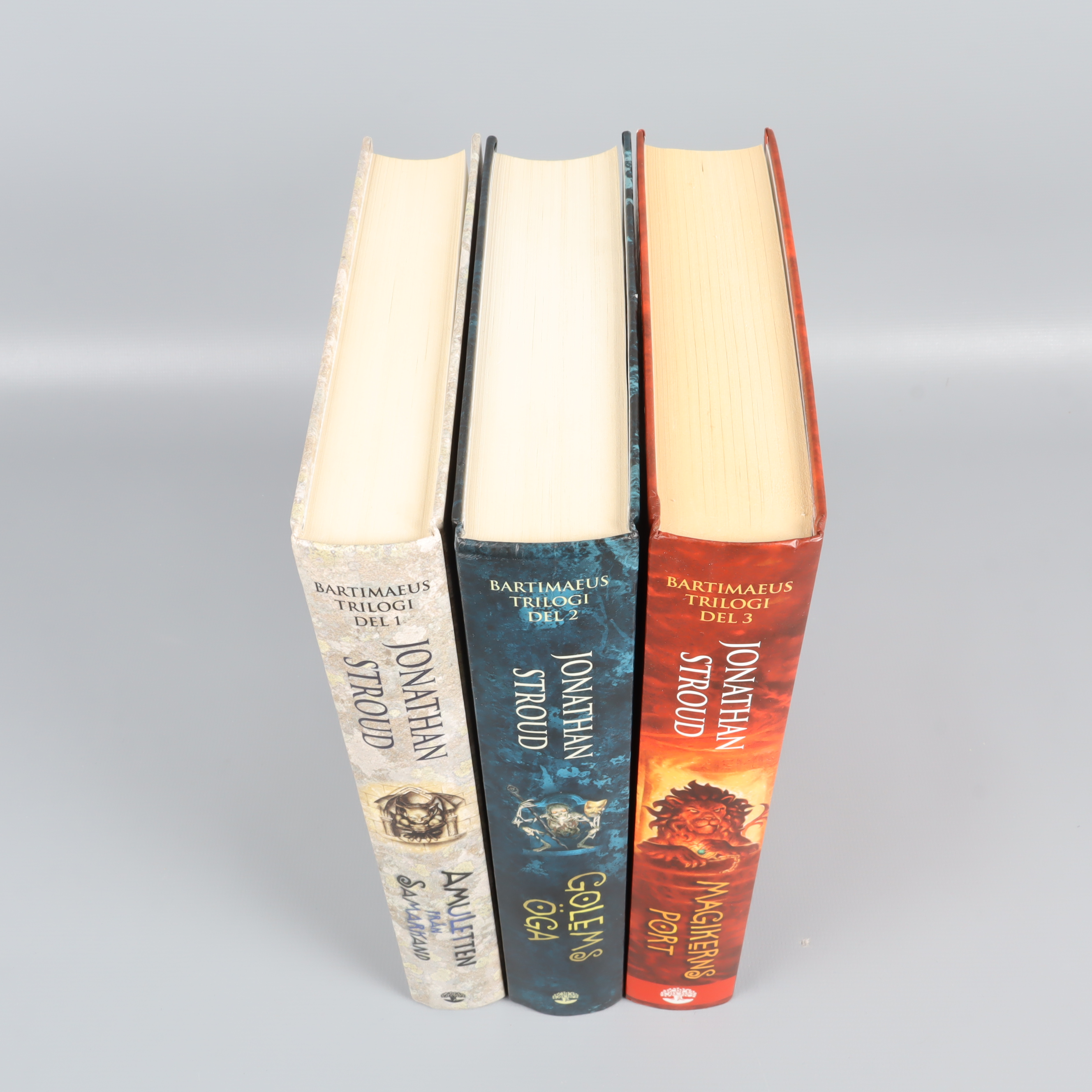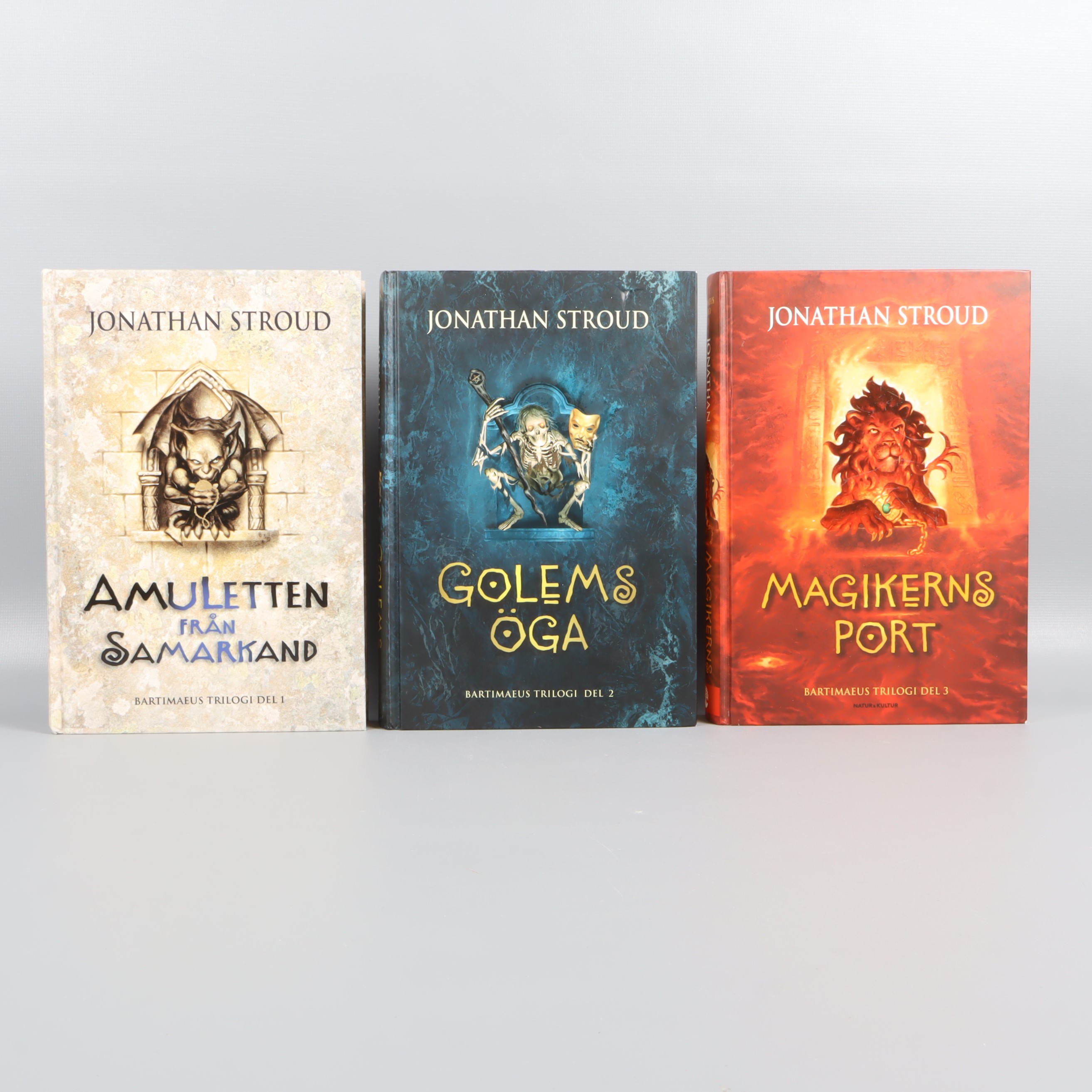 Upptäck Bartimaeus trilogi av Jonathan Stroud – tre äventyrsfyllda böcker med fantastiskt fina hårda pärmar och färgstarka illustrationer på omslagen. Perfekt för dig som gillar spänning och magi i ett snyggt och samlat format. Böckerna har ett gediget intryck och passar lika bra i bokhyllan som som present till någon som älskar fantasy.