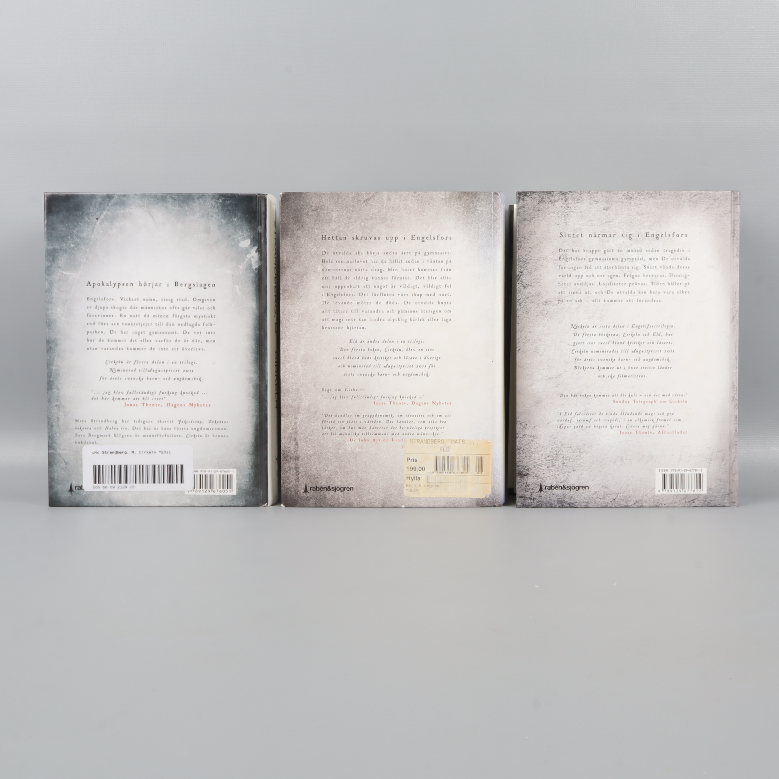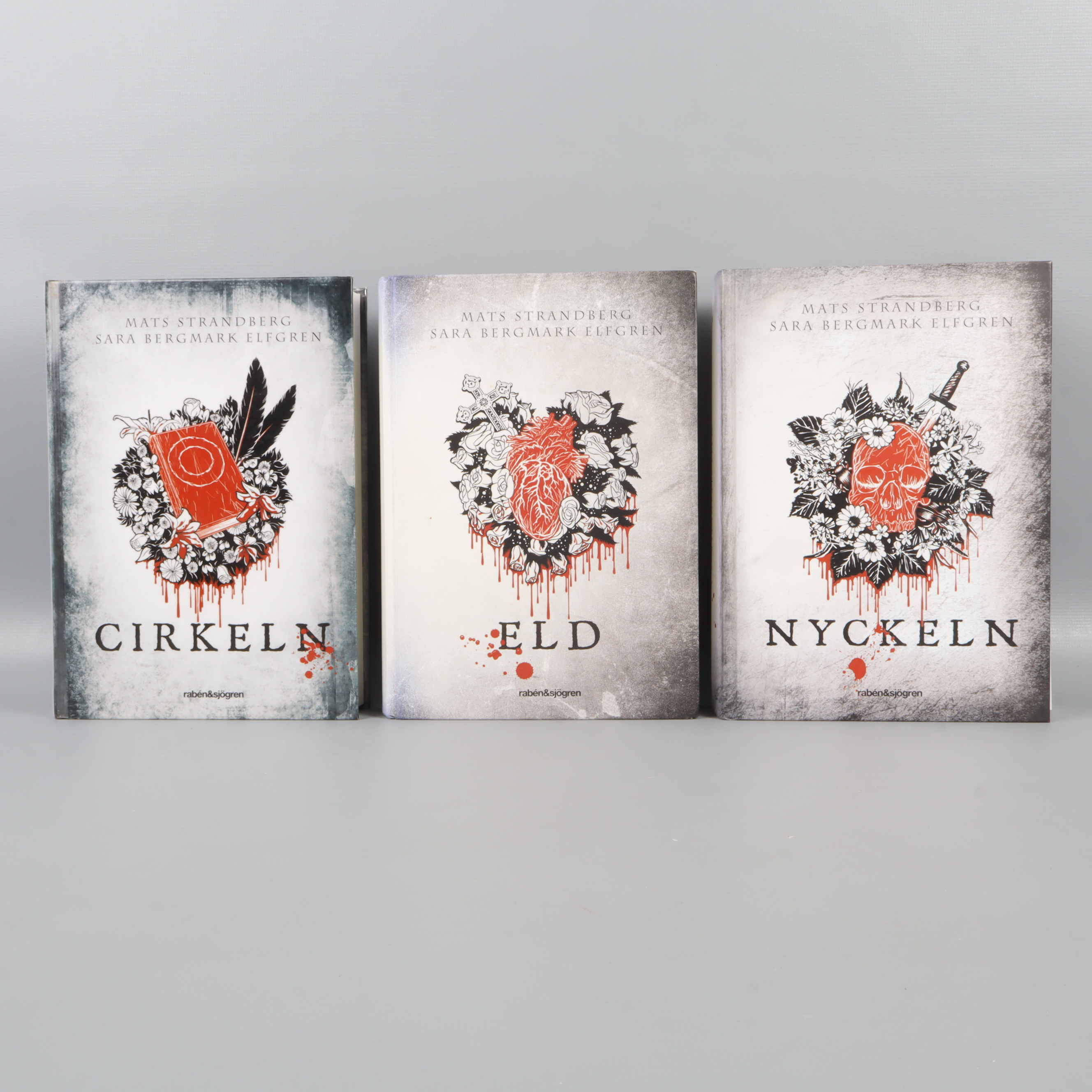 Få hela den magiska Engelsfors-trilogin i ett snyggt bokpaket med Cirkeln, Eld och Nyckeln av Mats Strandberg och Sara Bergmark Elfgren. Böckerna har unika konstnärliga omslag med en mystisk och grafisk touch – perfekt för dig som gillar mörka ungdomsromaner och fantasy med en svensk twist. Alla tre böcker är i gott skick och har hårda pärmar.