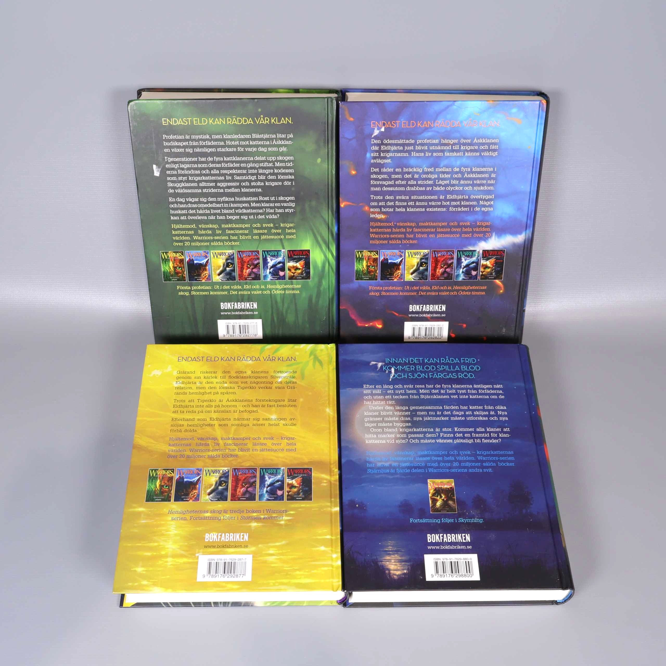 Bokpaket - Erin Hunter - Warriors - Del 1-4 299 kr Product variation Antal st Beskrivning Upptäck ett färgstarkt bokpaket med fyra inbundna delar ur serien Warriors. Visa all beskrivning Boktitel Warriors ut det vilda, Warriors eld och is, Warriors hemligheternas skog, Warriors stjärnljus Författare Erin Hunter ISBN 978-91-7629-282-2, 978-91-7629-277-8, 978-91-7629-287-7, 978-91-7629-880-0 Skick Mycket gott skick Produkten är sparsamt använd, är av fin kvalitet och ska inte ha några skador eller förslitningar. Läs mer om hur vi bedömer