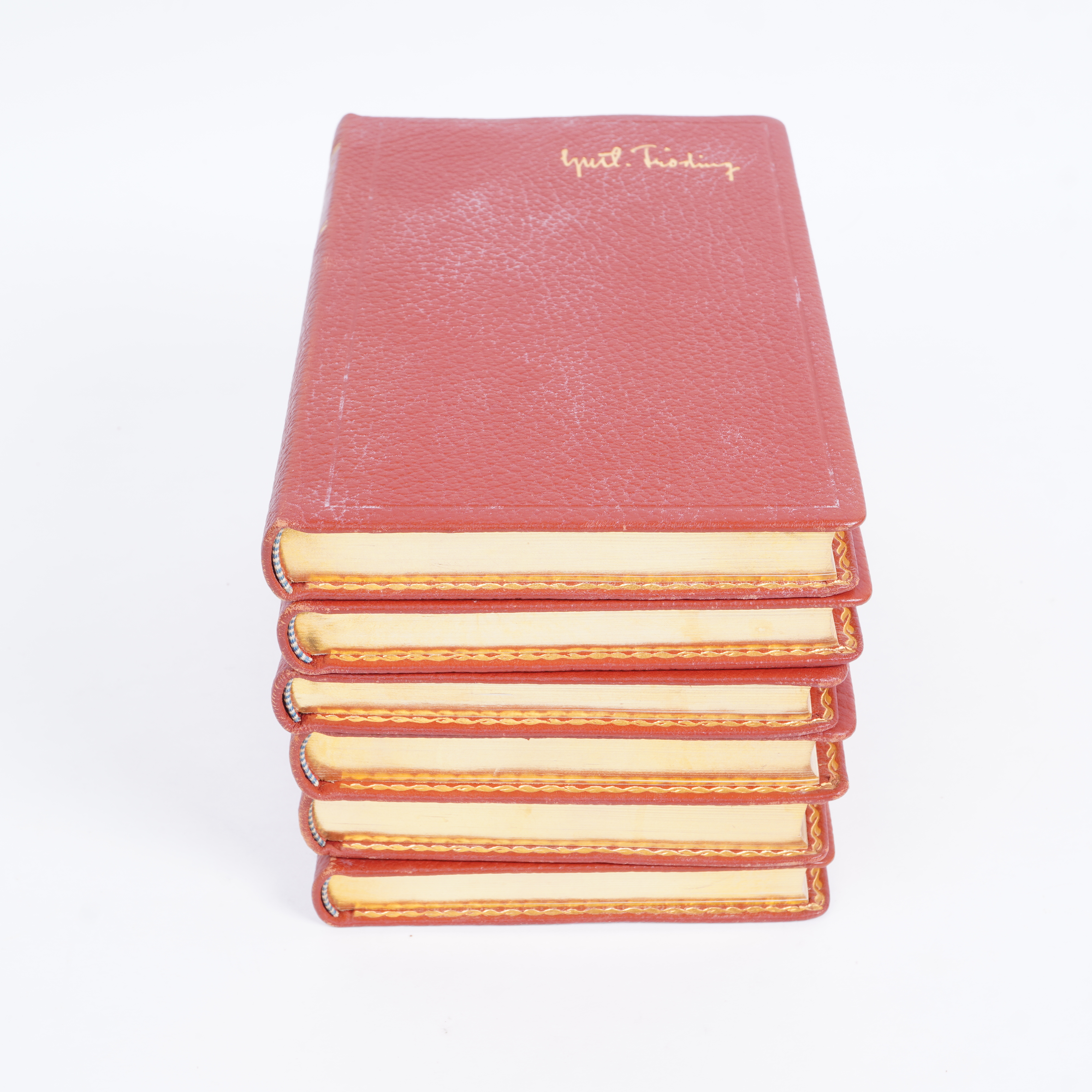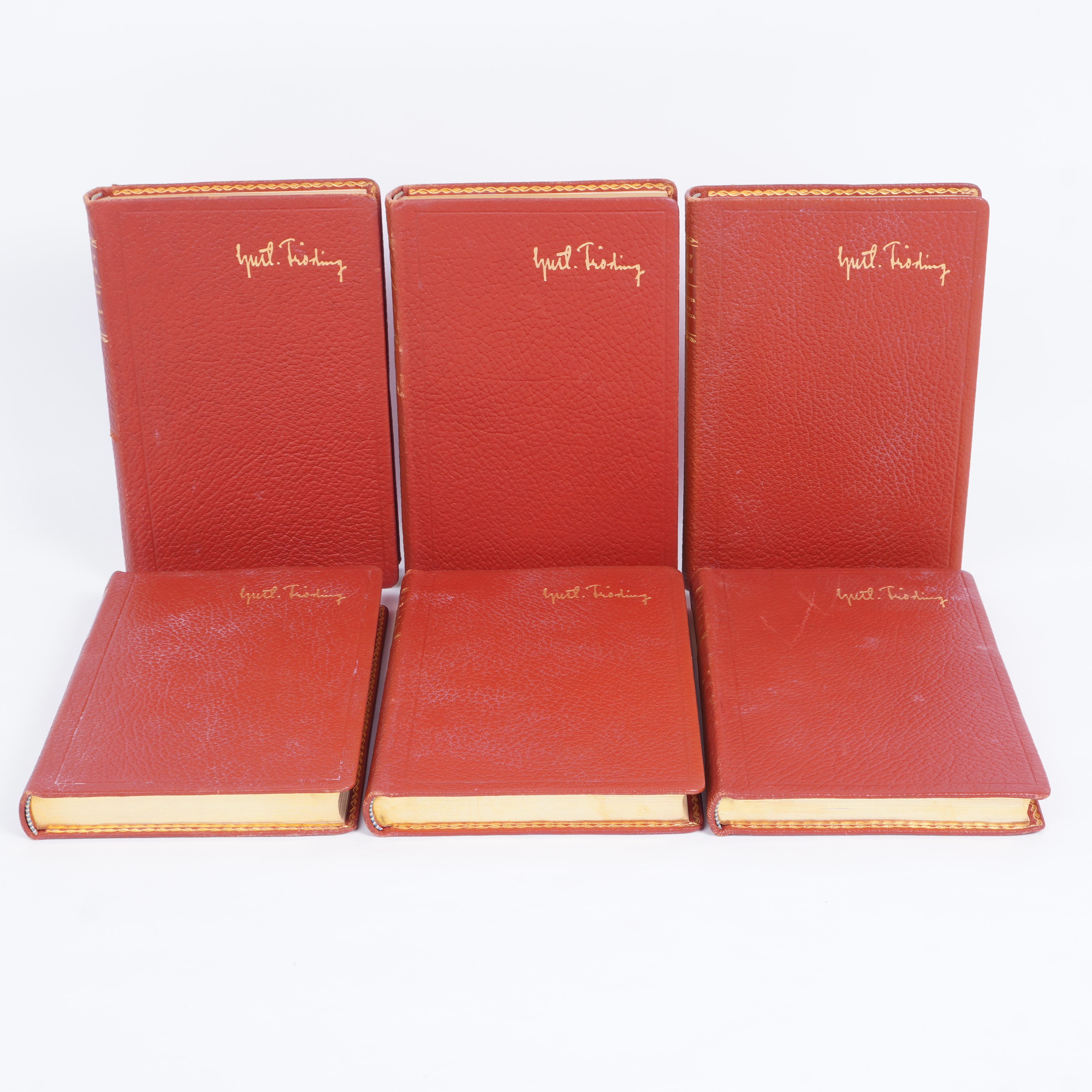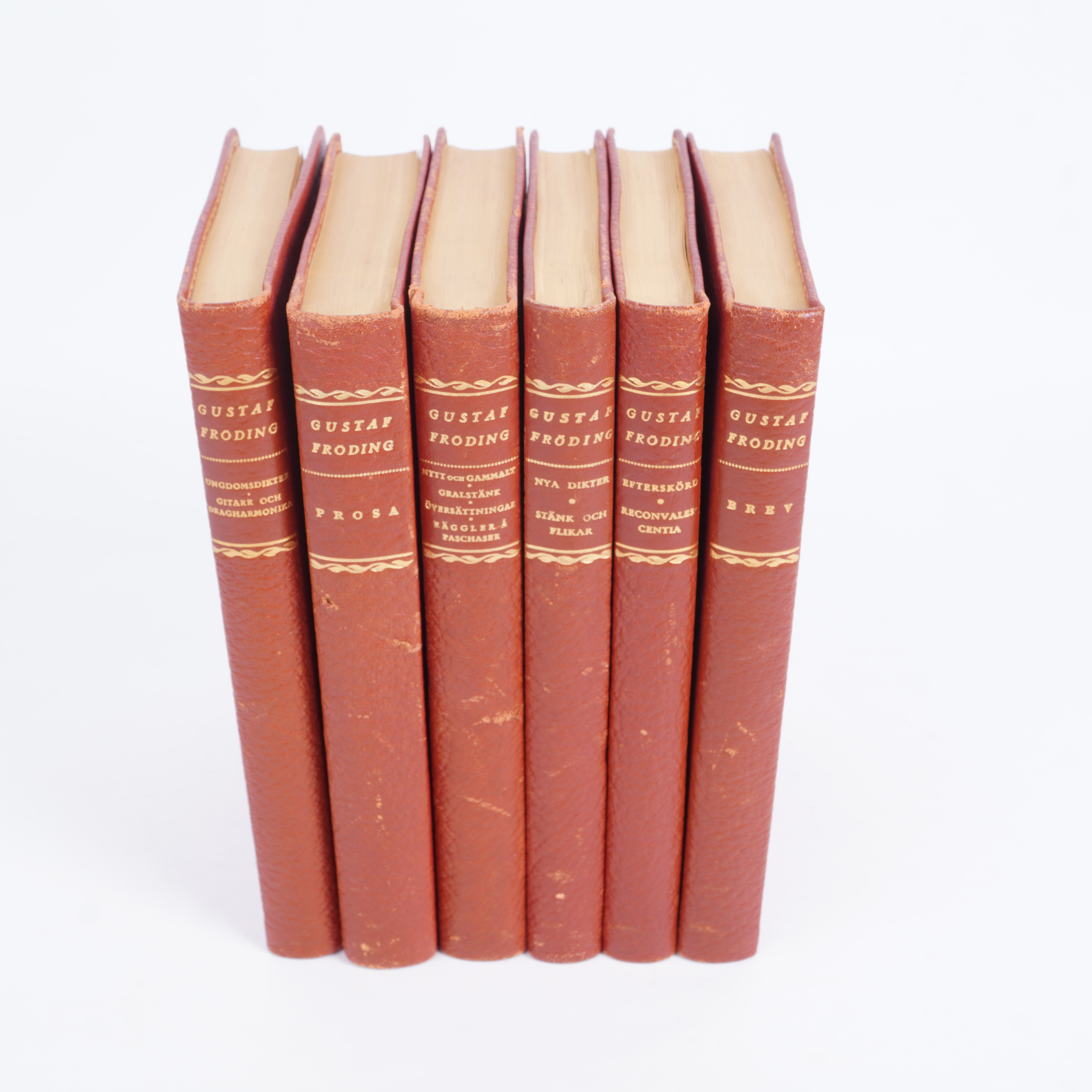 Detta bokpaket innehåller sex vackert inbundna volymer av Gustaf Fröding i röda skinnband med gulddetaljer. Samtliga böcker har en tidlös och klassisk design med guldfärgade sidor, vilket ger en exklusiv känsla på bokhyllan. Perfekta för dig som vill lyfta din samling med poesi och svensk litteratur i elegant utförande.