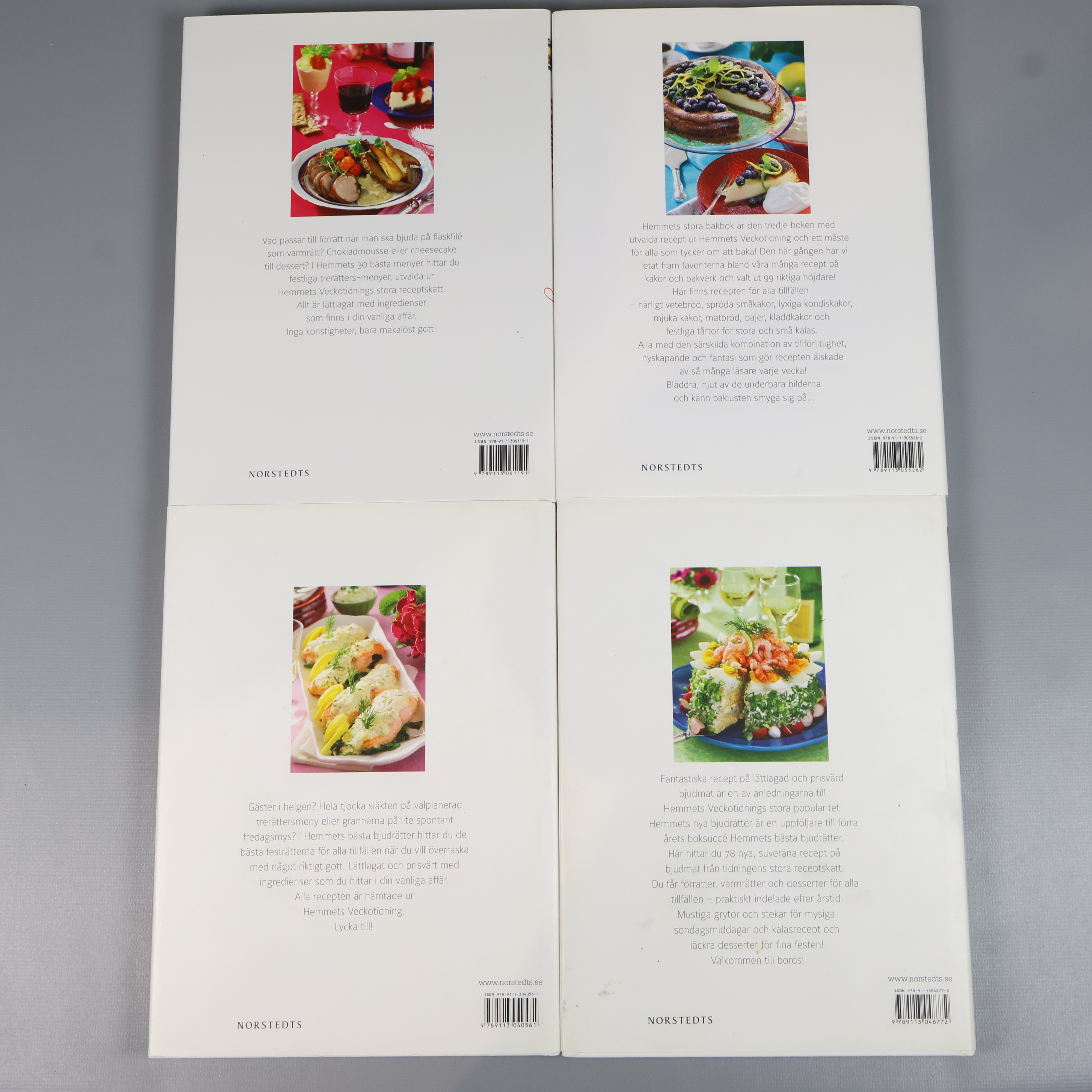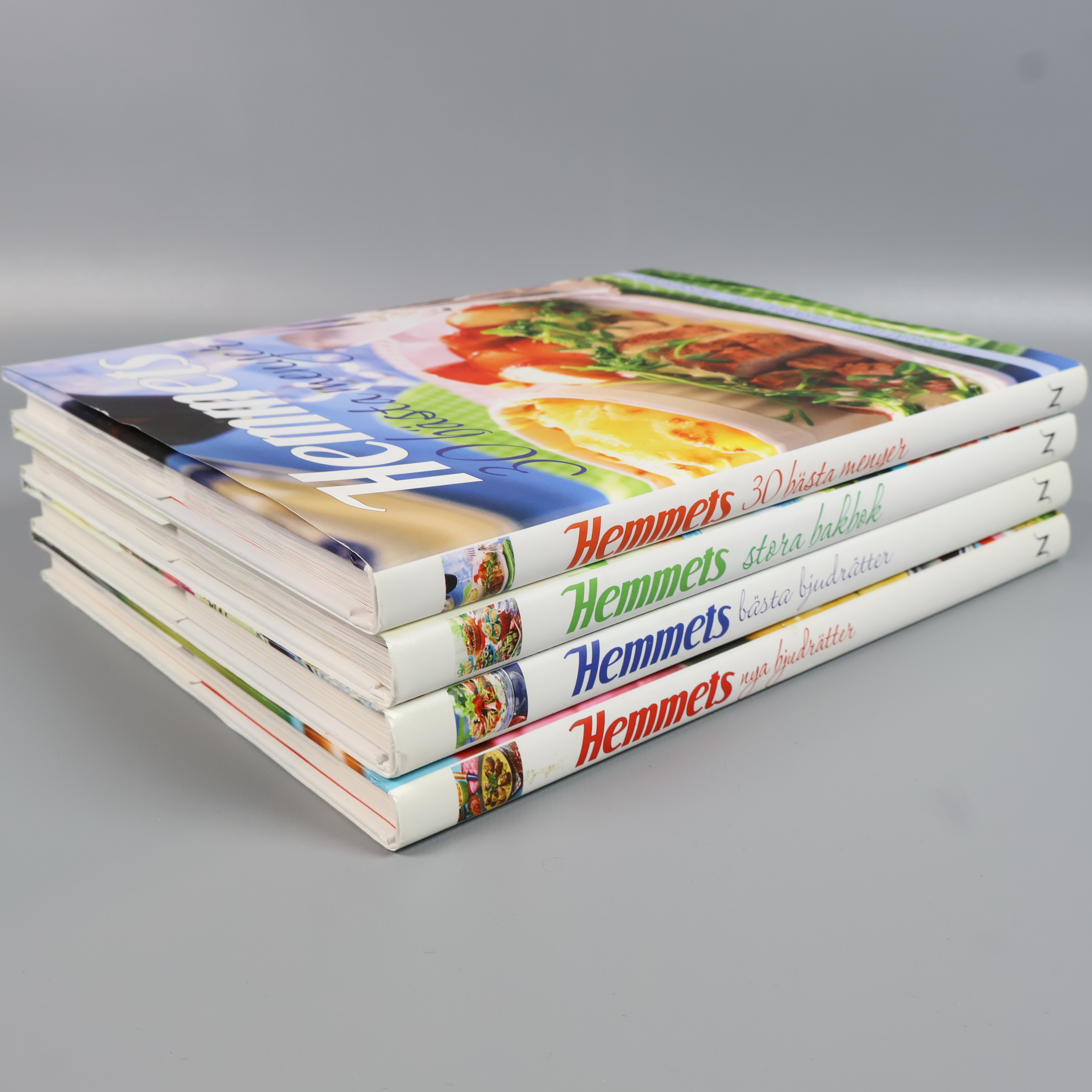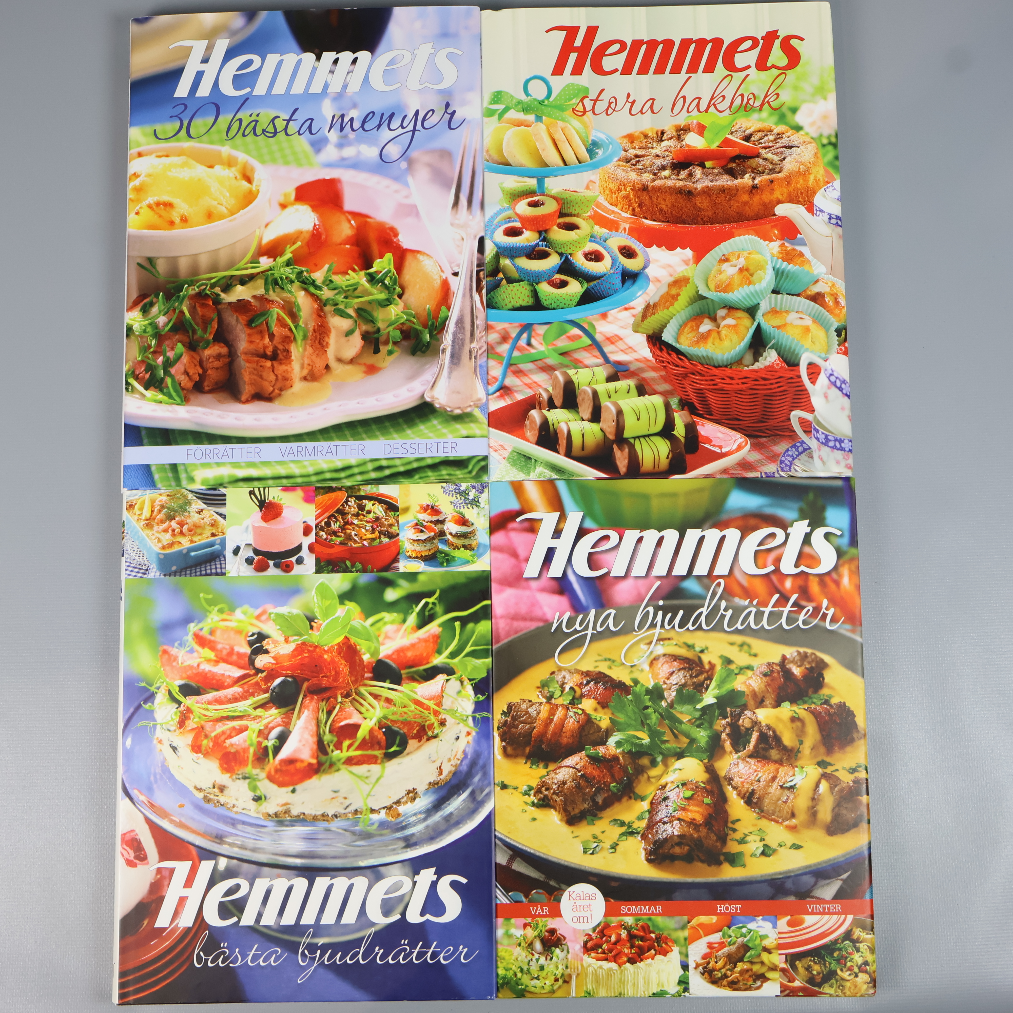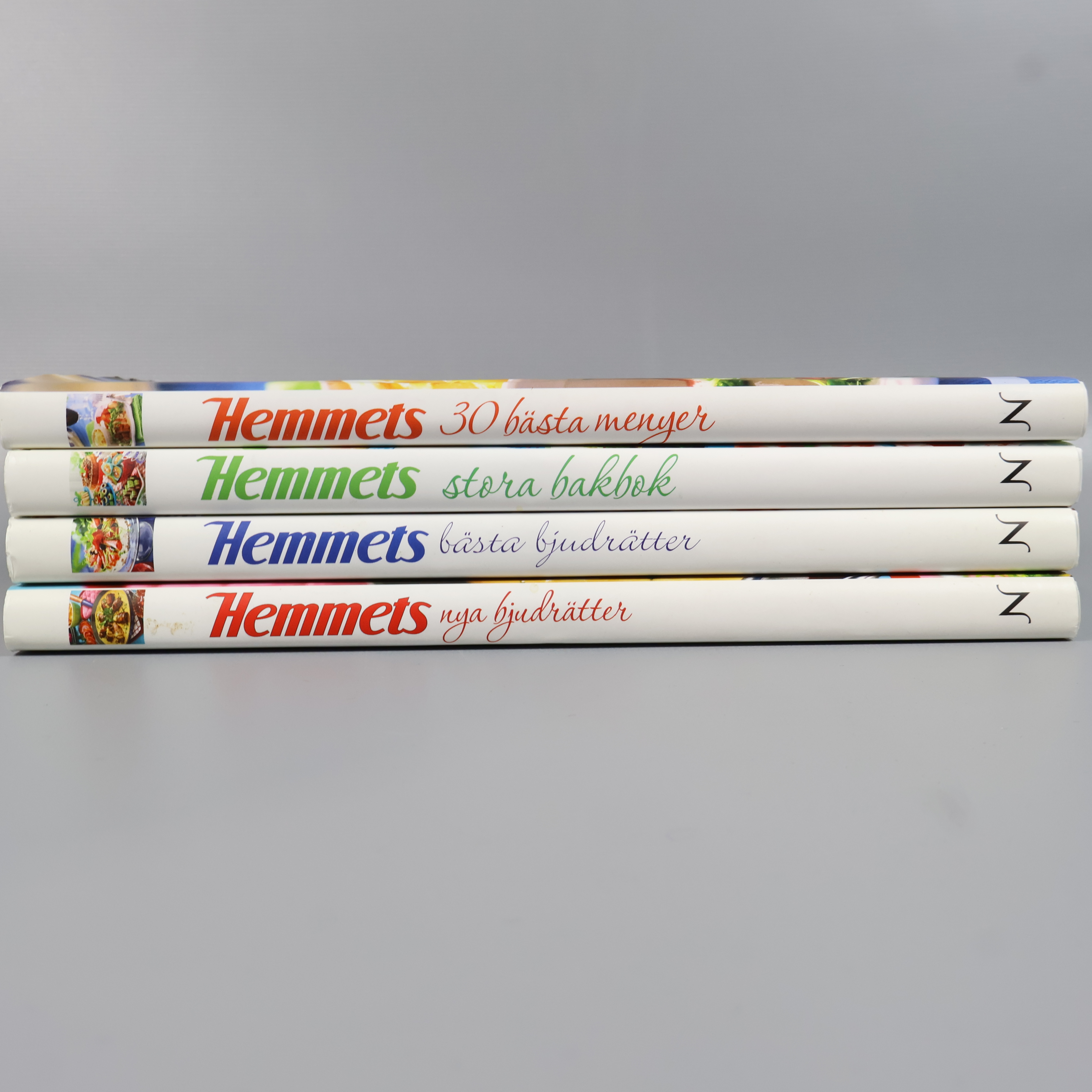 Bokpaket - Hemmets – Kokböcker 4 st 249 kr Product variation Antal st Beskrivning Färgglatt bokpaket med fyra inspirerande kokböcker från Hemmets. Varje bok har tydliga bilder och lättlästa recept som passar både vardag och fest. Perfekt när du vill prova nya maträtter eller hitta favoriter bland menyer, bakverk och bjudrätter. Visa all beskrivning Boktitel Hemmets 30 bästa menyer, Hemmets stora bakbok, Hemmets bästa bjudrätter, Hemmets nya bjudrätter ISBN 978-91-1-304877-2, 978-91-1-304056-1, 978-91-1-305528-2, 978-91-1-306119-1 Skick Mycket gott skick Produkten är sparsamt använd, är av fin kvalitet och ska inte ha några skador eller förslitningar. Läs mer om hur vi bedömer