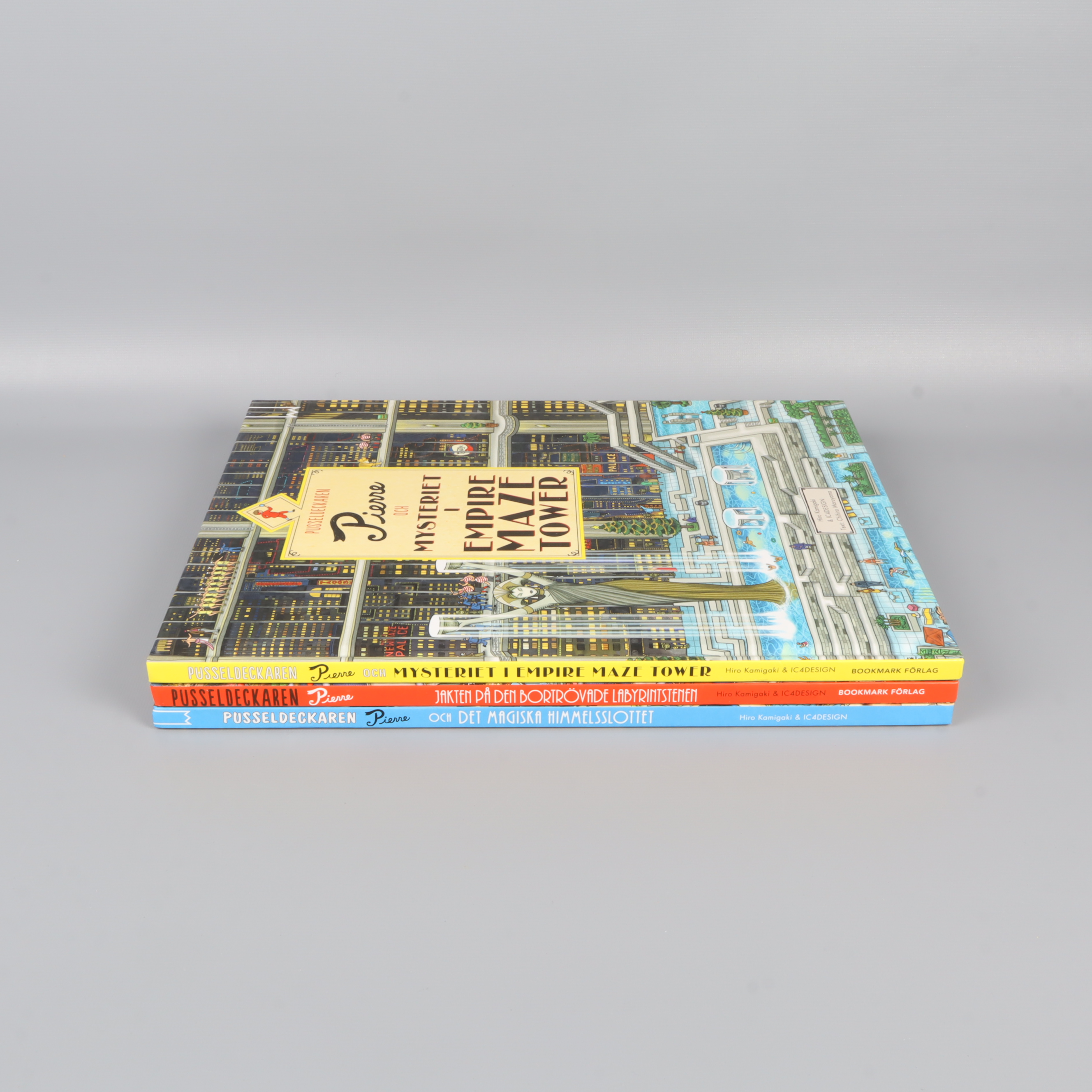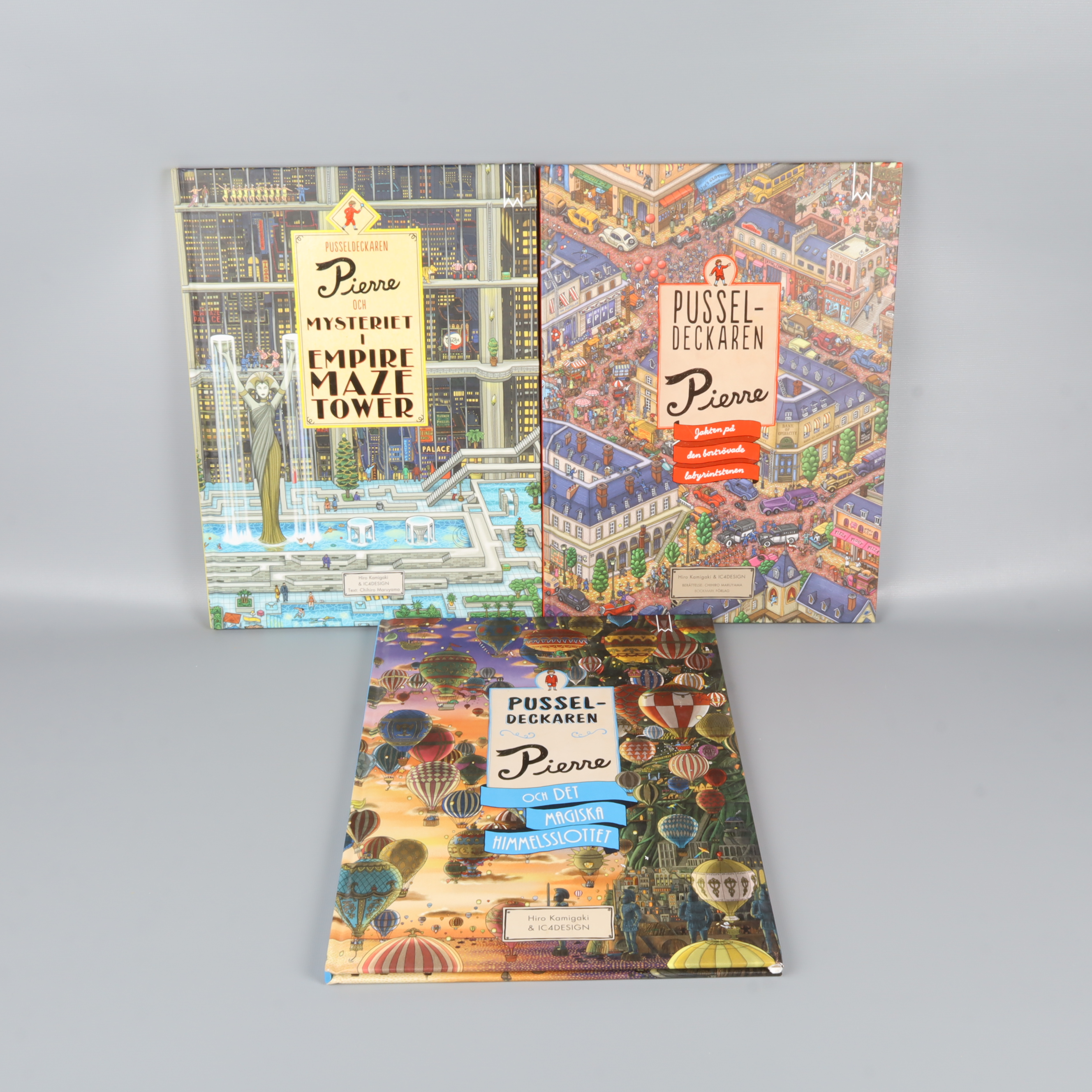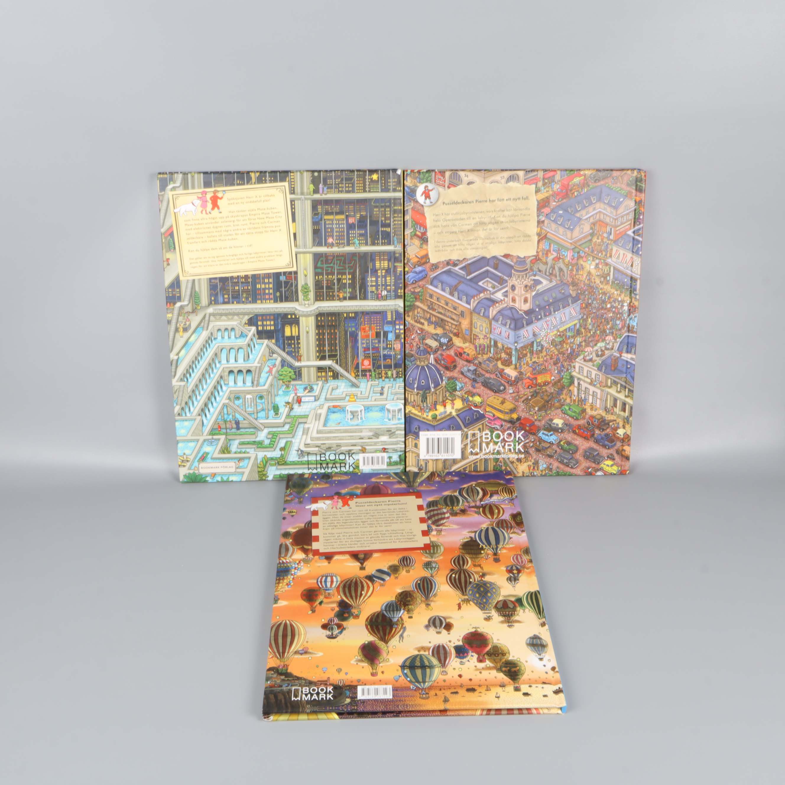 Ett färgsprakande bokpaket med tre detaljerade och fantasifulla pusseldeckare om Pierre.