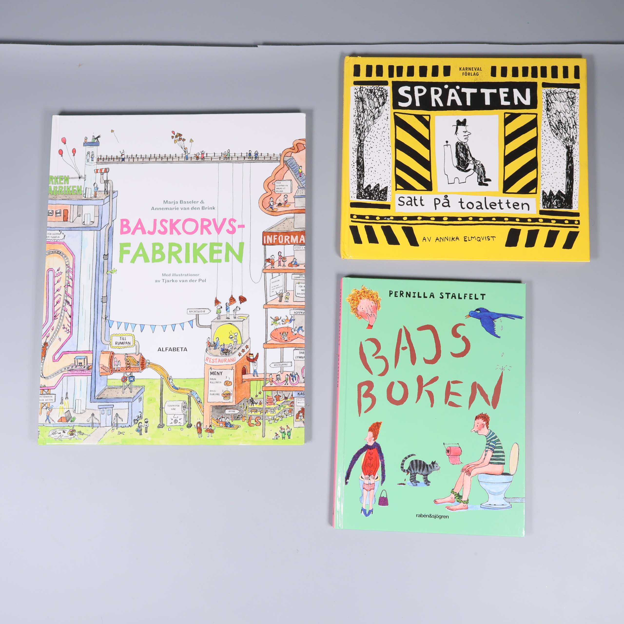 Bokpaket - Humoristiska barnböcker om bajs - 3st 69 kr Product variation Antal st Beskrivning Roligt bokpaket med tre charmiga barnböcker som utforskar ämnet bajs på olika och lekfulla sätt. Visa all beskrivning Boktitel Bajskorvsfabriken, Sprätten satt på toaletten, Bajsboken Författare Marja Baseler & Annemarie van den Brink, Annika Elmqvist, Pernilla Stalfelt ISBN 978-91-501-2105-6, 978-91-857-0387-6, 978-91-29-69797-1 Skick Gott skick Produkten har använts men är av fin kvalitet, det kan förekomma mindre förslitningar. Läs mer om hur vi bedömer