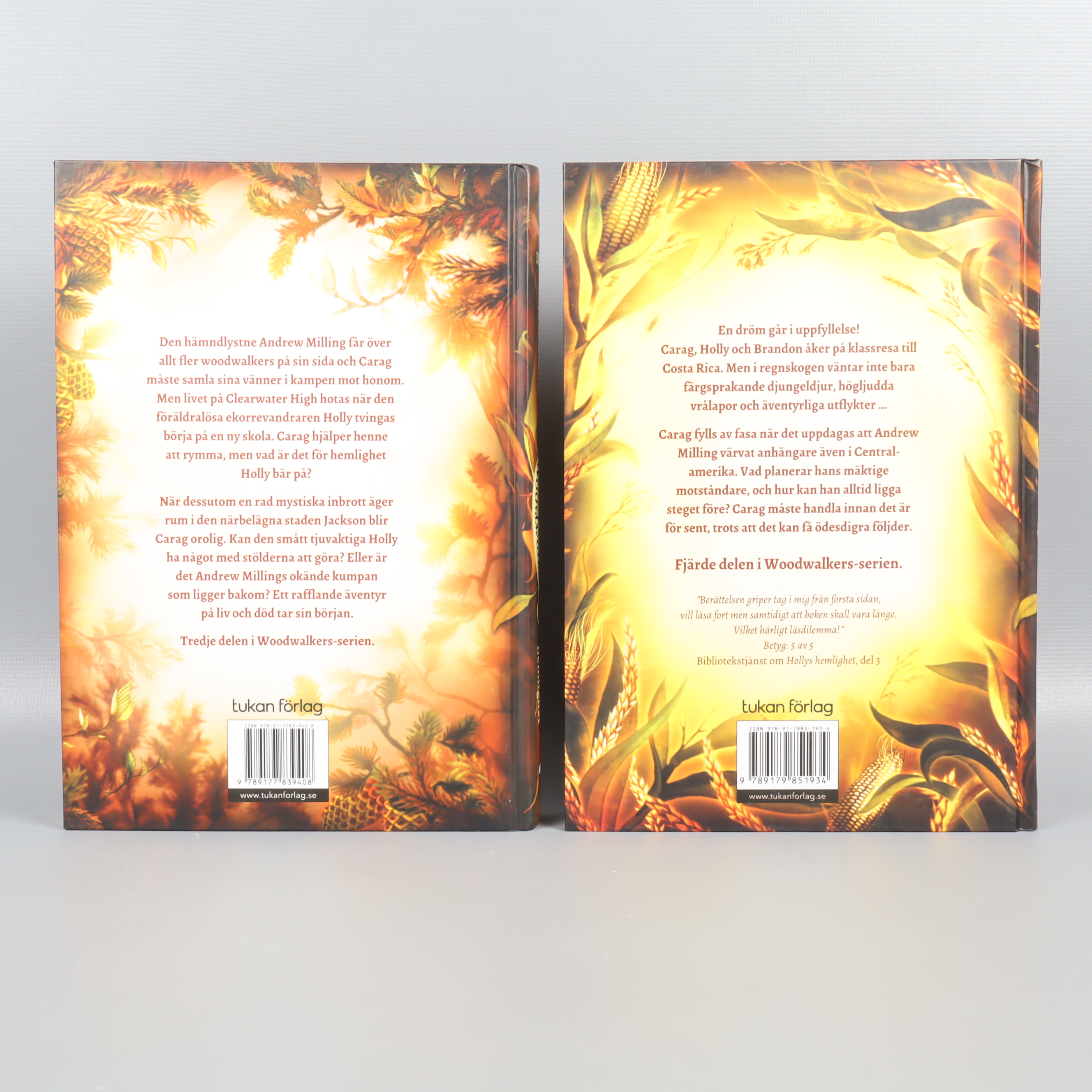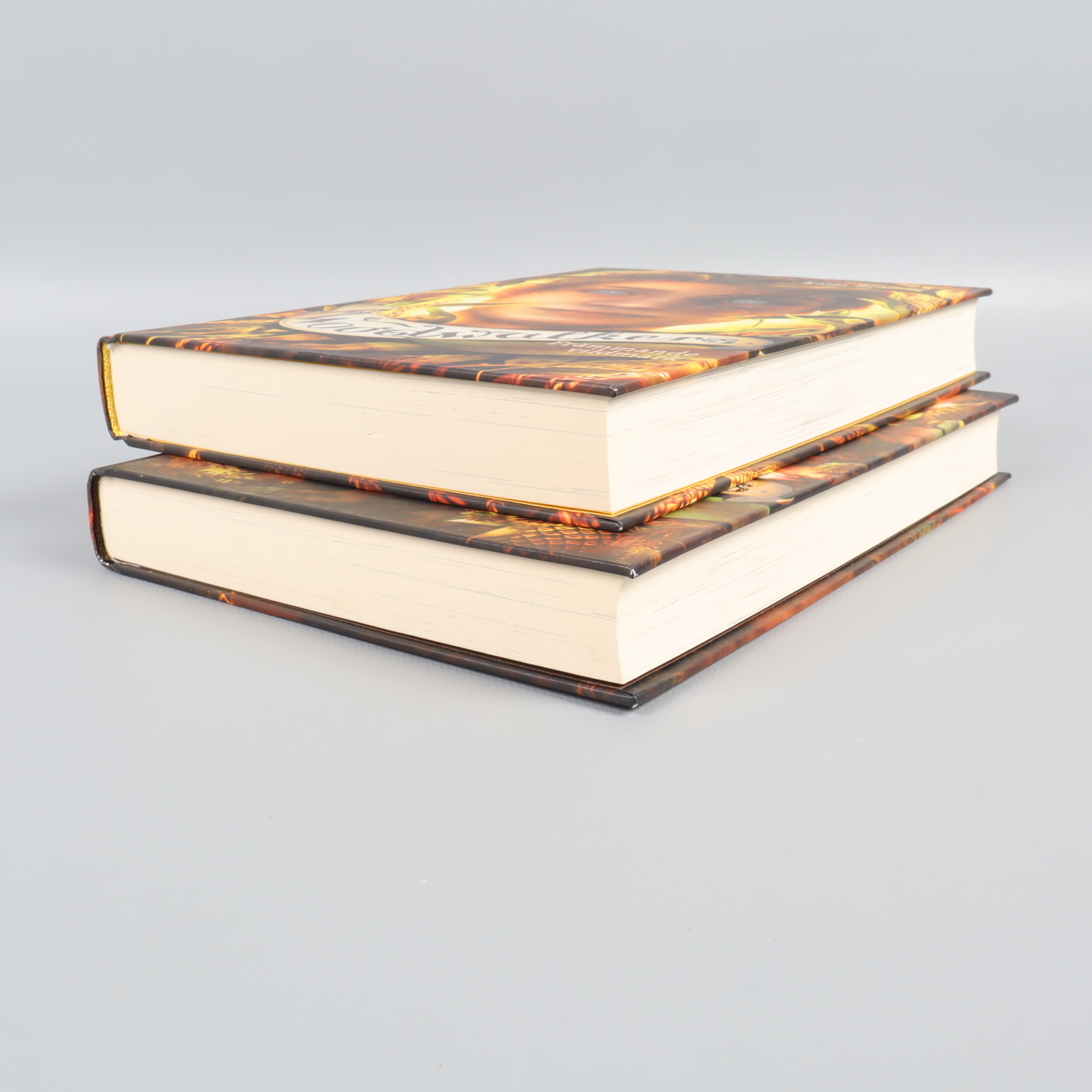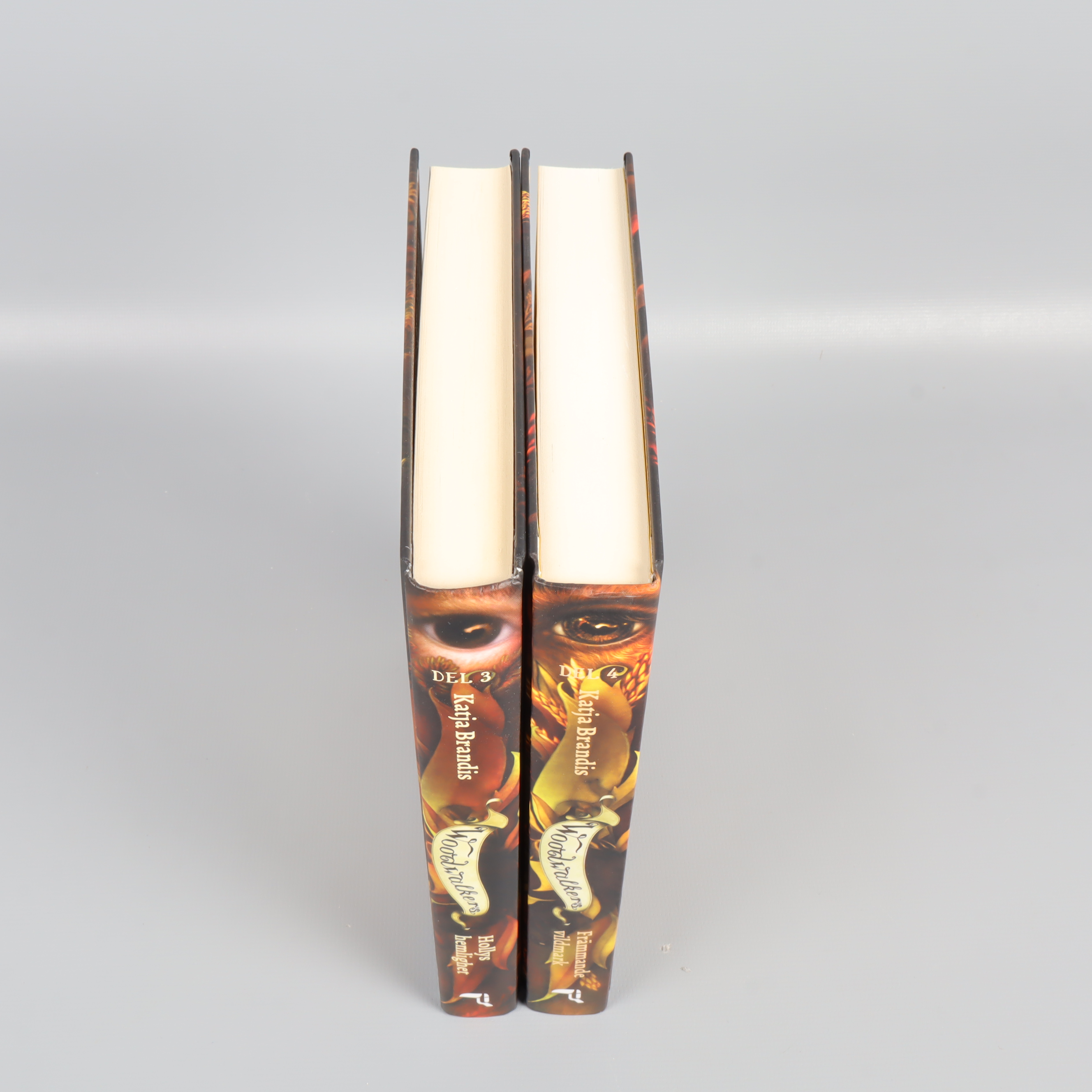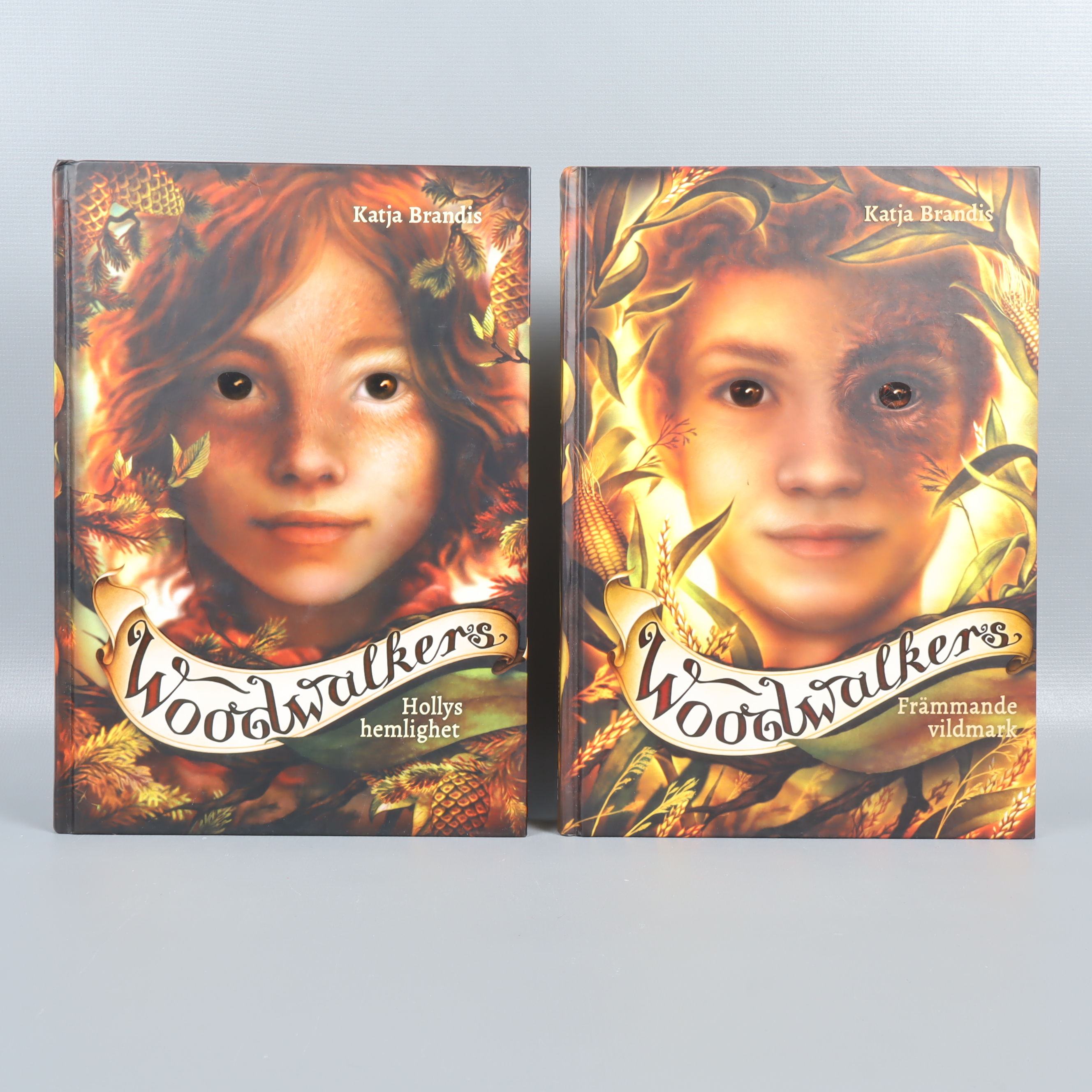Två böcker i Woodwalkers-serien av Katja Brandis, del 3 och 4. Färgstarka hårda pärmar med detaljrika omslag och illustrationer skapar direkt nyfikenhet och ger boken en magisk känsla. Formatet är klassiskt och lätt att hålla, perfekt om du gillar äventyr och fantasy med en modern touch.