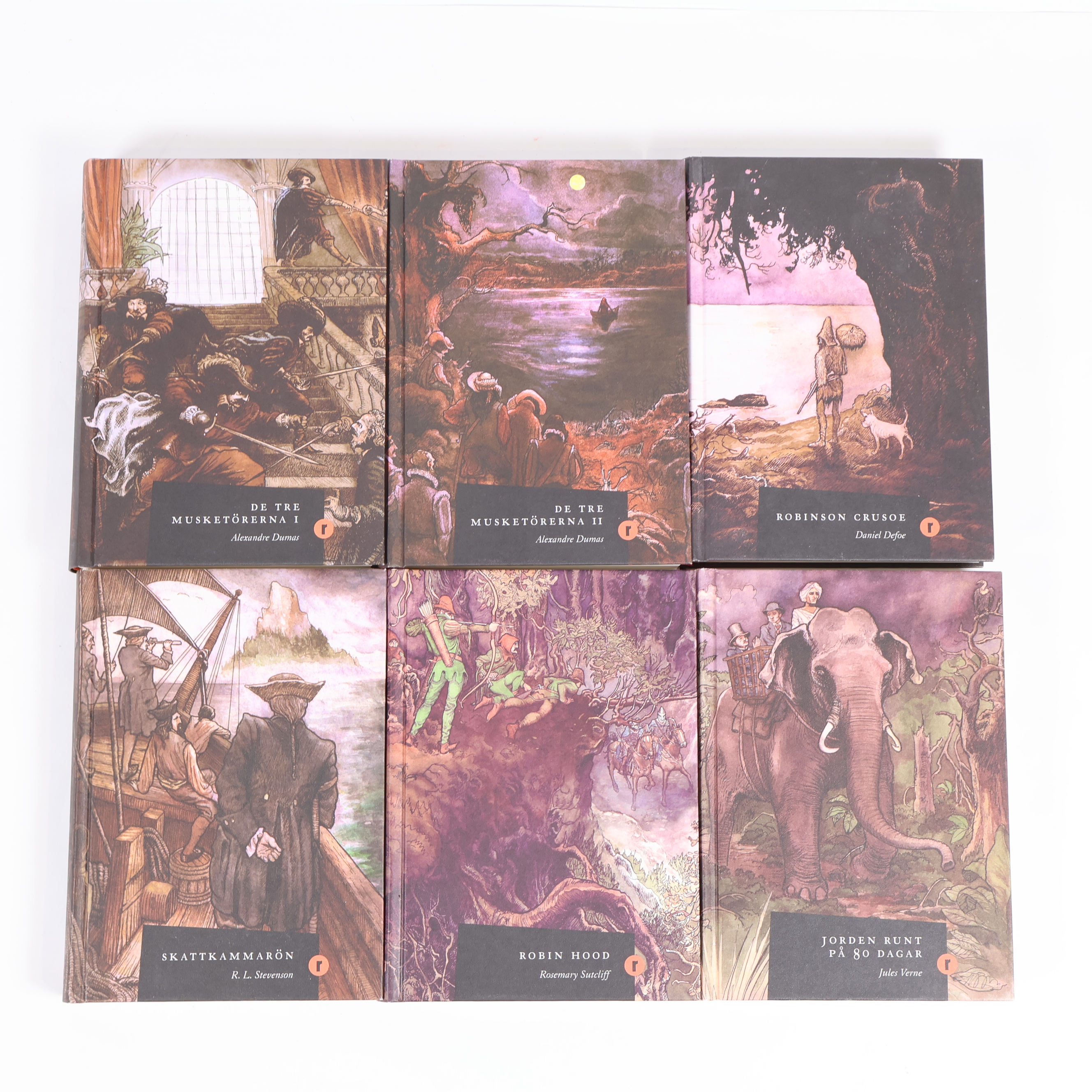 Upptäck denna exklusiva samlingsbox ur Klassikerserien Repris, fylld med sex tidlösa romaner i snygga, illustrerade hårdband. I serien ingår: De tre musketörerna 1-2, Robinson Crusoe, Skattkammarön, Robin Hood och Jorden runt på 80 dagar. Boxen har skador.